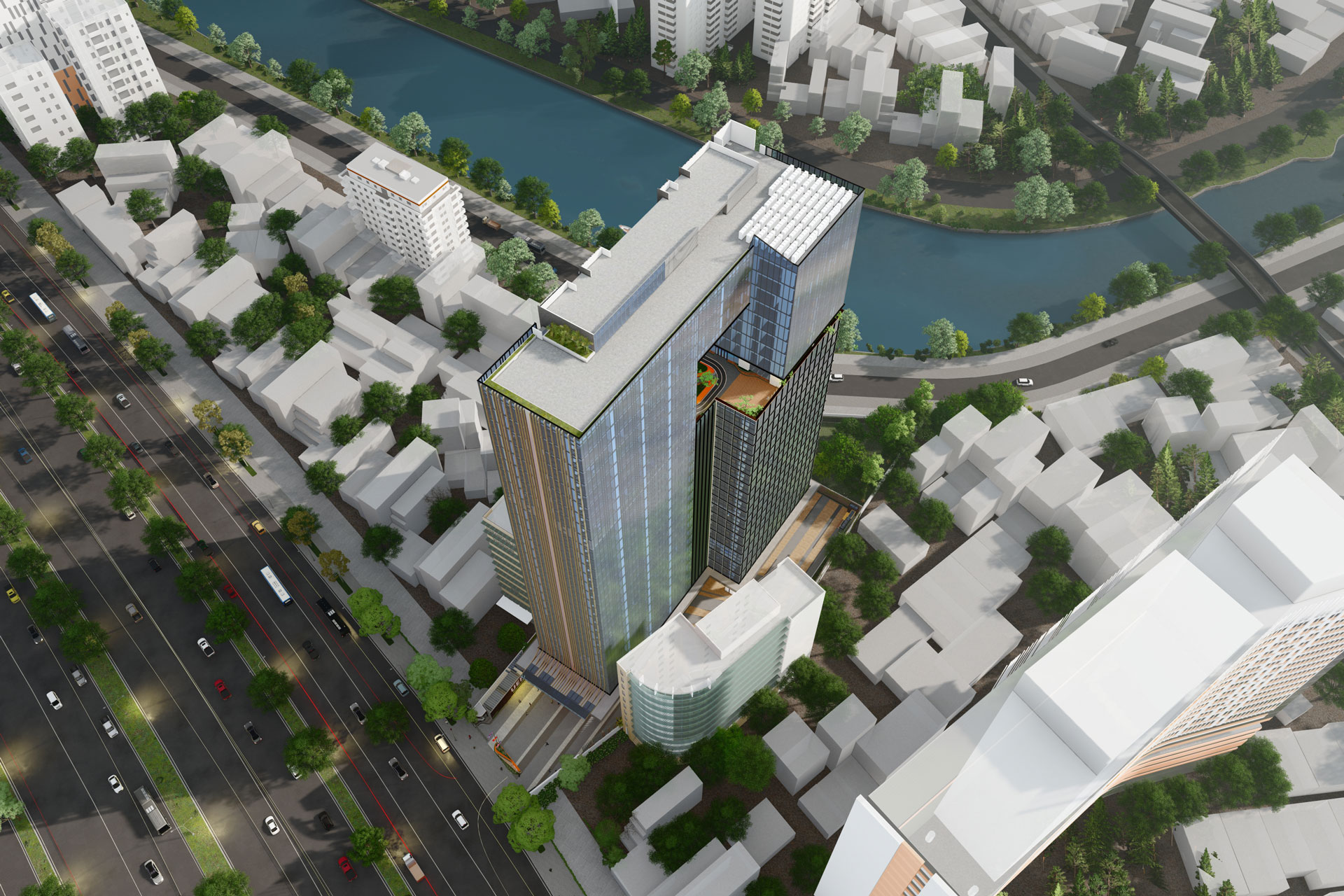 호치민 도심으로 진입하는 디엔비엔푸(Điện Biên Phủ) 거리에 위치해 이름 붙여진 197DBP 호아빈 오피스(197DBP Hòa Bình Office)는 하늘을 향해 열린 보이드와, 두 가지 요소로 이루어진 유리 블록으로써 최적의 업무 공간을 형성하고자 한다. 군더더기 없이 단순한 디자인은 건물을 이 일대에서 강하고 품위 있는 이미지로 거듭나게 할 것이다. 건물 정면부는 인근 거리를 연계하며, 배면부는 향후 친환경적이며 매력적으로 개발될 수로를 연결한다. 호치민법인에서는 기본설계 용역을 수행, 2025년에 완료했다.