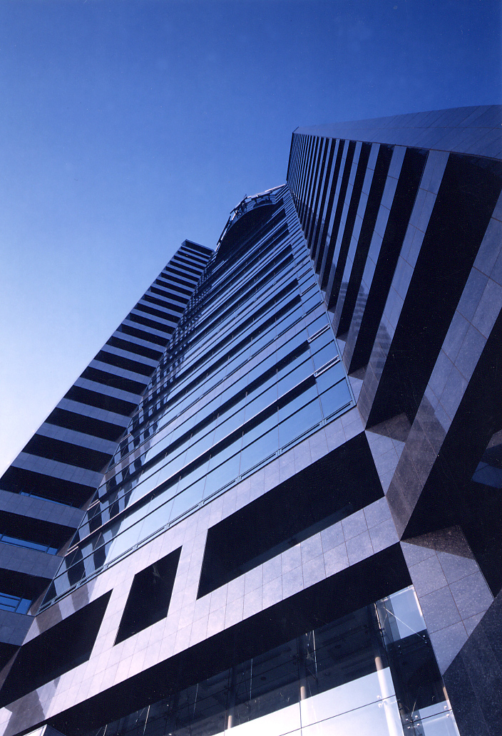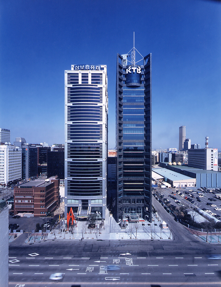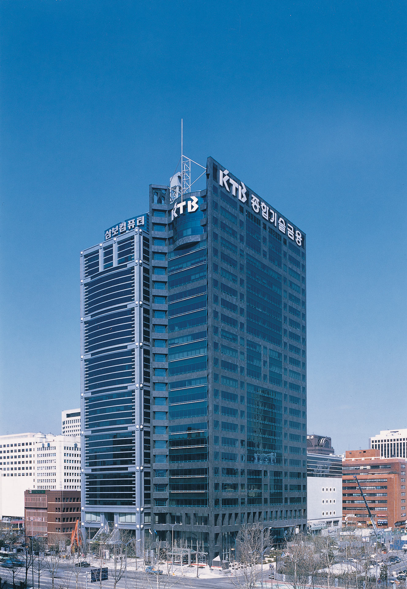 (前)한국종합기술금융사옥은 외부형태는 기술개발 지원이라는 테크놀리지 뱅킹의 힘차고 진취적인 기업의 이미지를 담기 위해 노력했으며, 측면은 한국 전통 창호에서 유추한 패턴을 인용, 도시 스케일 감각으로 정리했다.