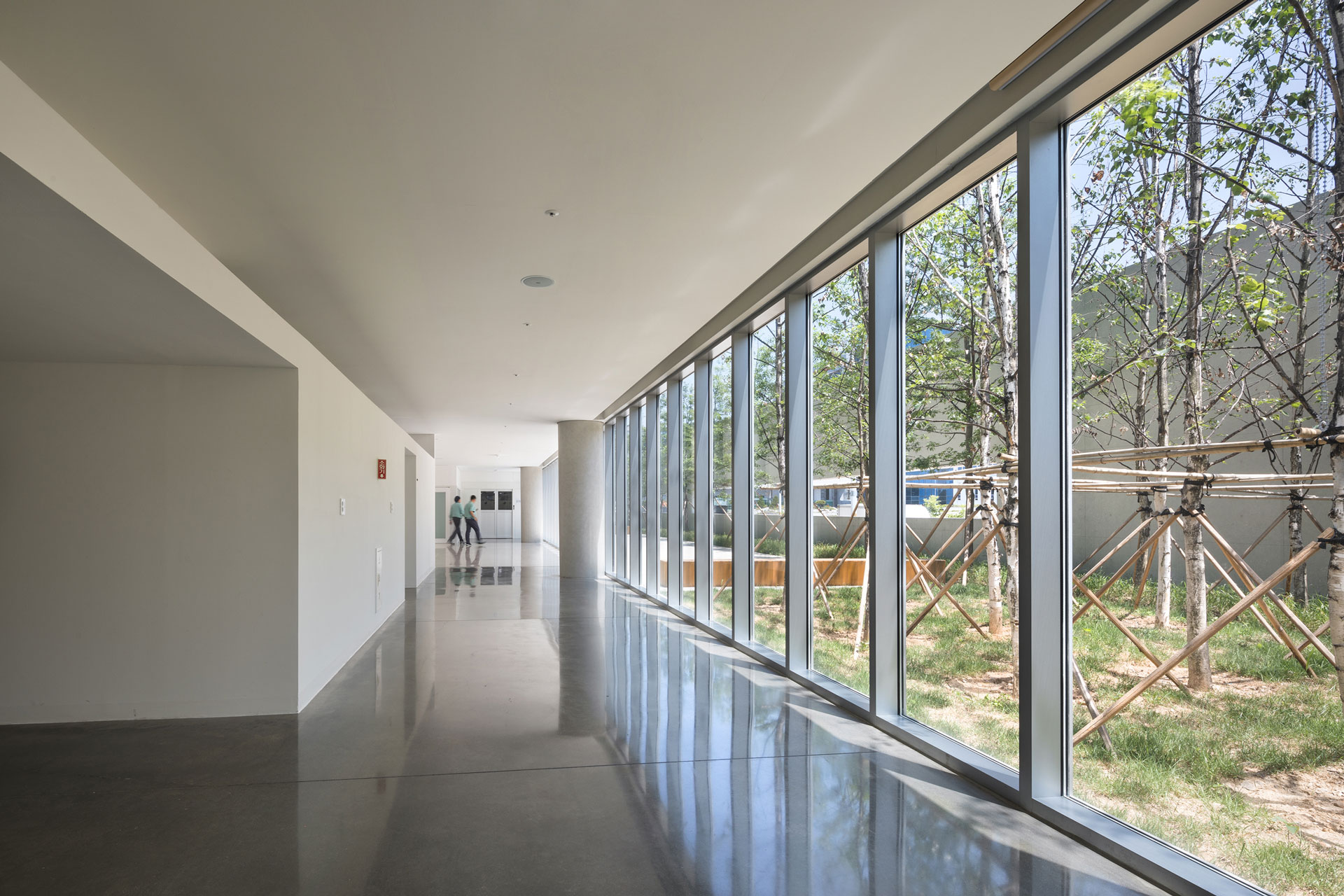 직원 진출입 동선은 뷰티 사업장의 전면 도로인 가장산업동로에서 진입이 가능하도록 남측에 배치하였고, 화물 동선은 직원 동선과의 간섭을 피해 대지 서측에 구성했다. 제1사업장 서측면의 대지에 들어선 본 건물은 각각의 사업장을 연계시키며, 이는 원자재나 완제품의 이동과 같은 기능적인 측면뿐만 아니라, 전체적인 도시 맥락에서 중요한 의미를 갖는다. 이에 제1사업장에 조성된 녹지 축을 본 부지로 끌어들여 제2사업장의 광장과 연계시켜 약 1km의 축을 이루도록 계획했다. 이를 시작으로, 전체 뷰티캠퍼스의 맥락이 녹지와 연계되어 기능적으로도 이어지길 기대한다.