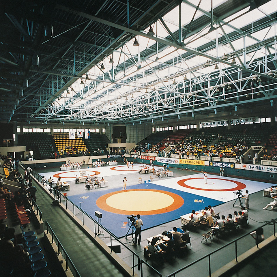 모든 시설을 태양축에 적용 배치하고 기존 지형의 특성을 활용하며 증축을 대비한 공간체계를 형성한다. 각 경기장은 연습경기장 및 체력단련장으로 활용되도록 가변 공간으로 계획하고 트러스 구조를 원통형 코어 4개로 받치는 구조 표현으로 강한 남성적인 조형미를 연출하고 있다. 조명은 천창에 의한 자연채광으로 모든 경기를 진행할 수 있도록 해결하고 있다. 2007년 4월 국군체육부대 본부가 경북 문경시로 이전함에 따라 철거되었다.