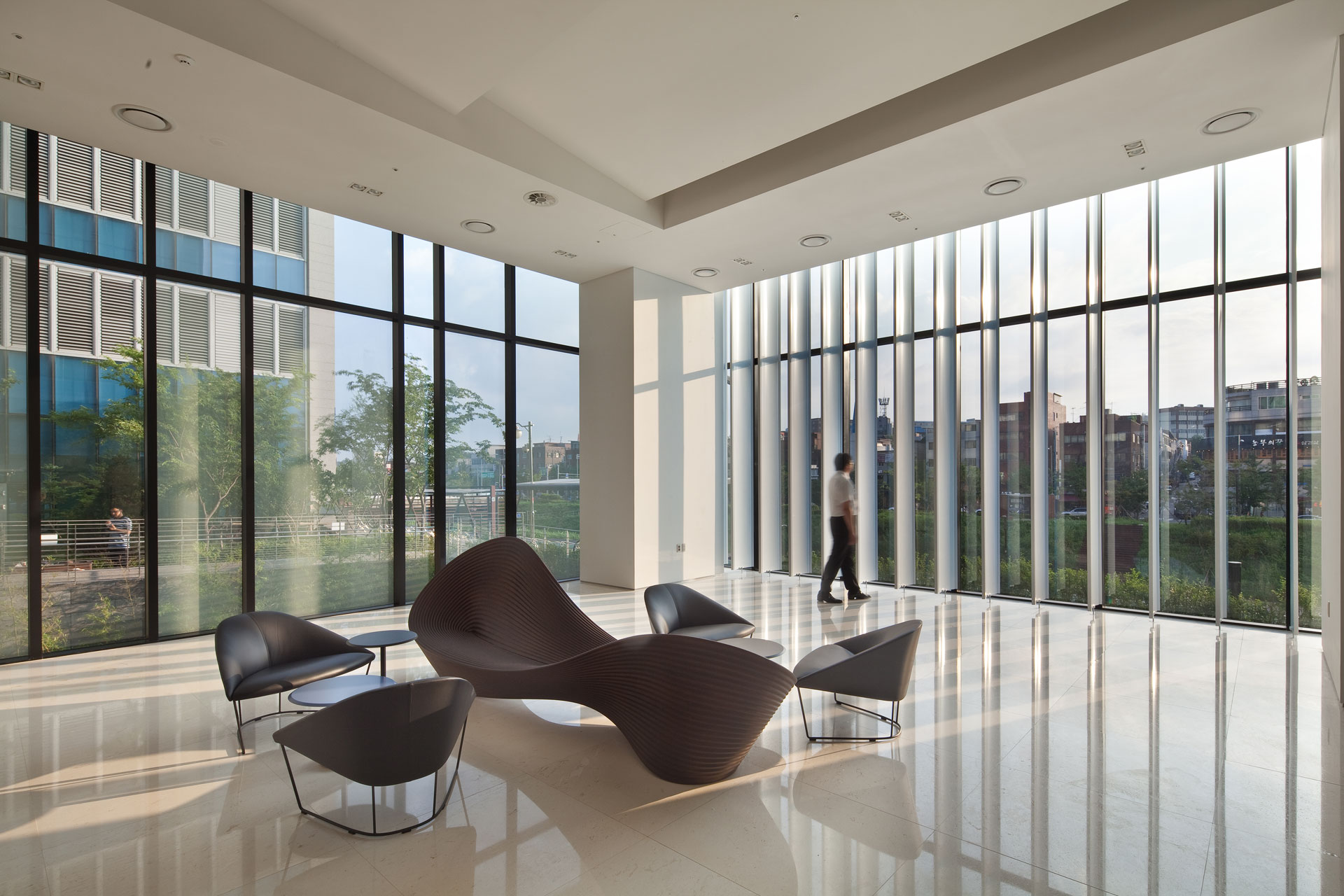 둘째, 단순히 사옥이라는 하드웨어의 성격에서 벗어나 기업의 성장동력을 담는 실질적인 복합체가 된다는 점이다. 세스코가 추진하고 있는 신규사업을 가장 잘 구현할 수 있도록 위탁교육시설 및 홍보관, 시뮬레이션실, 연구개발실 등의 차별화된 공간이 서로 교류하며, 방역작업과 위생교육 실습을 위한 시뮬레이션 공간이 함께 통합되도록 하였다.