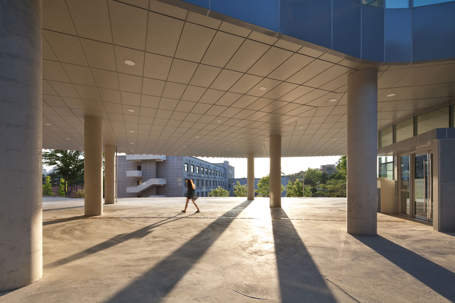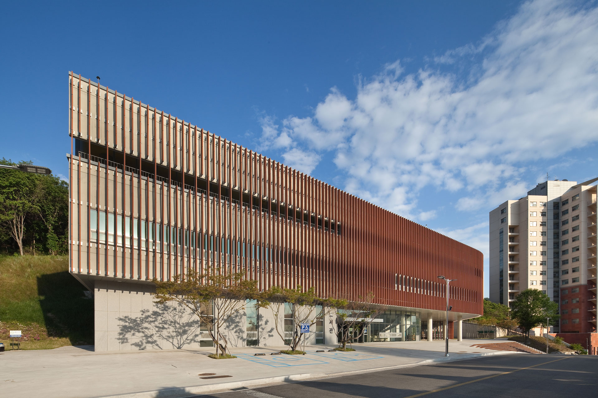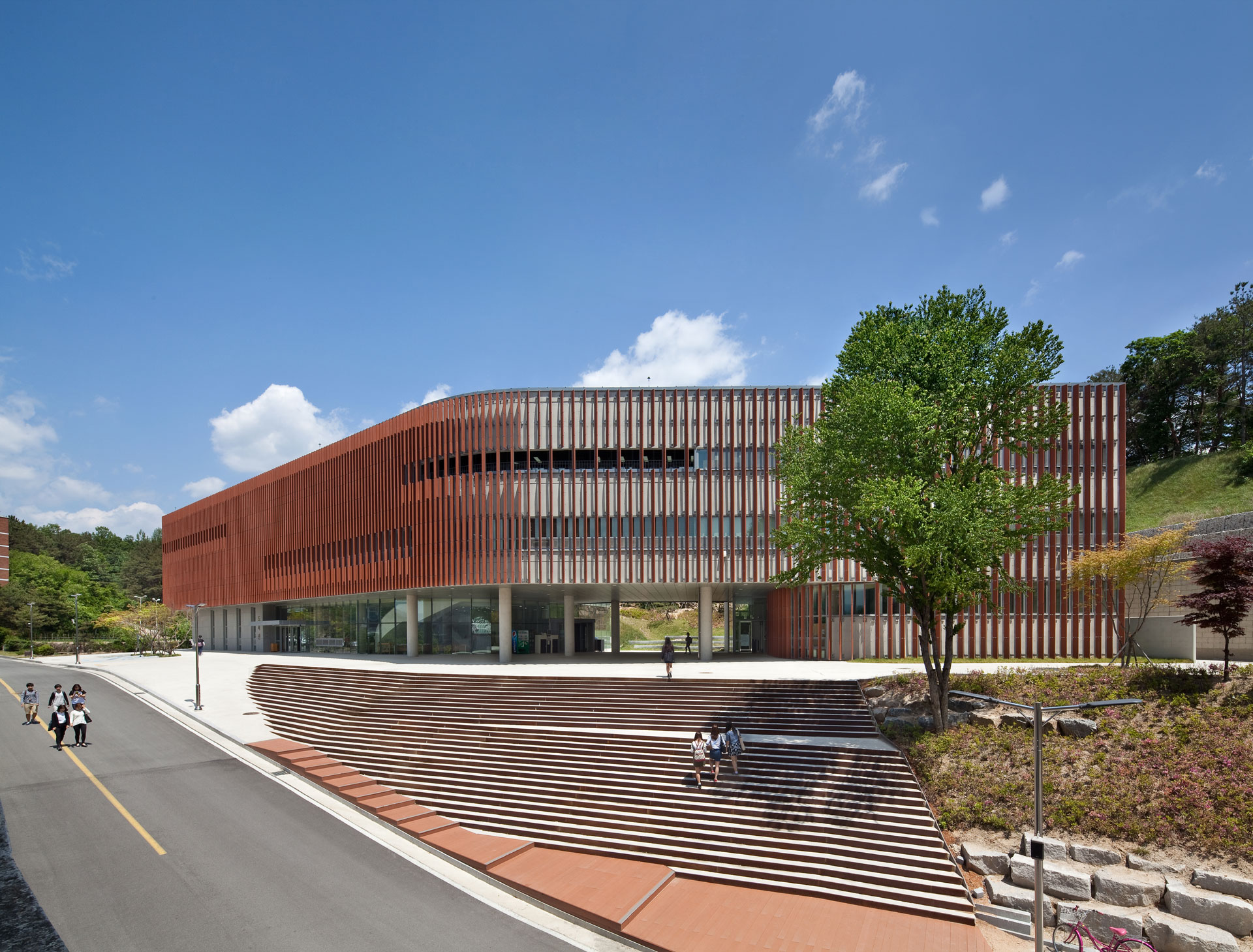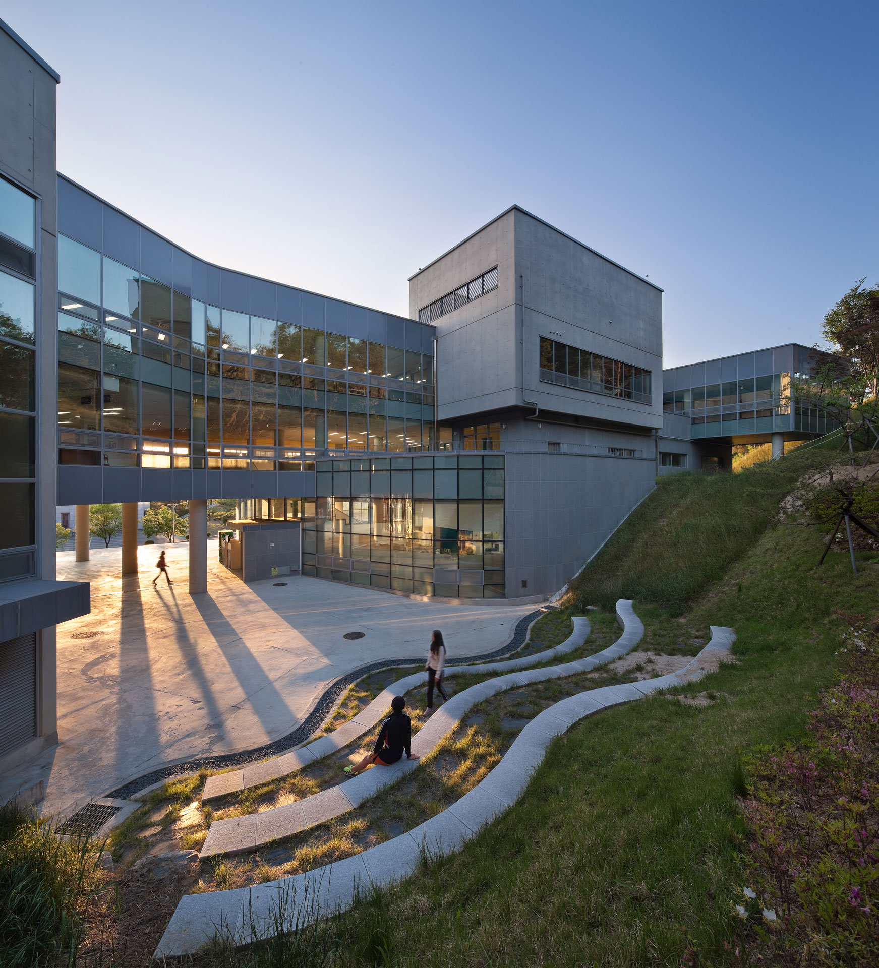 토목 공사를 최소화하면서, 동산 능선흐름을 그대로 이어받은 배치로, 진입축과 서측의 오픈 스페이스를 대면할 수 있는 축을 반영한 전면을 만들어 캠퍼스의 새로운 얼굴을 만들고, 동쪽은 계곡에 서향은 캠퍼스에 면해있는 현황의 대비감을 그대로 살려 자연과 사람이 소통하는 환경을 만드는 건축을 시도했다.