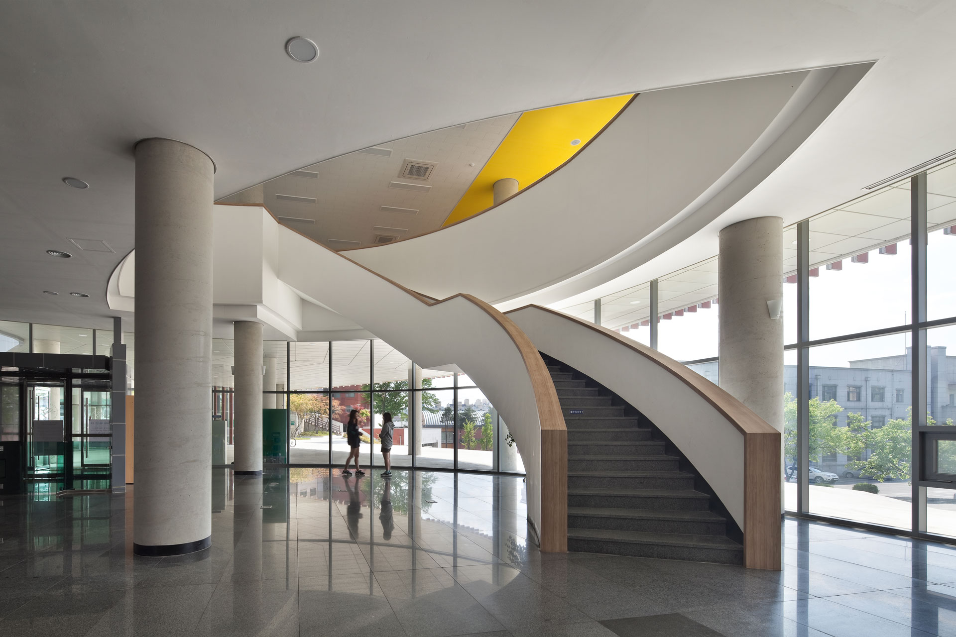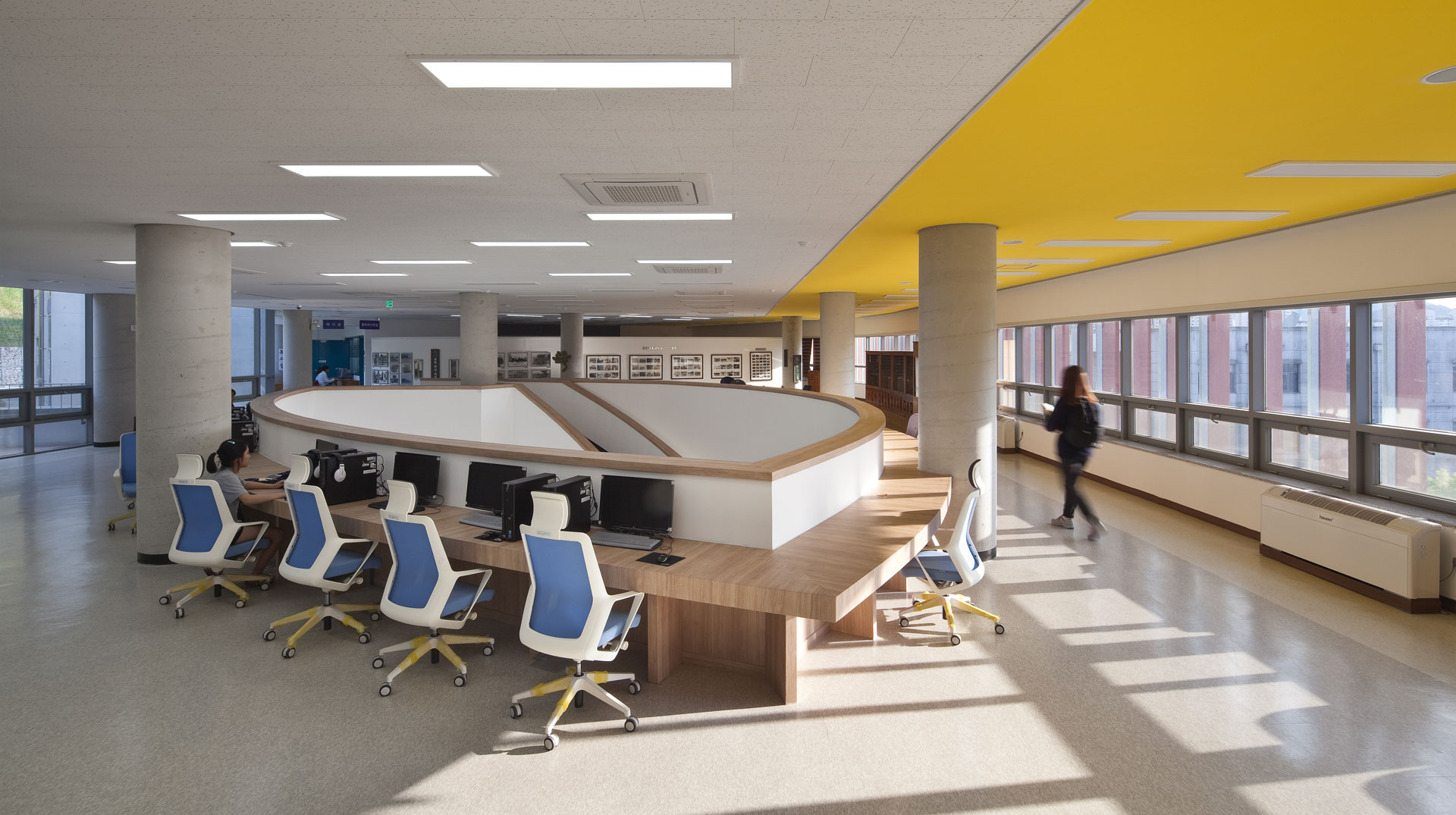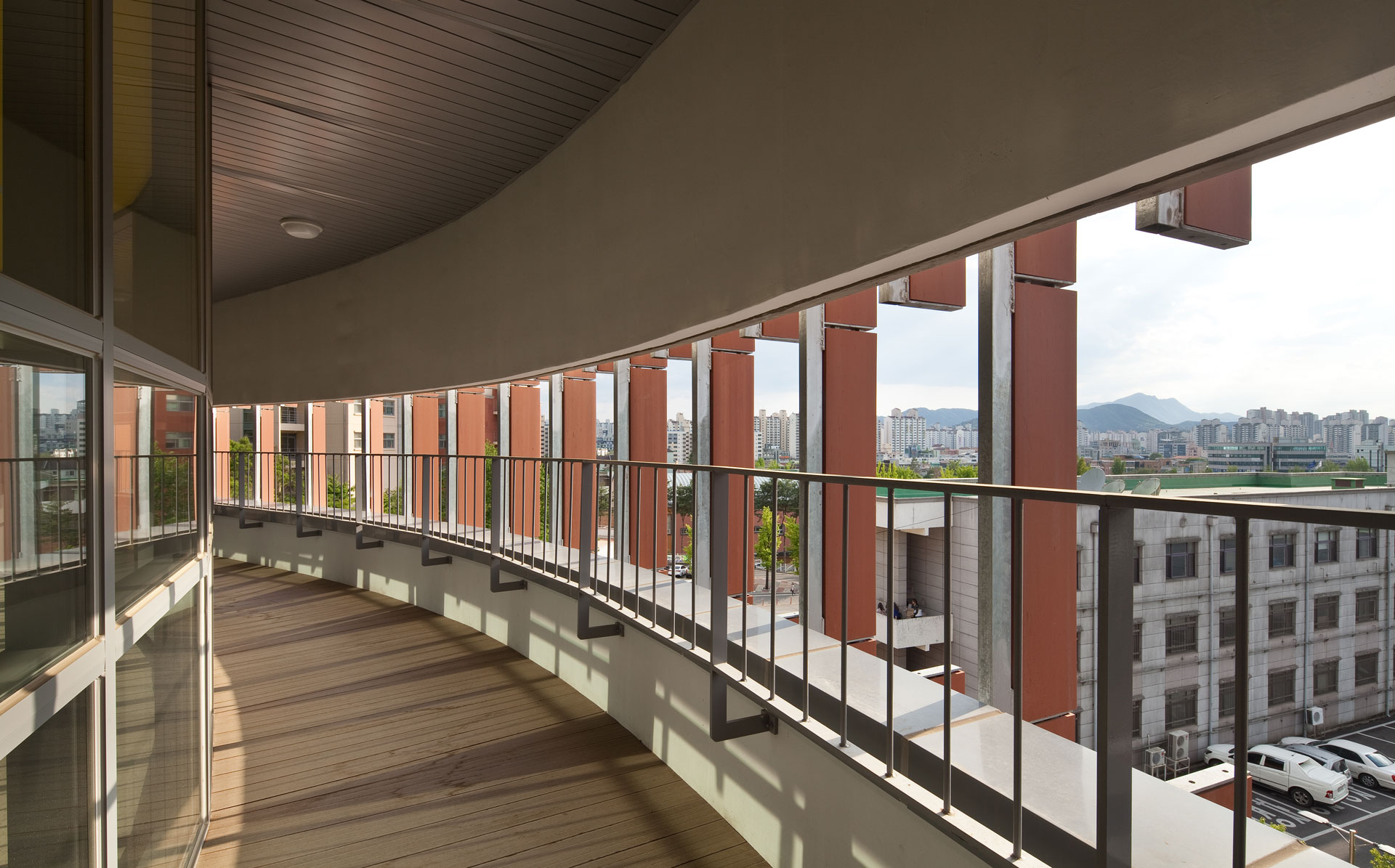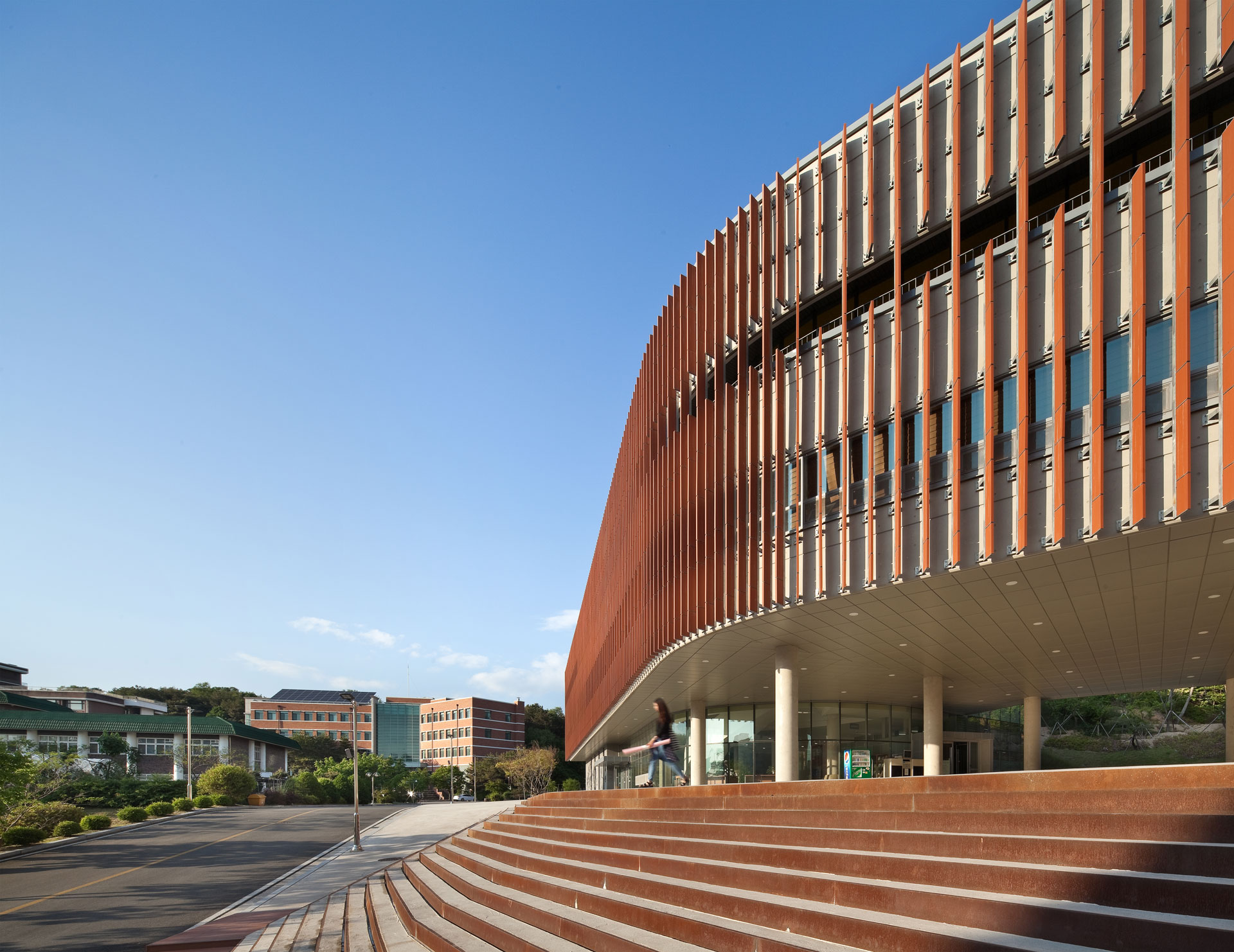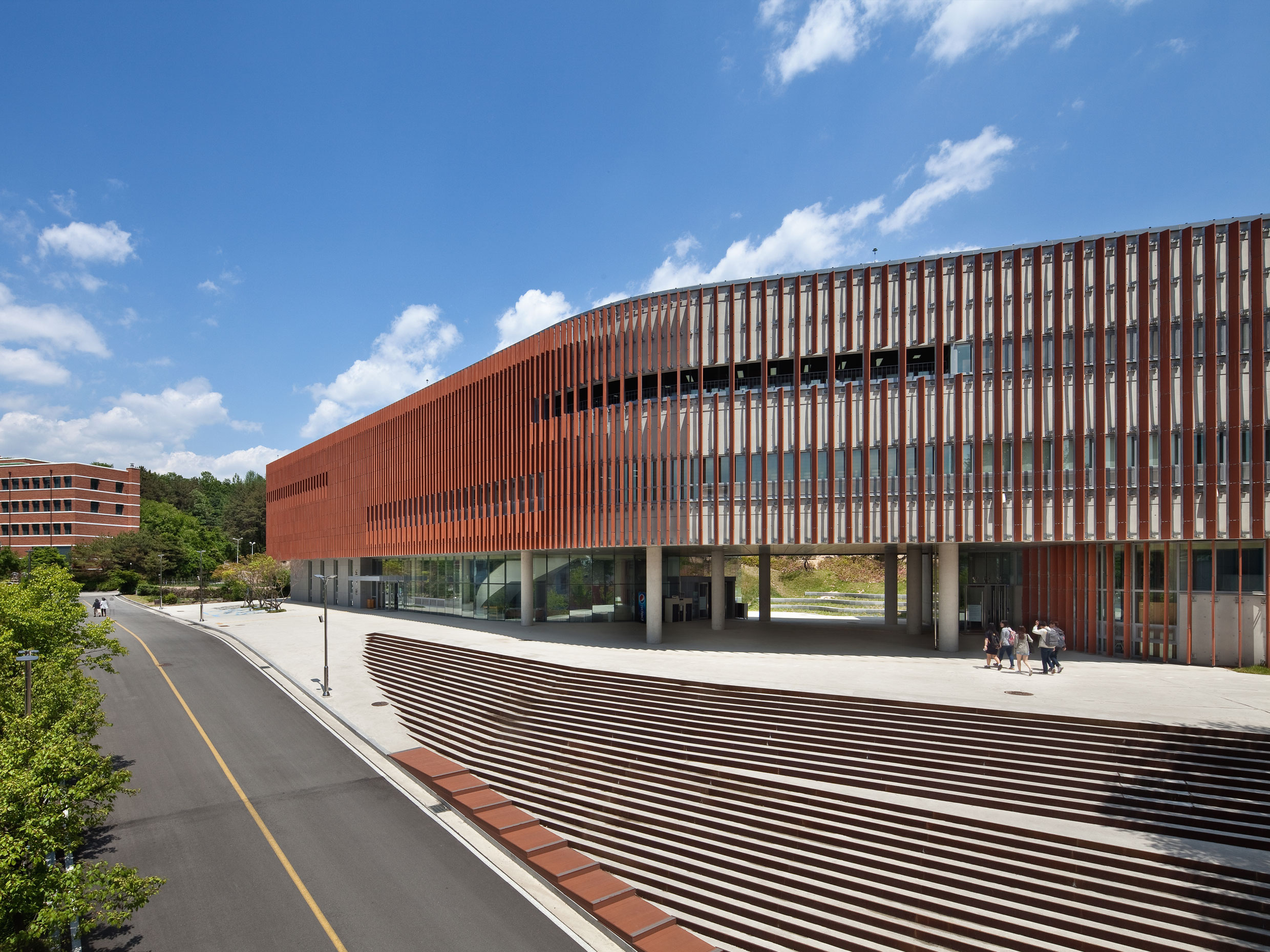 토목 공사를 최소화하면서, 동산 능선흐름을 그대로 이어받은 배치로, 진입축과 서측의 오픈 스페이스를 대면할 수 있는 축을 반영한 전면을 만들어 캠퍼스의 새로운 얼굴을 만들고, 동쪽은 계곡에 서향은 캠퍼스에 면해있는 현황의 대비감을 그대로 살려 자연과 사람이 소통하는 환경을 만드는 건축을 시도했다.