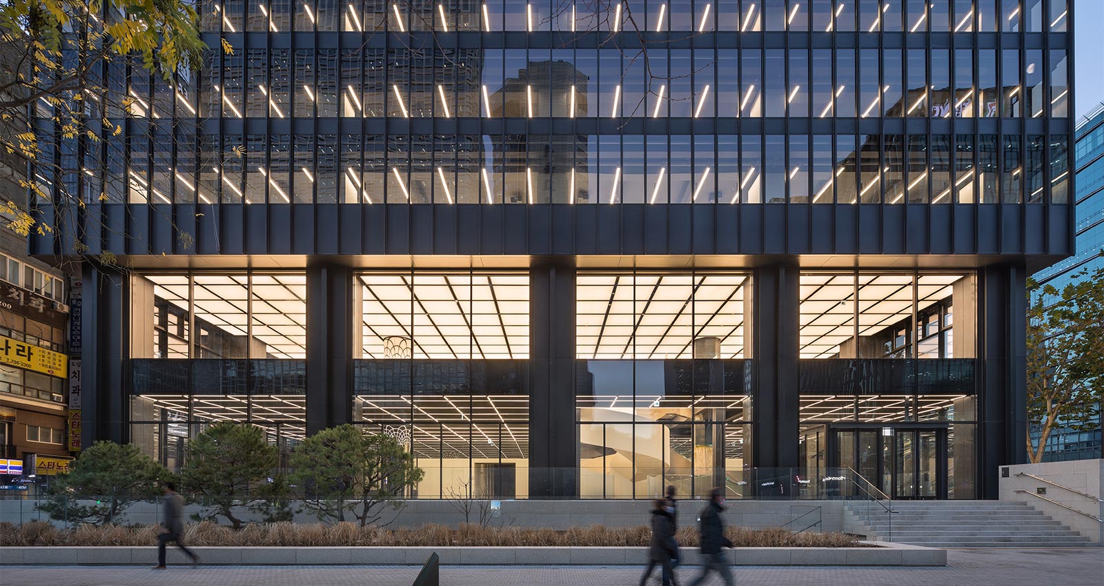 여러 가지가 있지만 3.1빌딩 리모델링을 꼽고 싶네요. 이 프로젝트는 1969년에 준공한 건물이었던 만큼 노후 자재를 교체하고 구조적으로 보강하면서 근현대 건축 문화유산으로서의 상징적 요소를 보존하고 드러내야 하는 과제가 있었습니다. 그 핵심이 되는 입면성을 이루는 스틸 커튼월은 원비례를 유지하면서 현대식으로 교체 설치했습니다. 기존 스틸 커튼월 일부를 해체해 헤리티지 요소로 1층에 보존 설치했고, 몇몇 기둥과 보를 날 것 그대로 드러냈어요. 스틸 커튼월의 I빔에는 원래 일본산 코르텐 압연강재를 사용했는데, 굳이 이를 고수할 필요가 없다고 판단해 수급이 안정적인 국산 자재를 찾았습니다. 포스코의 도움으로 포스맥(PosMac)이라는 고내식성 철판을 두께 6mm의 후판으로 생산, 기존 I빔과 동일한 크기로 레이저 용접해 빌트업(built-up) 방식으로 제작했습니다. 거기에 현존 최고의 내마모성 도료로 도장해 설치하는 것으로 과정을 마무리했습니다. 이러한 상세 설계를 구현한 끝에 현재의 3.1빌딩의 정면성이 완성되었지요.