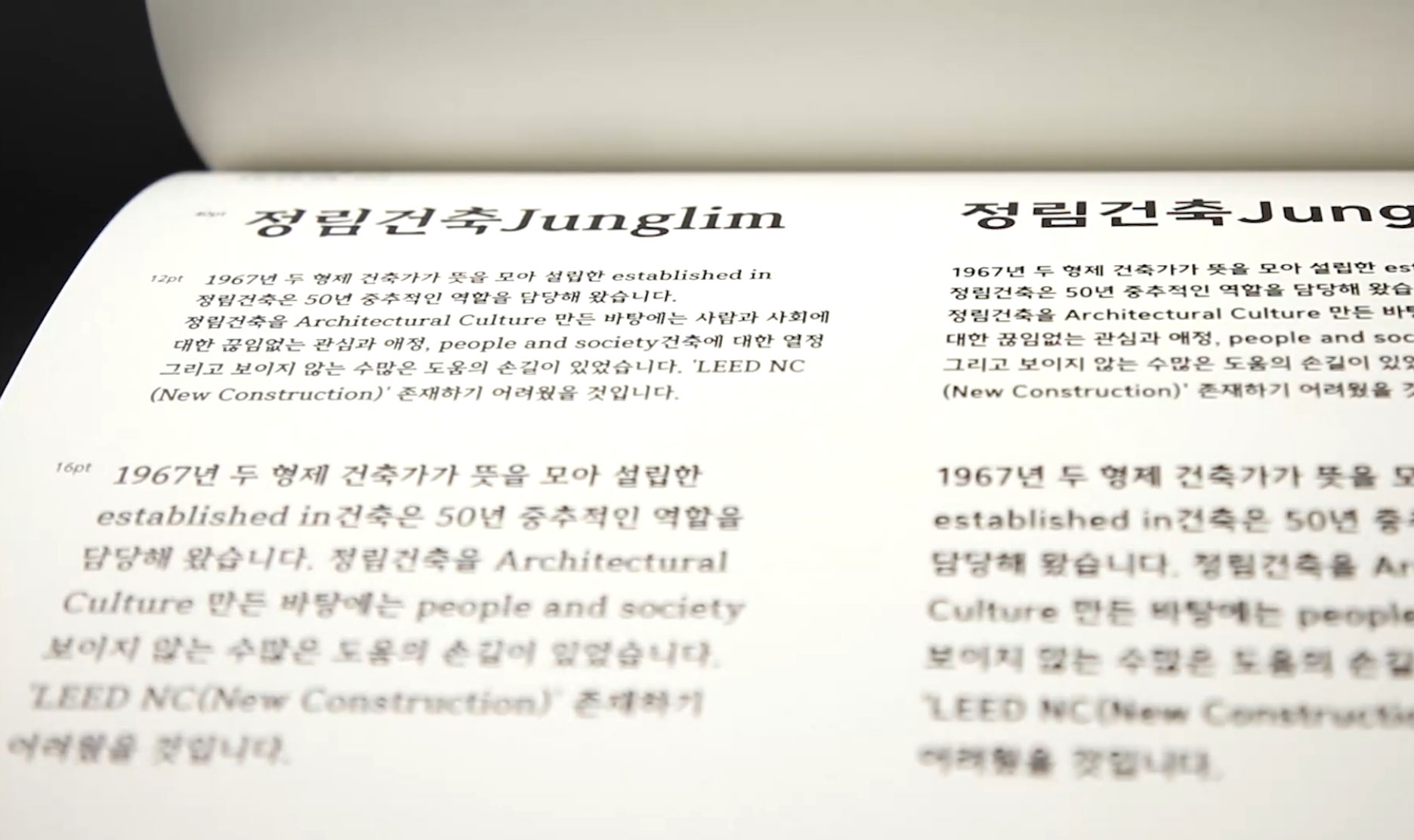 Following the spirit of Kim Jungchul, the founder of Junglim Architecture, a typeface was developed for all future generations who love architecture and culture to use freely. The handwritten font, embodying the founder’s commitment to social contribution, has been digitized. Gothic and Ming-style typefaces optimized for architectural drawings were developed and distributed free of charge so that all architects can use them without copyright concerns.