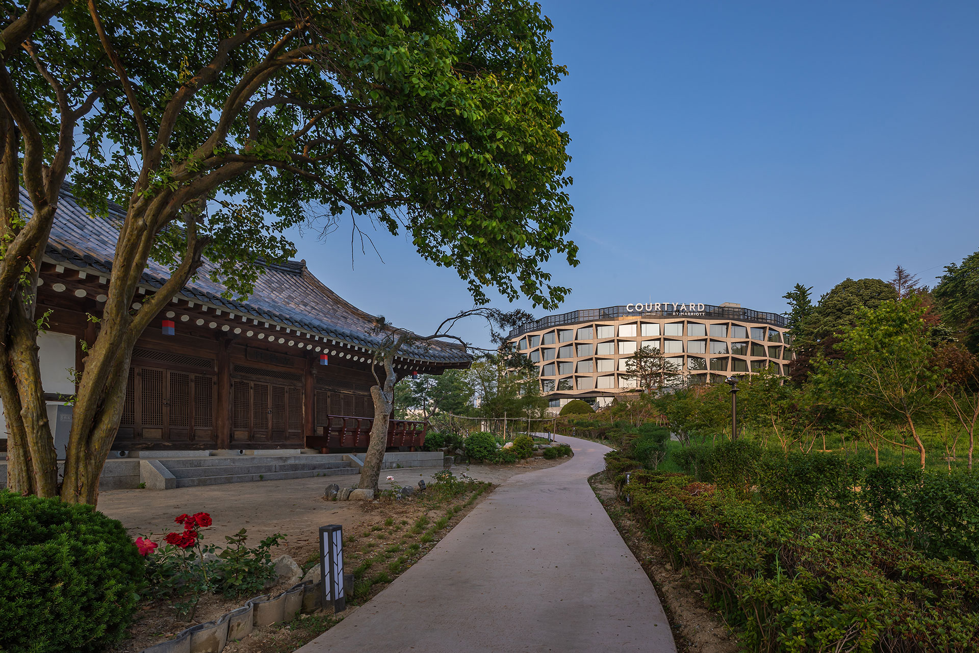 비즈니스호텔이지만 객실까지 가는 여정도 흥미롭고 다채로울 순 없을까? 란 질문으로 고덕국제신도시 코트야드 바이 메리어트 호텔은 시작되었다.