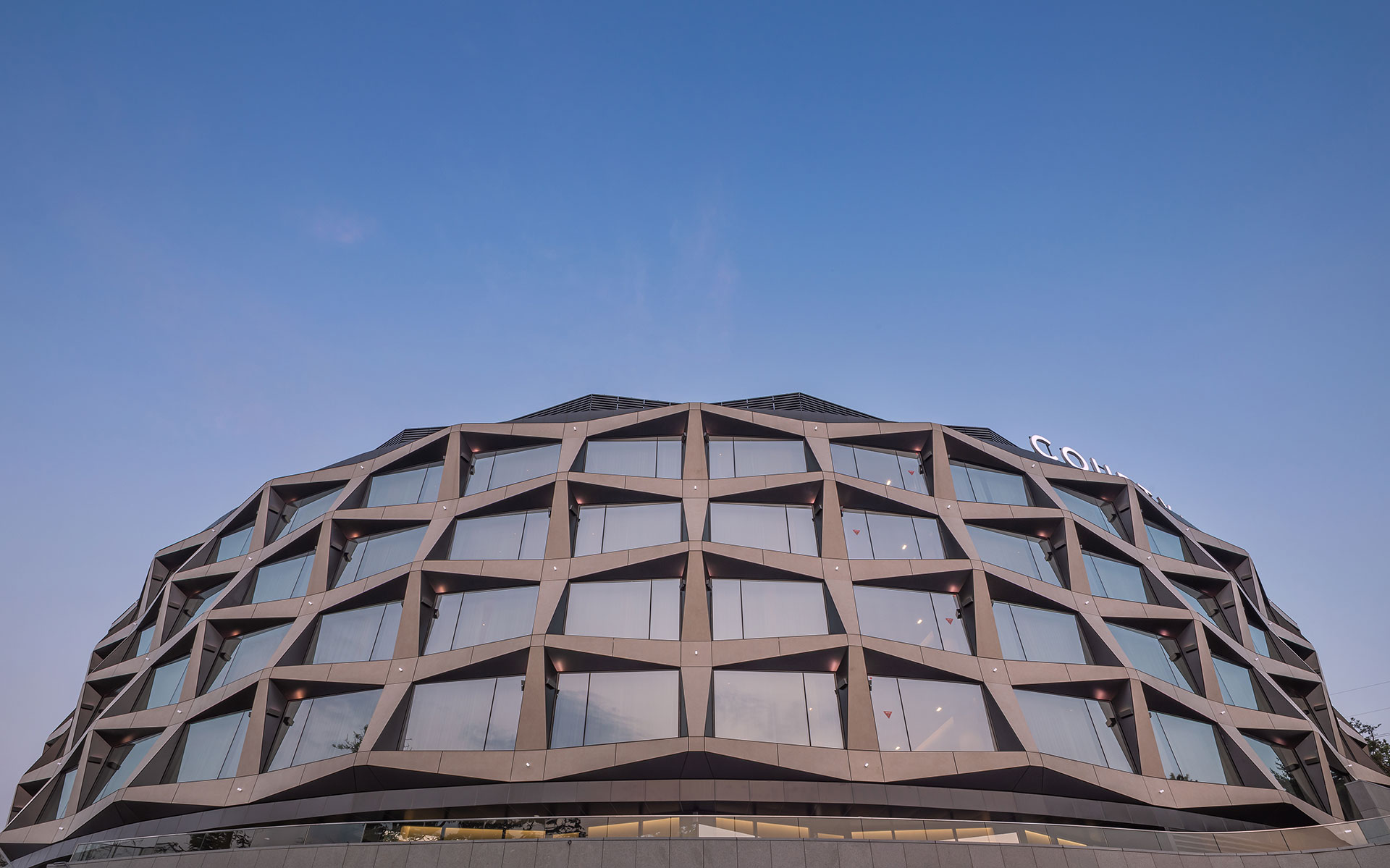 건물은 단일모듈이 12 도로 구성되어 360도의 원형이 완성되며 구조 및 파사 드는 방사형으로 반복구성으로 시공성을 높였다. 건물의 파사드는 호텔에 머무는 시간을 가치 있게 만든다는 콘셉트로 시계의 외곽 베젤의 수공예처럼 입체적 컷팅기법으로 입면을 구성하여 다양한 각도에서 빛에 의해 새롭게 보이도록 의도했다. 또한 입체적인 패널구성으로 독특한 원형의 디자인을 완성하면서 콤팩트한 매스는 에너지절약과 단지개발상 친환경적인 건물로서 작동할 수 있게 적용되었다.