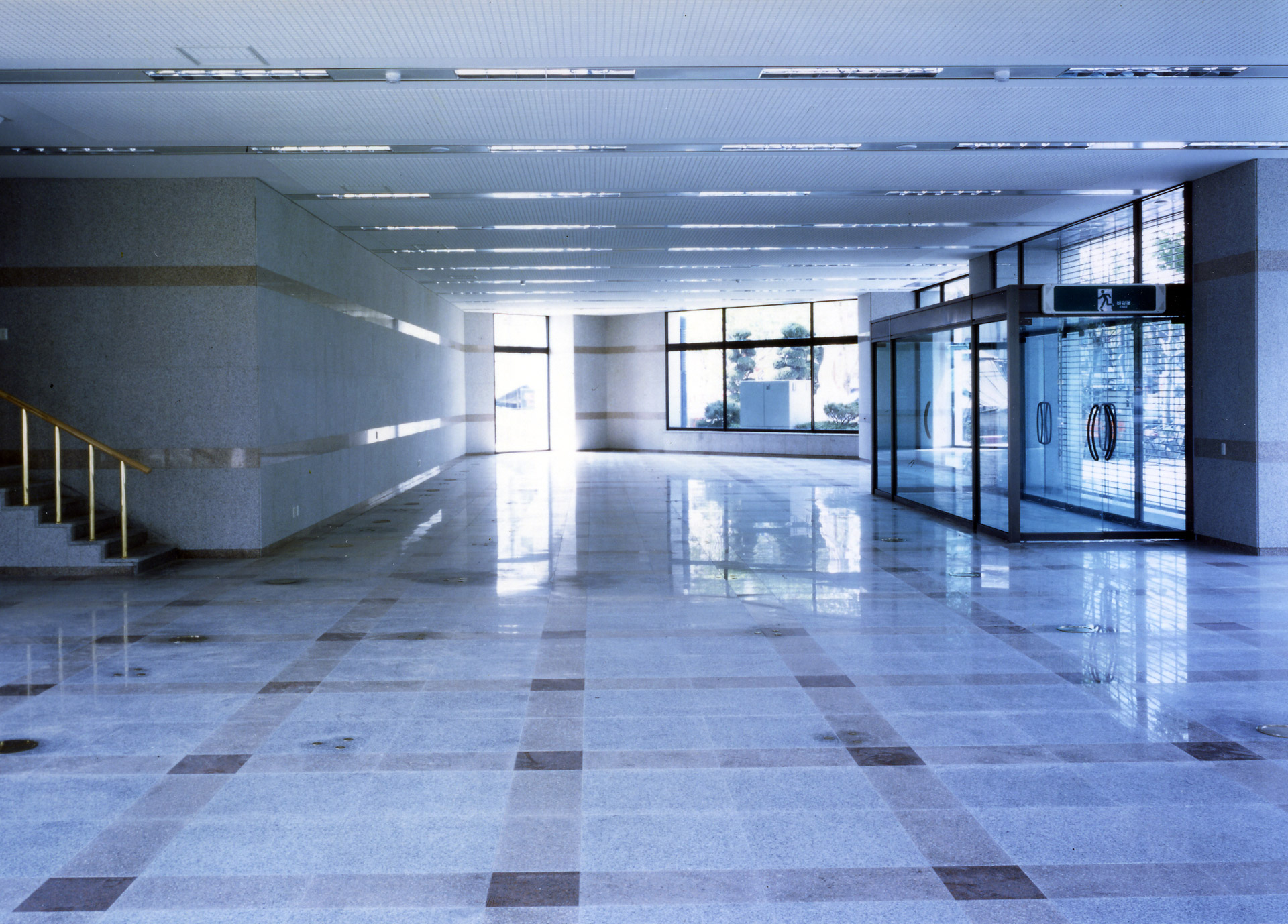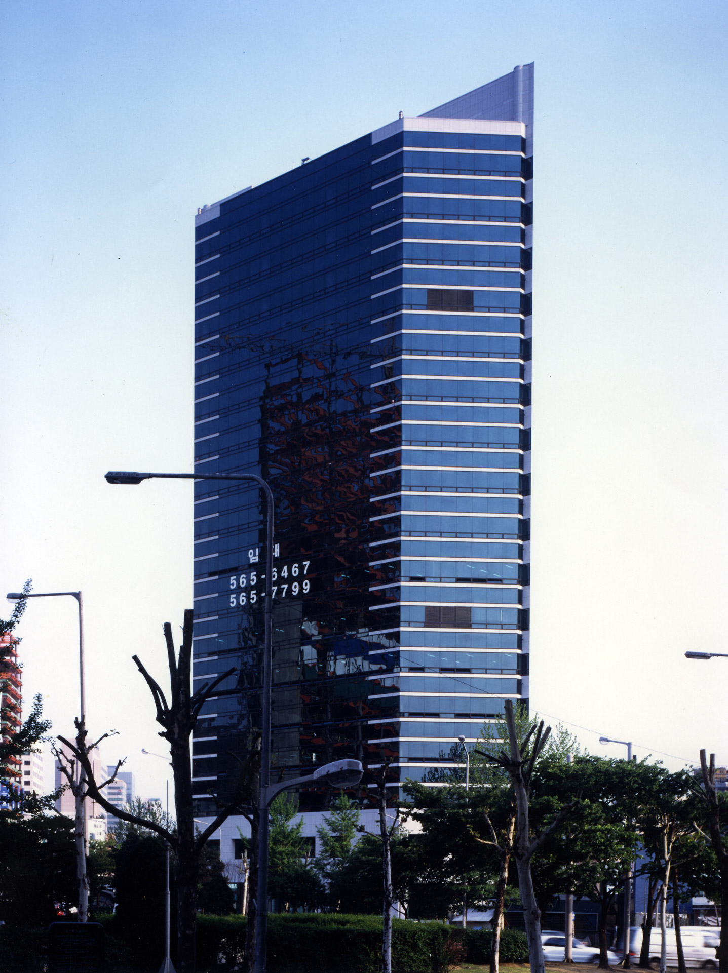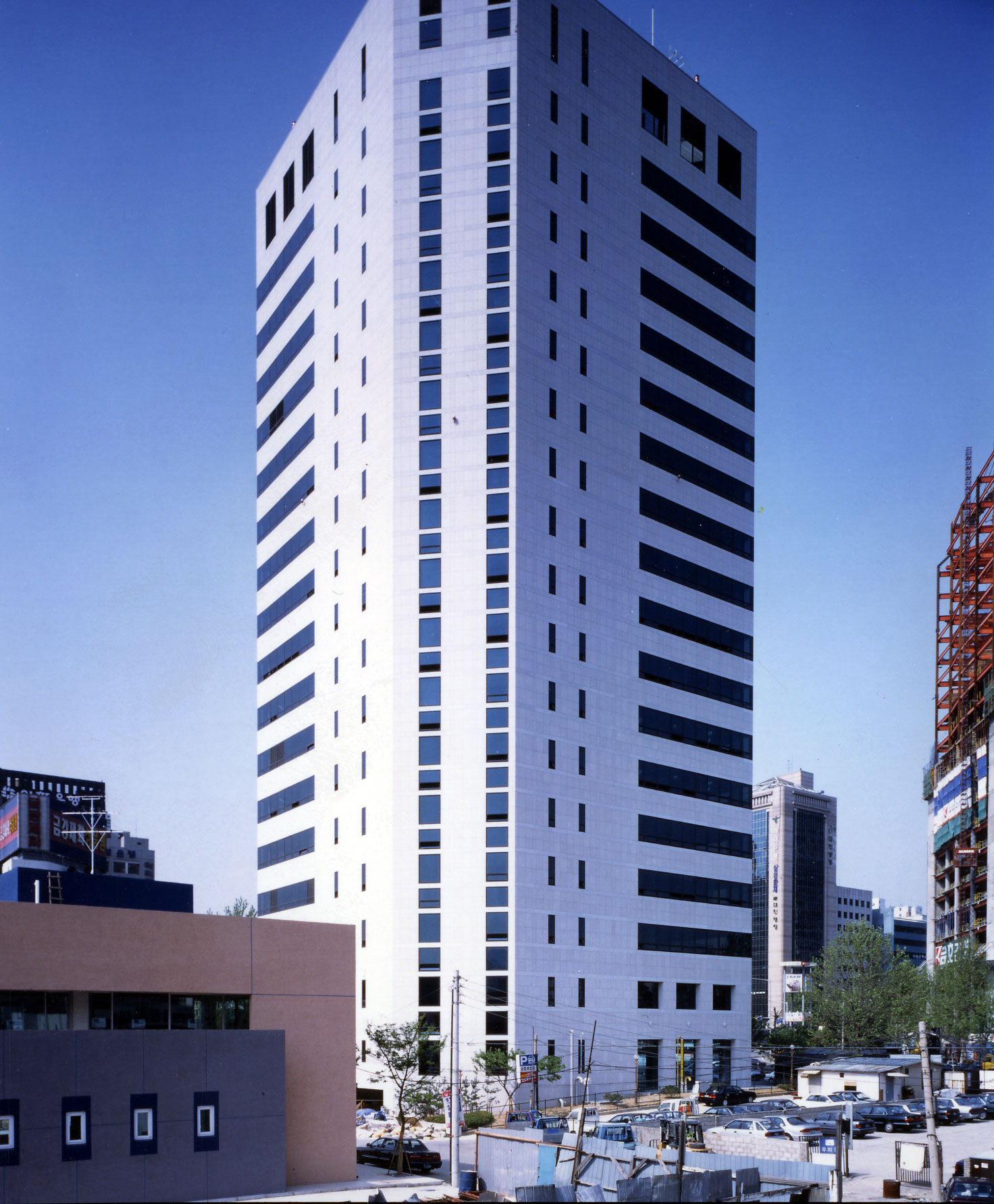 코어는 미래 인접 건물이 막을 수도 있는 남측에 두고, 주 용도인 사무공간은 시각적으로 열려 있는 광장쪽으로 향하게 하였다. 저층부의 출입구는 광장에서 은행으로 이어지는 동선을 유도하고, 대지의 높이차를 이용하여 주출입구 아래에 폭 12m의 후면 도로측에서 접근하는 주차 출입 램프를 두어 어려운 대지 조건 속에서도 동선을 분리했다.