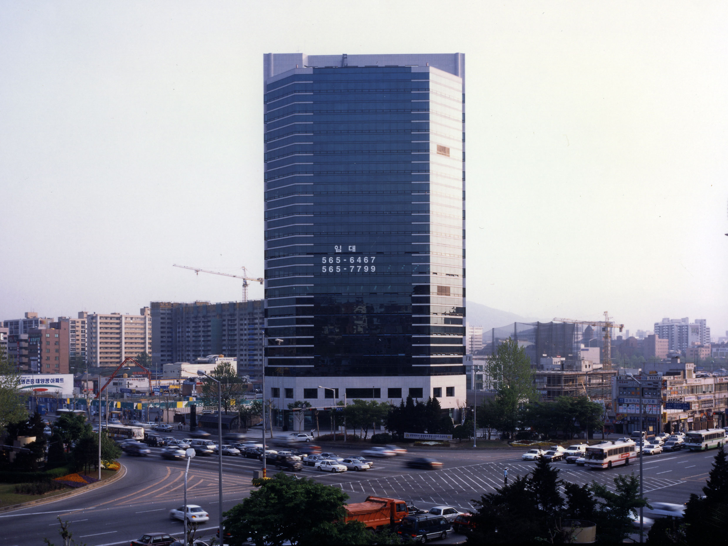 코어는 미래 인접 건물이 막을 수도 있는 남측에 두고, 주 용도인 사무공간은 시각적으로 열려 있는 광장쪽으로 향하게 하였다. 저층부의 출입구는 광장에서 은행으로 이어지는 동선을 유도하고, 대지의 높이차를 이용하여 주출입구 아래에 폭 12m의 후면 도로측에서 접근하는 주차 출입 램프를 두어 어려운 대지 조건 속에서도 동선을 분리했다.