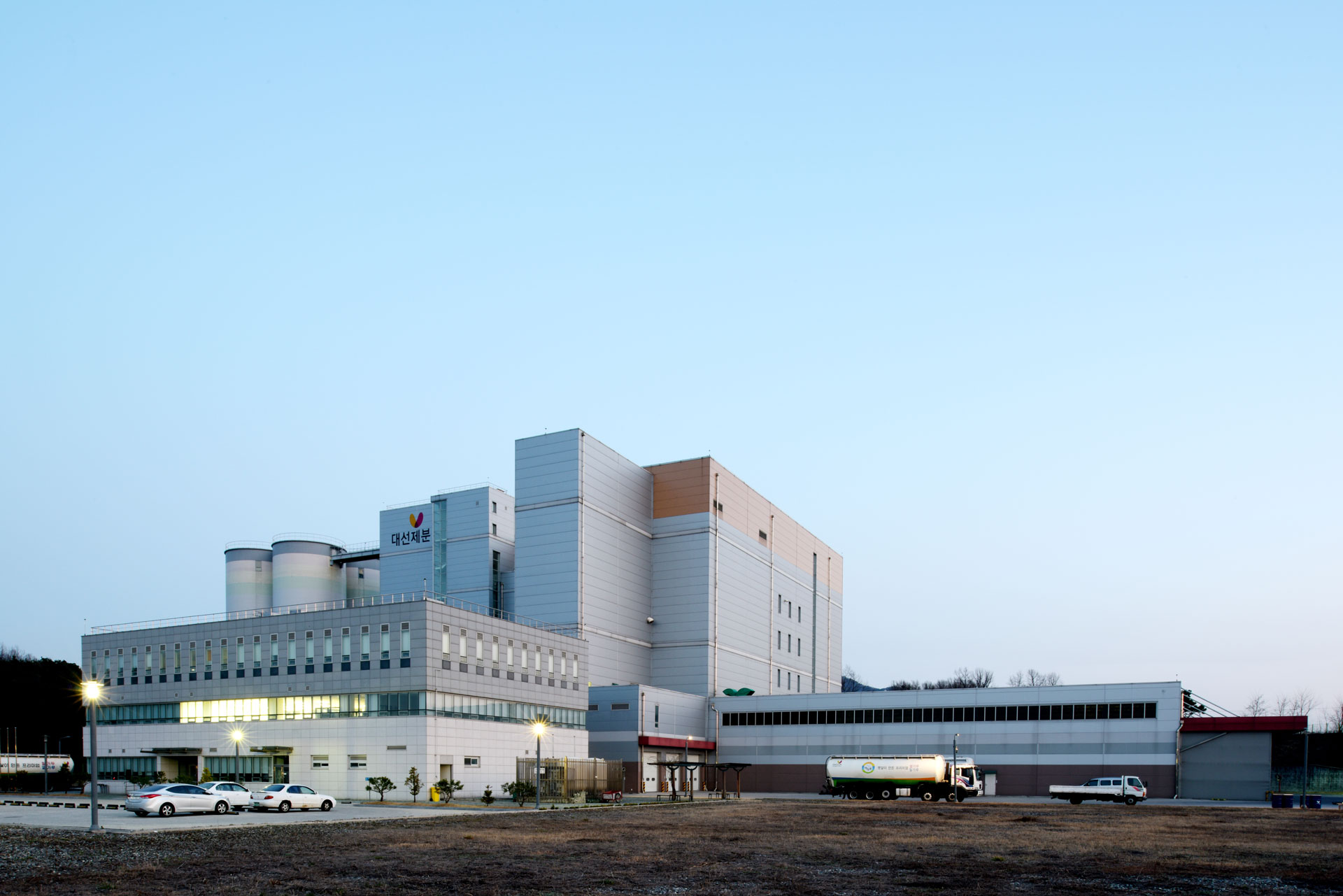 대지는 낮은 구릉지에 광활한 간척농지를 조망하는 형상이며, 긴 진입축을 설정하고 공장동의 정면성을 부여했다. 전면에 증설 부지를 확보하여 자유로운 부지이용이 가능하였으며, 사무동을 전면에, 공장동을 남측에 배치하여 대지 이용을 최대화하였다.