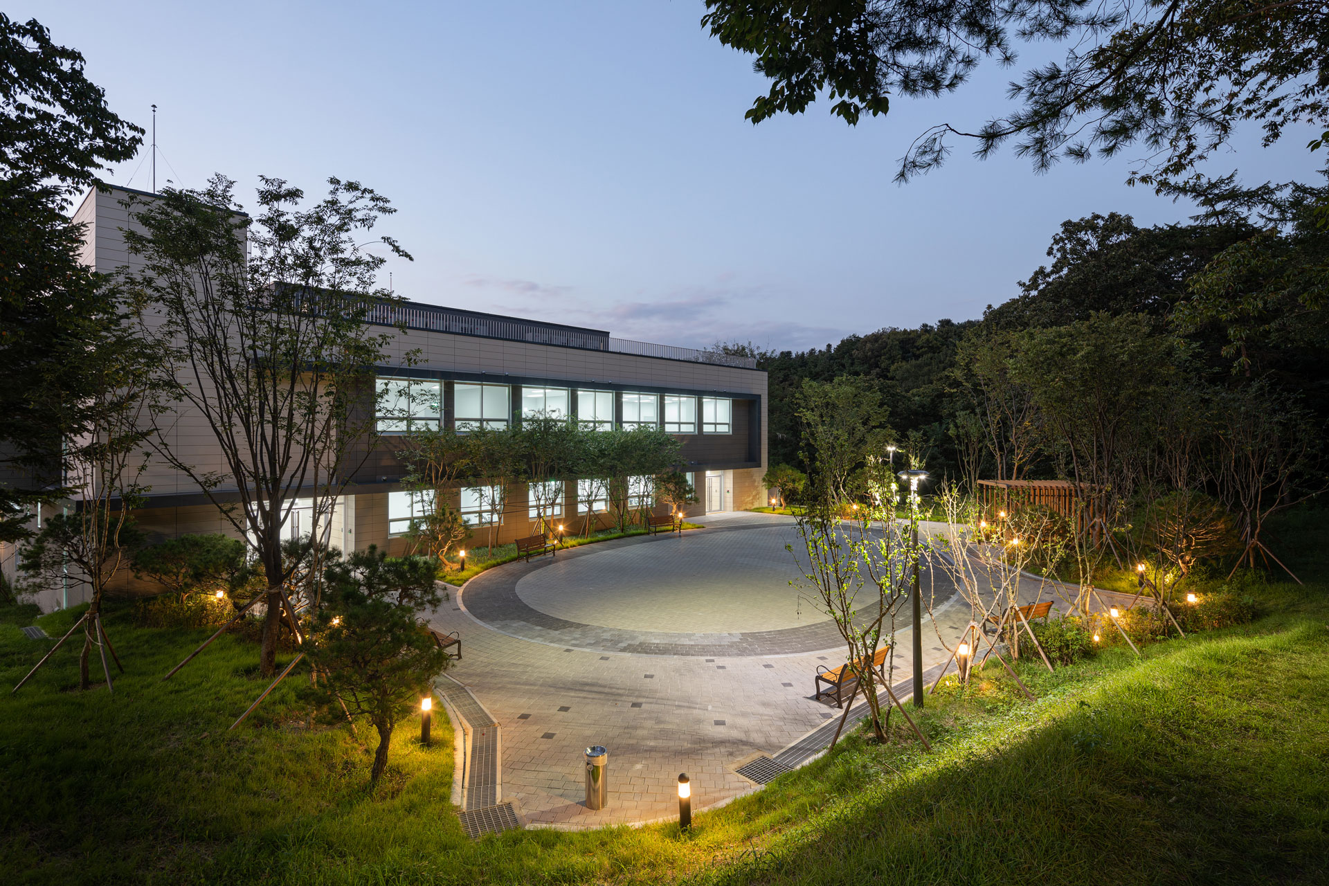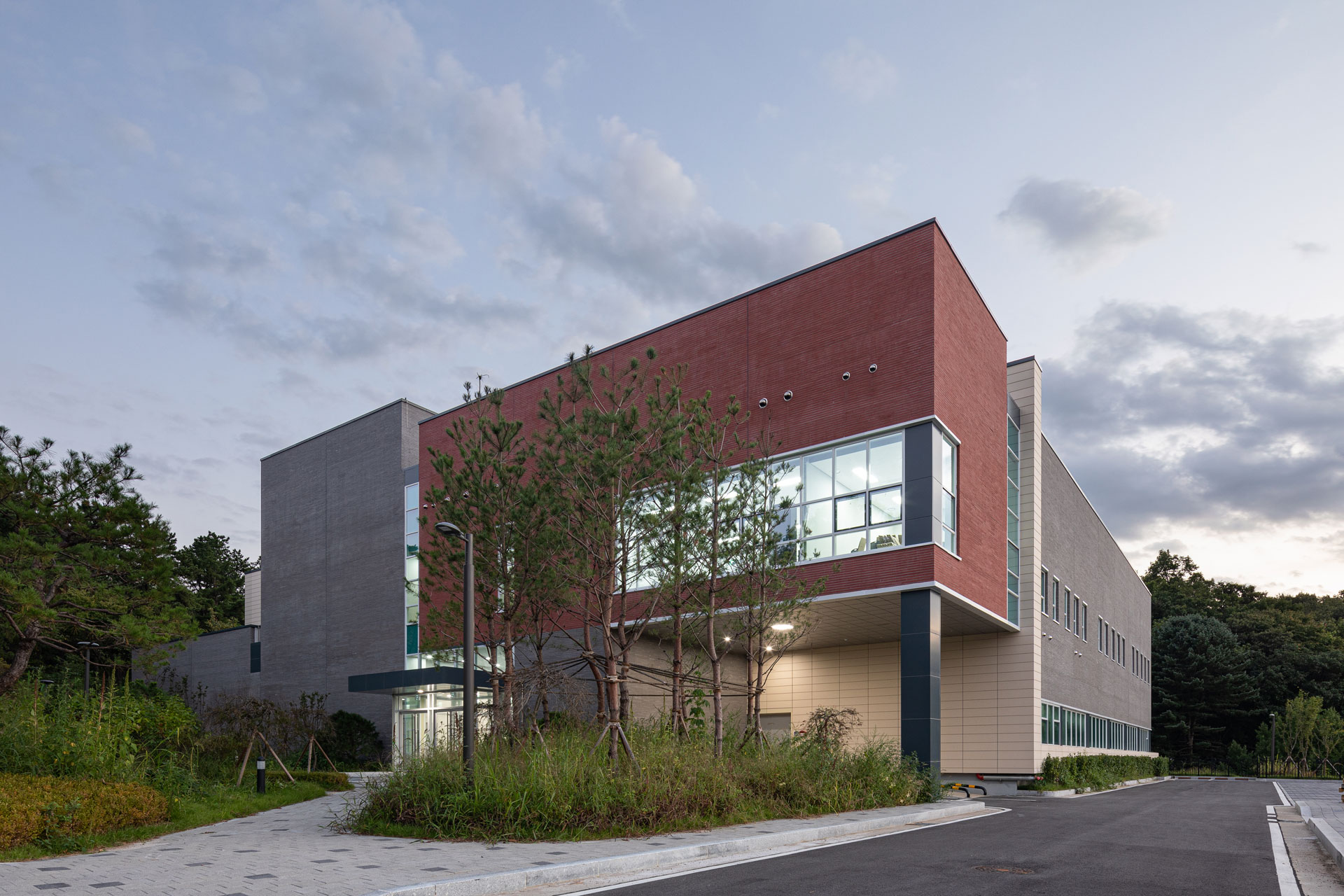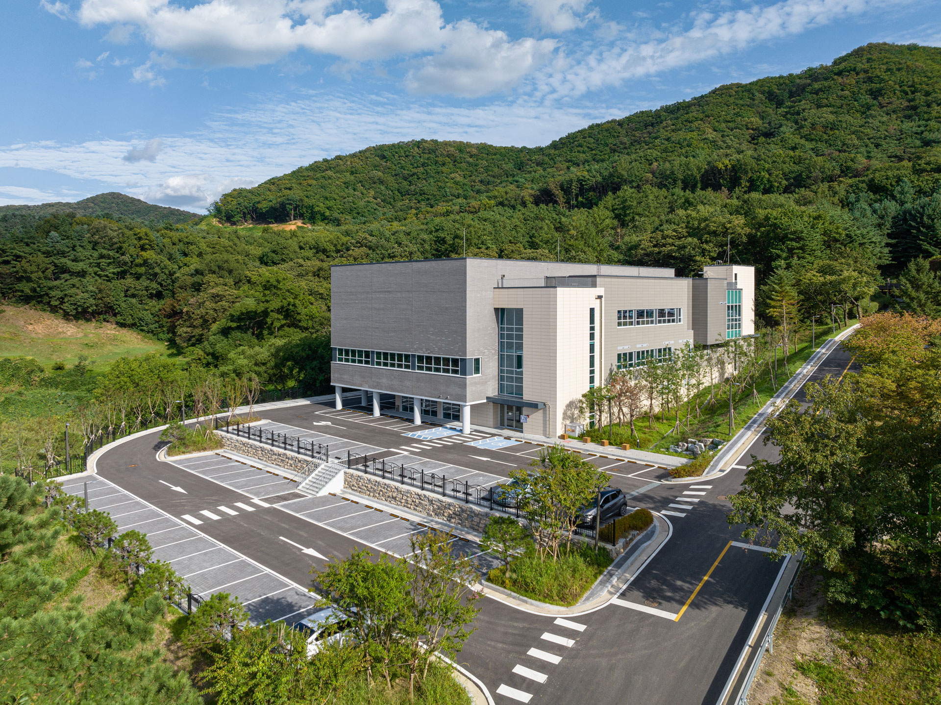 또한 별동으로 계획한 문서고는 DB손해보험이 산재하여 보유·관리하고있는 문서들을 통합하여 중앙문서관리 역할을 하게된다. 해발 367m의 해룡산 자락으로 둘러싸인 자연경관속에 건축되는 시설들로서 가급적 수평성을 강조하면서 Mass를 작게 분절하였고, 그레이컬러를 주조색으로 한 테라코타와 콘크리트벽돌을 사용하였다.