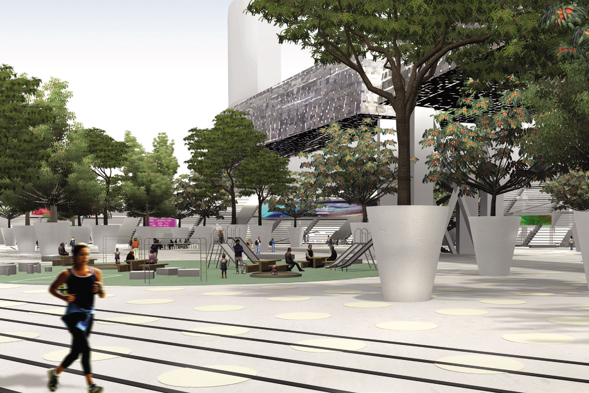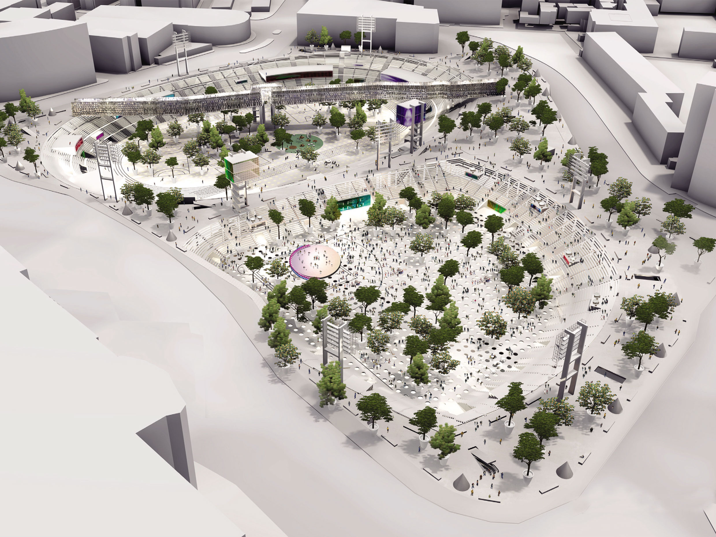 기존 동대문 운동장의 관람석을 새롭게 해석한 ‘트리뷴스(Tribunes)’, 메가 스트럭처인 WDPC를 하나로 엮어 쇼핑 및 전시 기능을 동선과 함께 프로그램화한 ‘슈퍼 콘코스(Super Concourse)’가 있으며 역사 속의 서울 성곽을 드라마틱하게 복원해 부유하는 ‘월 뮤지엄(Wall Museum)’에서는 내부 전시관이 계획되고 외부에서 다양한 이벤트가 열리는 ‘플렉스 파크(Flex Park)’를 조망할 수 있다. 기존 2개 운동장을 둘러싼 모든 프로그램들은 ‘뫼비우스 콘코스(Möbius Concourse)’를 따라 선형으로 배치되어 이루어진다. WDPC는 지금의 동대문 운동장의 일상을 담으며 패션, 스포츠, 음악, 레저, 길거리 문화, 전시, 디자인 등을 더 높은 차원으로 업그레이드할 것이다.