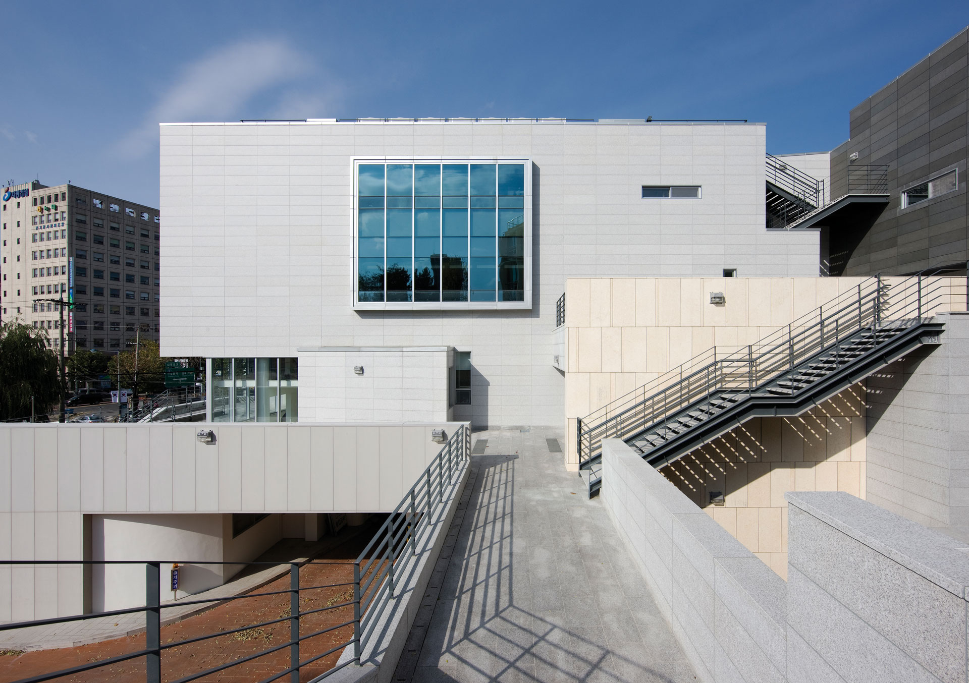 2층과 3층의 옥외 데크는 기념관 이용자를 위한 커뮤니티 공간일 뿐만 아니라 레벨차로 인해 단절된 기존 동선을 이어주는 핵심적인 역할을 한다. 또한 지역주민들의 편의를 위해서 주차 진입로를 직원용과 외부인용 동선으로 구분했으며 1층과 고층부의 출입구와 내부동선을 분리하였다.