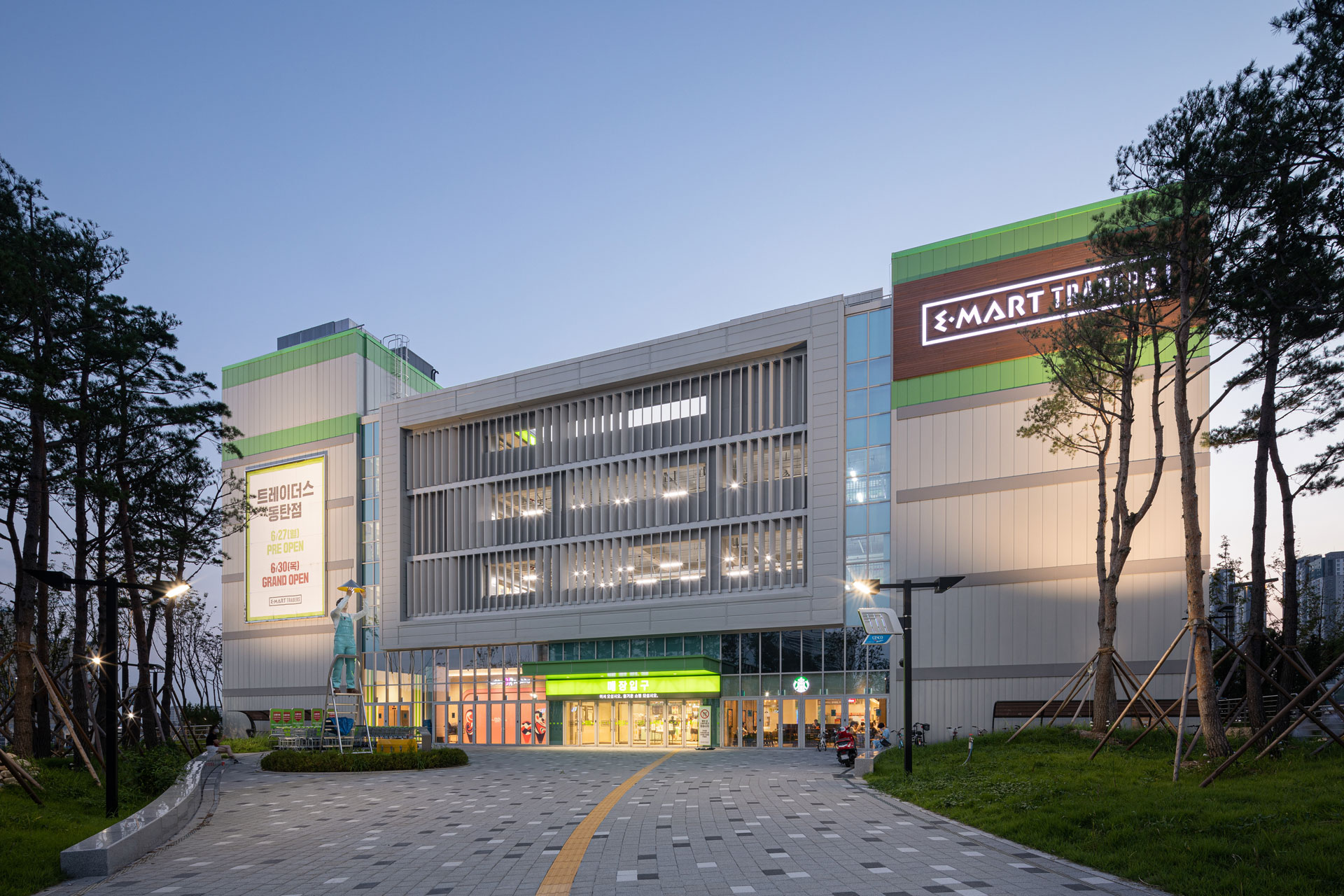 동탄2신도시 이마트는 동탄역 및 경부고속도로에 면해있는 광역 교통의 중심지에 위치해있으며, 상업 및 주거를 연결하는 입지인만큼 친근한 표정의 디자인을 목표로 진행했다.