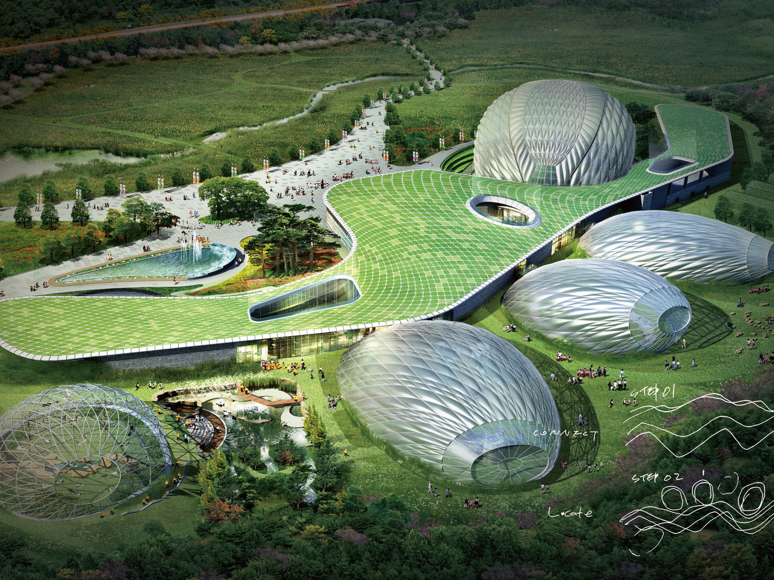 국립생태원은 생태계 전체를 체험하고 지구의 미래를 고민해 보는 곳으로 인간만이 지구의 주인이 아니라는 것을 깨닫게 되는 장소이다. 생태계의 순환 구조를 체험하고 교육받는 이곳 생태원에서, 우리는 인간에 의해 농지로 변해왔으나 아직 대자연 그대로 남아 있는 곳들이 있다는 점에 주목했다. 서천은 철새가 머무는 갯벌 그리고 바다와 강의 합류점이므로 다양한 생태계의 모습에서 자연 친화적인 상징물을 쉽게 찾을 수 있었다. 이에 대지를 활용함에 있어 기존의 식생을 살리는 것과 에너지를 고려한 형상을 찾아내는 태도에서부터 실마리를 찾았다.