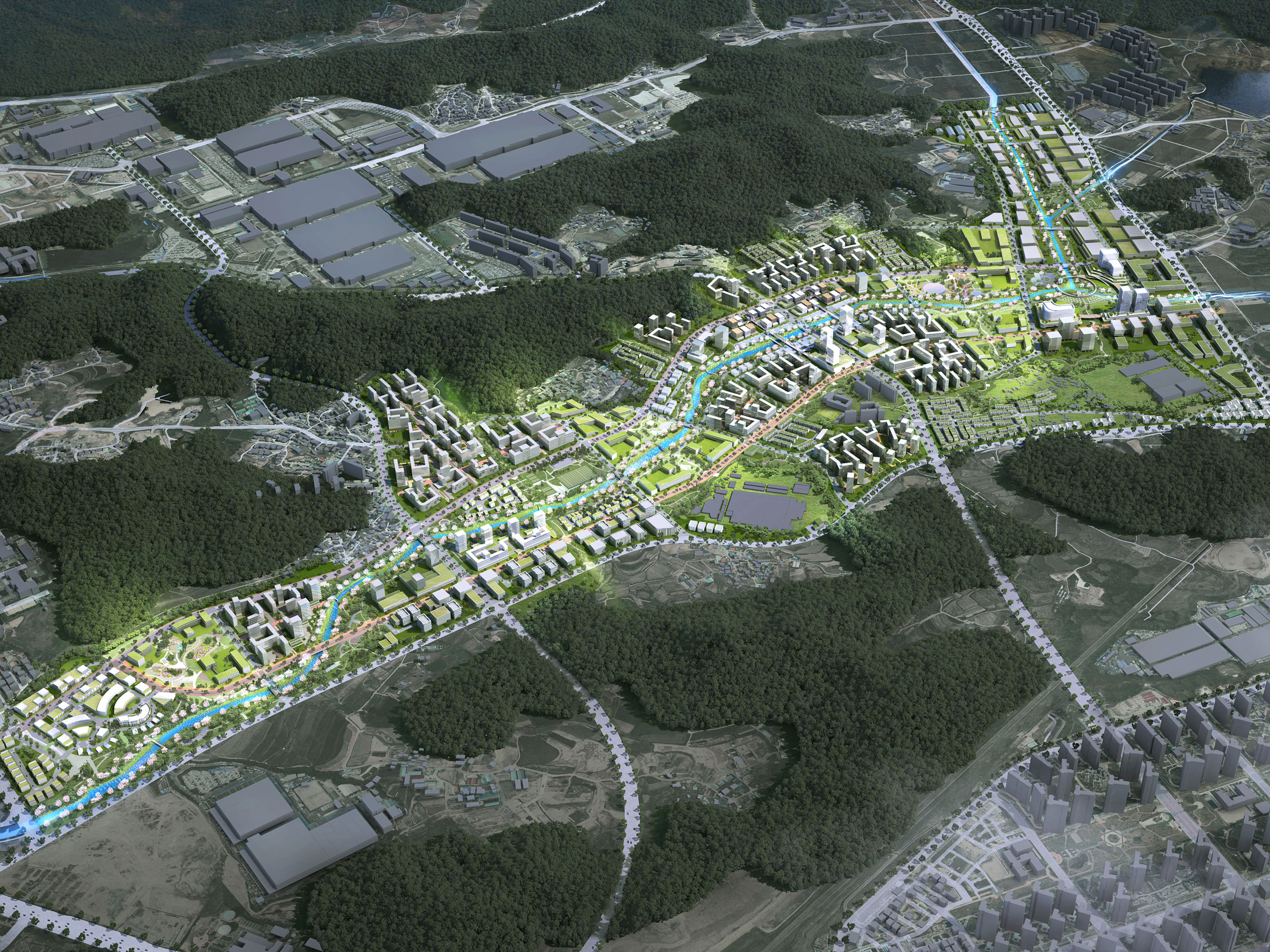 The Asan-Tangjeong 2 master plan is organized around three residential zones and four specialized districts, all interconnected through a “public link” network. Each residential zone features a community base platform that integrates education, culture, parks, and public facilities. The specialized districts — featuring MICE (meetings, incentives, conferences and exhibitions), commercial complex, lifestyle complex, and cultural complex — are designed to form a self-sufficient city supported by abundant living infrastructure. Based on the richness of the surrounding natural environment, the plan establishes parks and greens around a green axis connecting to nearby landscapes and around the Maegok Stream running through the site. Asan-Tangjeong 2 New Town will evolve into a city that grows upon its robust industrial, cultural, and ecological foundations.
