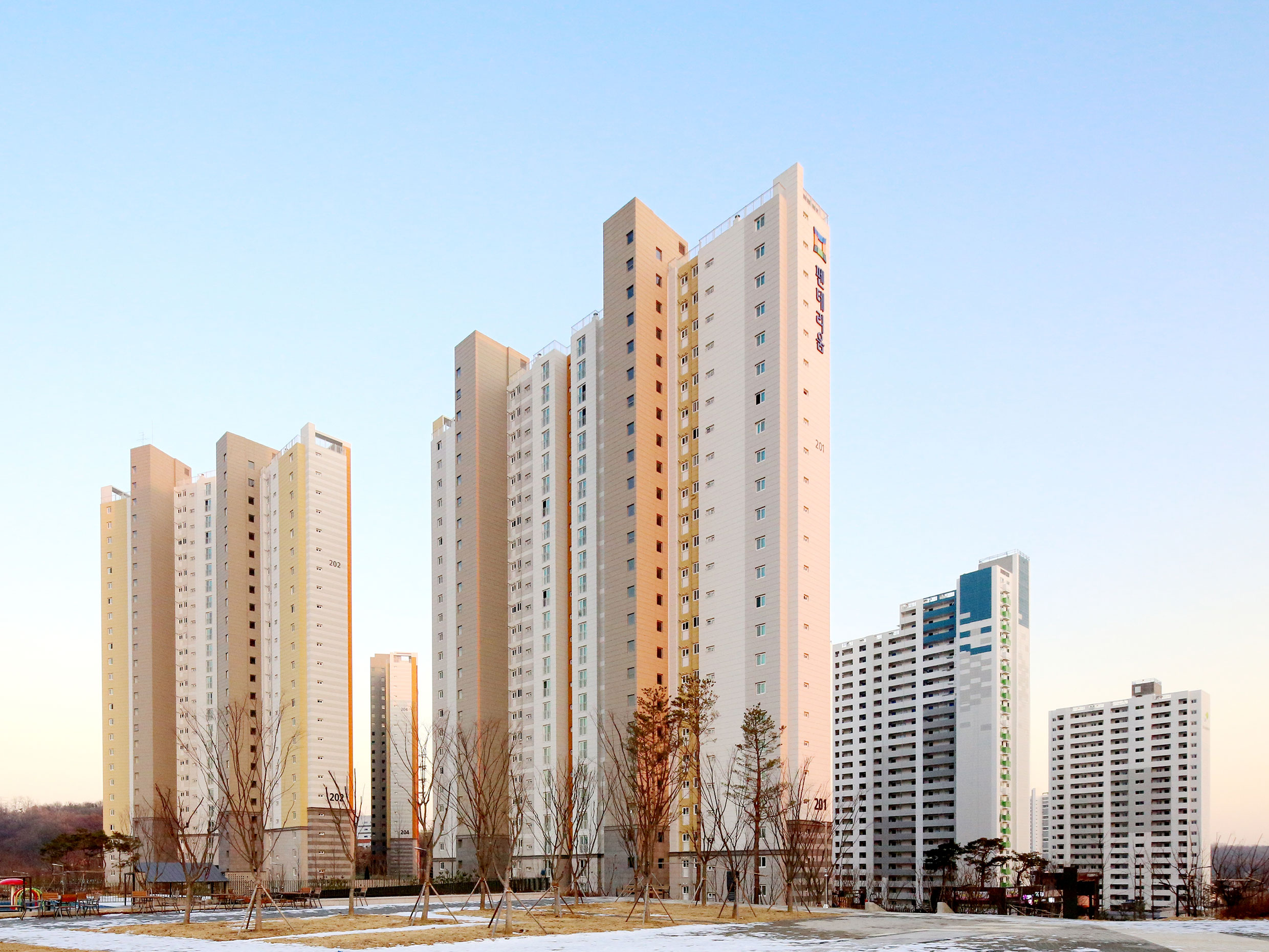 The Gunpo-Songjeong District holds high potential thanks to its proximity to the Yeongdong Expressway, National Route 47, the Gwangmyeong–Suwon Expressway, and Subway Line 4. The site is located along a main road within the Songjeong District. The layout strengthens connectivity with the adjacent B-1 block while securing a view axis between the residential area to the south and the neighborhood park to the north. With the number of buildings minimized and based on an efficient slab-type plan oriented primarily to the southeast, the building masses are staggered to ensure openness on three sides. Each unit features a south-facing, four-bay layout to enhance privacy and views.