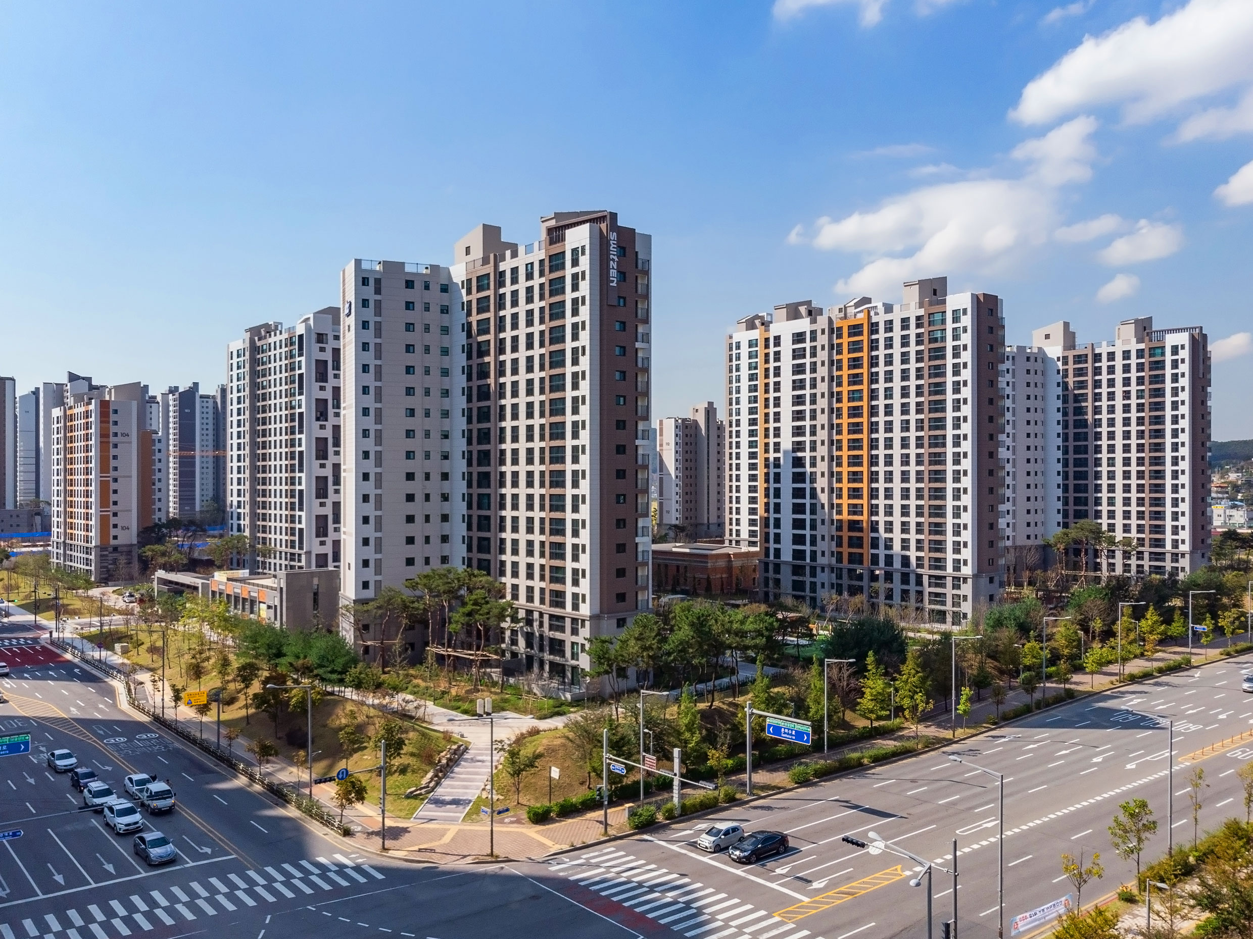 The Block A35 of the Yeongjong Sky City housing site in Jung-gu, Incheon, is a development that had been suspended following the 2009 global financial crisis. Junglim Architecture resumed the project in 2016 after being commissioned to carry out the revised business plan approval service. Located at the entrance to Yeongjong Sky City just beyond the Geumsan Interchange on the Airport Expressway, the site stands to benefit from the planned opening of the Third Connecting Bridge linking Cheongna International City and Yeongjong Island, which is expected to enhance transportation accessibility.
