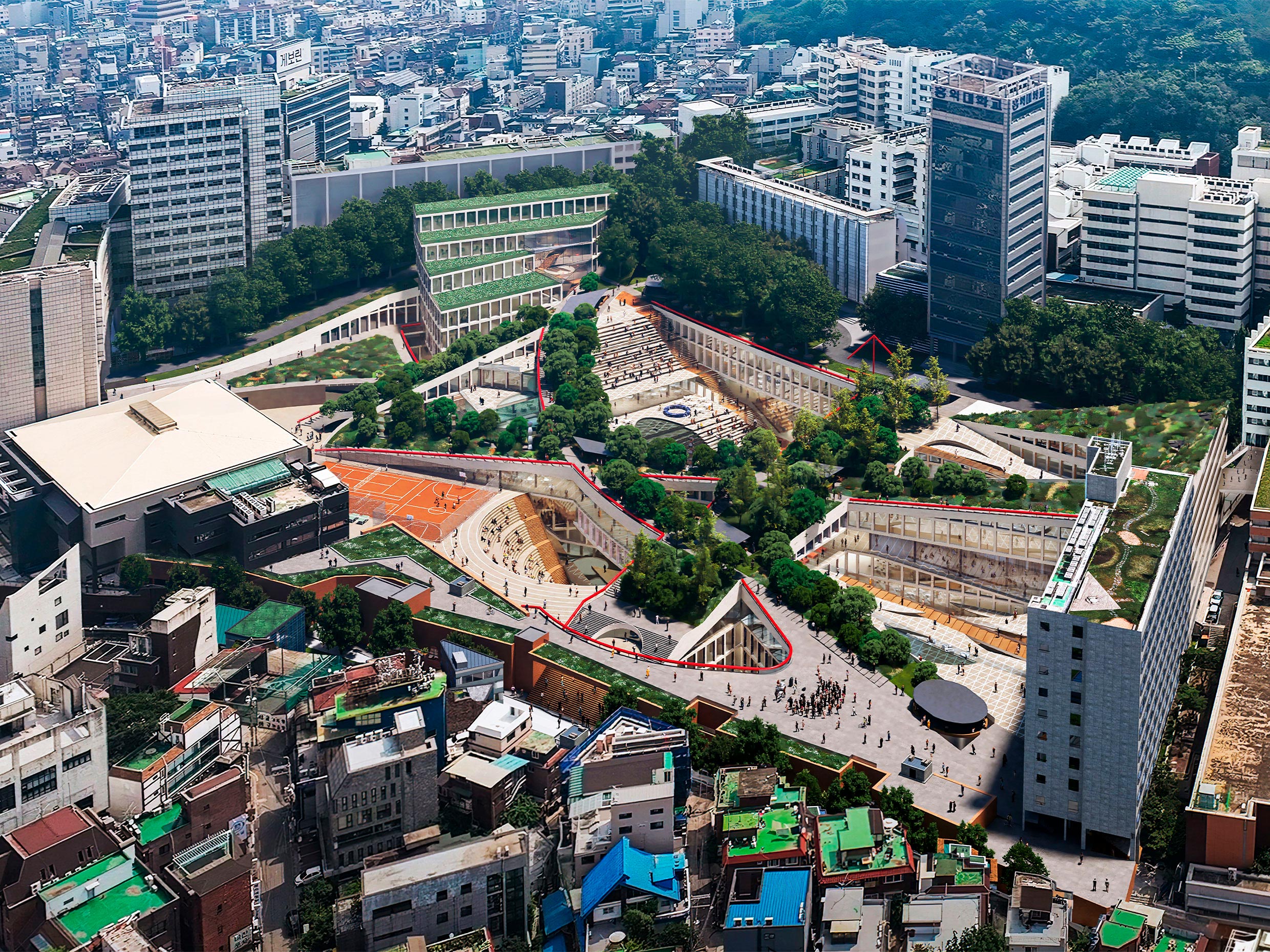 The Hongik University Innovation Growth Campus Development Project is the first large-scale master plan established since the university’s founding, aiming to create new space equivalent to half of the current campus area. To overcome the spatial limitations of the Seoul campus with more than 30% of its buildings aging, built over 50 years ago, and saturated with limited possibility for additional facilities due to floor area ratio restrictions, the university designated an Innovation Growth Zone within the campus and launched the so-called “New Hongik” project. With a planned underground campus floor area of 100,000 square meters, the project is the largest of its kind in South Korea, aiming to create a campus town where the city, architecture, and nature harmoniously interact through the unique “Hongdae culture.”