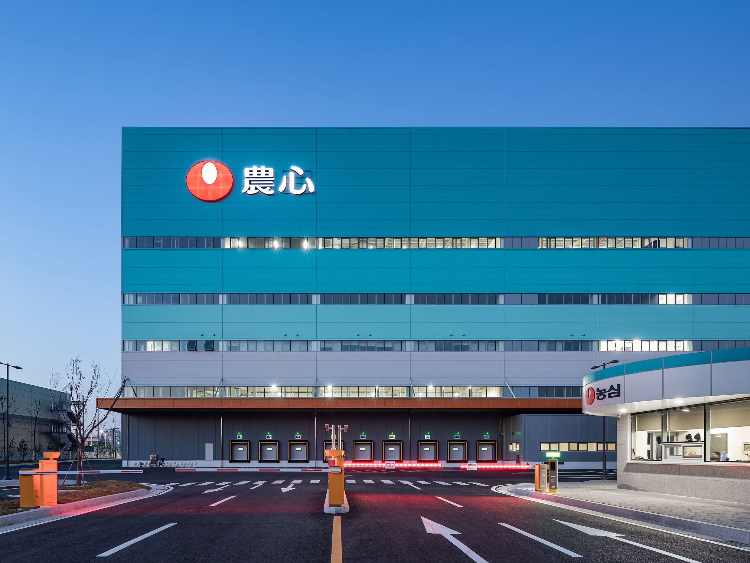 The Nongshim Integrated Distribution Center Incheon is planned as a forward operating base for Nongshim Group’s global export and import operations and serves as a regional logistics hub in the western metropolitan area centered in Incheon. It functions as an independent operation center for bonded goods such as Baeksansu water imported from China. The design prioritizes circulations and layout considering automation, optimization, systemization, and flexibility. The building uses precast concrete (PC) with RPS at the lower levels and pre-engineered building (PEB) steel plate structures above, enabling efficient management of the construction cost and schedule. The blue-hued mass symbolizes the purity of Baeksansu, and the two-tone horizontal facade follows Nongshim’s logistics design characteristics.
