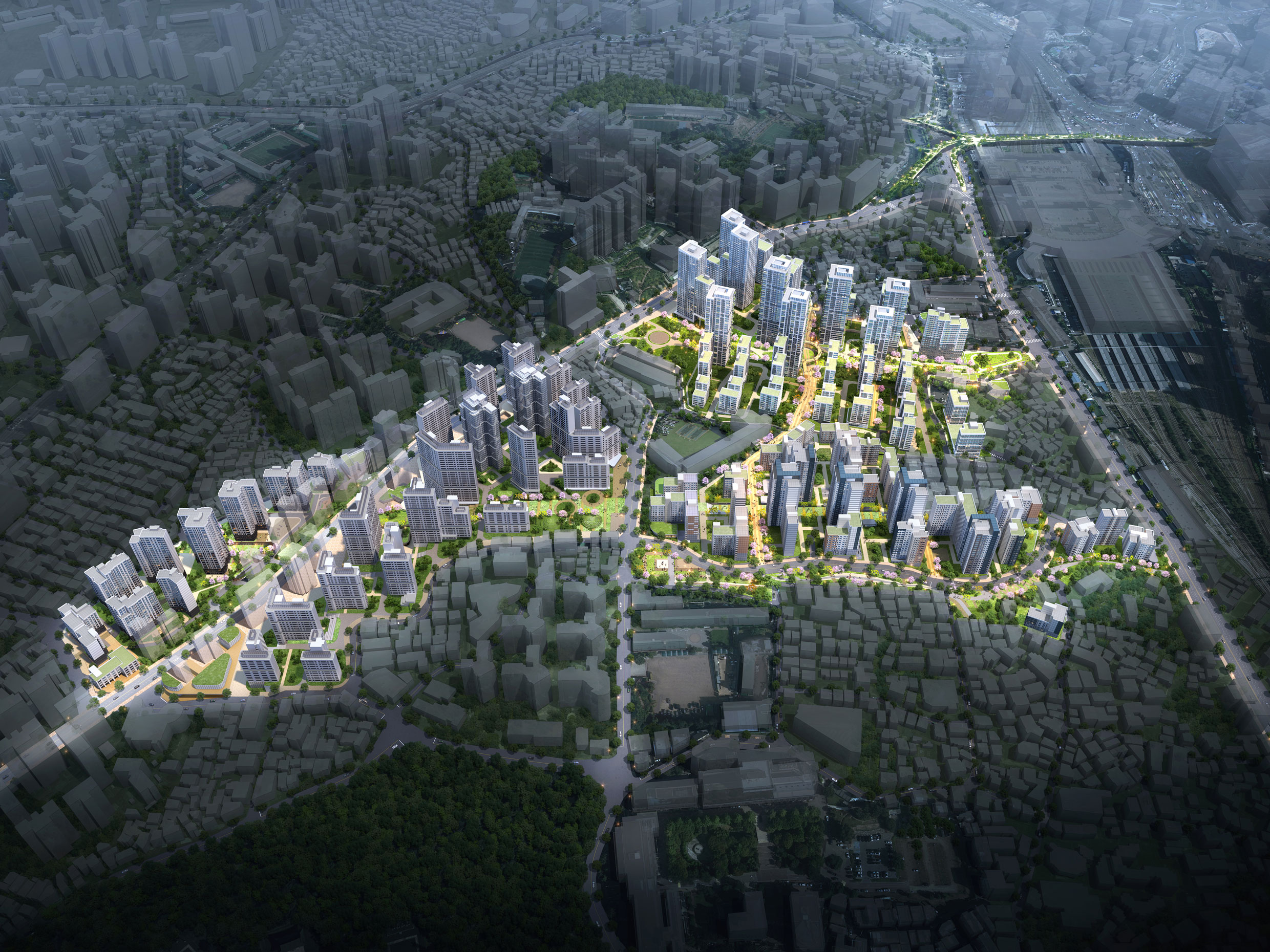 The Seoul Metropolitan Government’s Rapid Integrated Planning initiative is a public support program designed to accelerate redevelopment and reconstruction projects. It sets guidelines that balance public interest with business feasibility during the private-sector-driven improvement planning phase, while streamlining project procedures and easing planning standards accordingly. The selected project site, encompassing the area around 33 Seogye-dong in Yongsan-gu, adjoins Seoul Station and the National Theater Company of Korea. It lies at the intersection of several administrative districts — including Cheongpa-dong and Malli-dong — forming a central residential area and dynamic district where housing, commercial, and office facilities coexist amid multiple ongoing development projects. Through this rapid integrated planning, the project aims to realize the site’s potential by overcoming existing challenges, transforming it into a renewed district that focuses on creative cityscape design based on local topography and secures public value through connections with nearby infrastructure. Key strategies include inserting linear green corridors and public walkways across the site, placing public facilities as anchor spaces, and applying residential zoning distinctions according to topographic elevation.