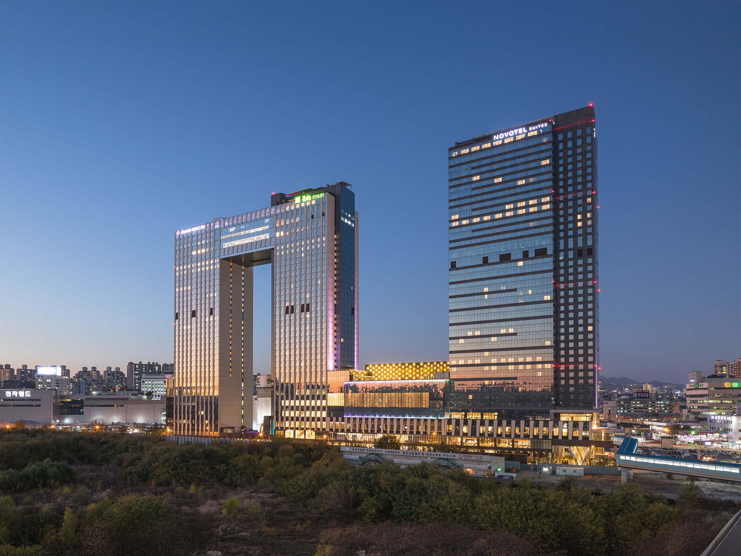 Seoul Dragon City is a project demonstrating that regional development and urban regeneration can revitalize backward areas, enhance urban competitiveness, and create value not only through investor profit but also by improving the quality of life for local residents and enhancing the urban environment. Although a pedestrian bridge once connected the site from Yongsan Station to the electronics market on the opposite side, its dilapidated state posed significant safety and aesthetic issues. To address these urban infrastructural issues, the design preserves the role of this bridge as a connecting passageway from Yongsan Station, improves hotel accessibility, and actively encourages linkage with surrounding facilities to ensure public benefit. Inside the building, a public walkway was created on the first floor to maintain spatial connectivity between the north and south, considering future connections to the planned Yongsan International Business District.