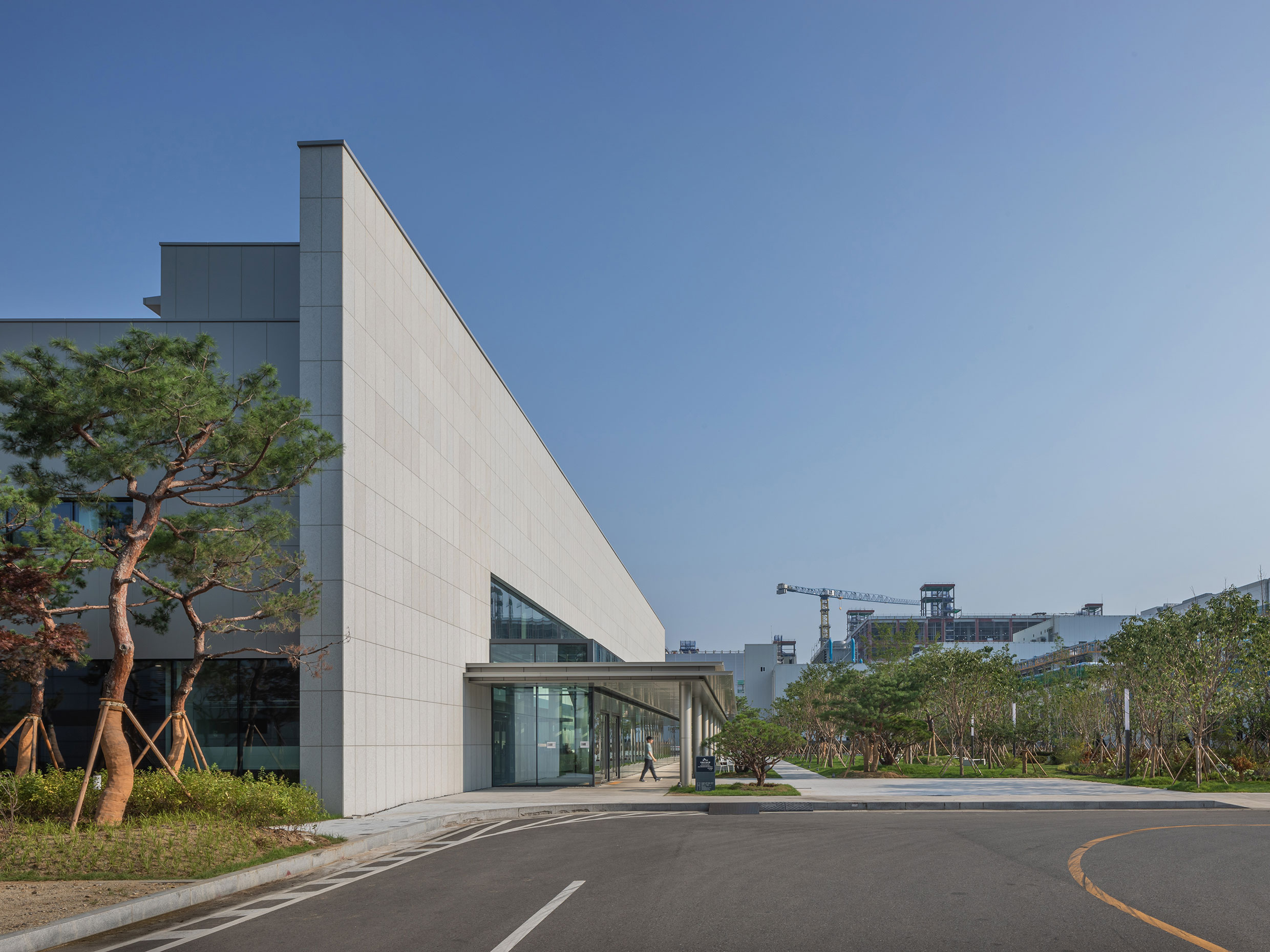 SK Siltron Welfare Center is a project that creatively repurposes the factory’s existing parking lot area into a new space dedicated to employee welfare. Located within the Gumi National Industrial Complex, the site is geographically flanked by the Nakdong River to the west and Bongduamsan Mountain to the east. However, the gridded urban structure, shaped by the goal-oriented nature of manufacturing and the characteristics of the industrial complex, creates an environment that offers little experience of nature. To foster a healthy working environment under these conditions, the welfare center was designed to be open both internally and externally. Although it is a single building, it houses a variety of programs for employees and connects the interior and exterior of the complex, aiming to improve work efficiency through enhanced welfare. The project reinterprets the given programs to create a horizontal space that encourages collaboration and communication, as a nature-friendly space that supports employees’ sufficient rest and recharging, thereby revitalizing the entire complex.