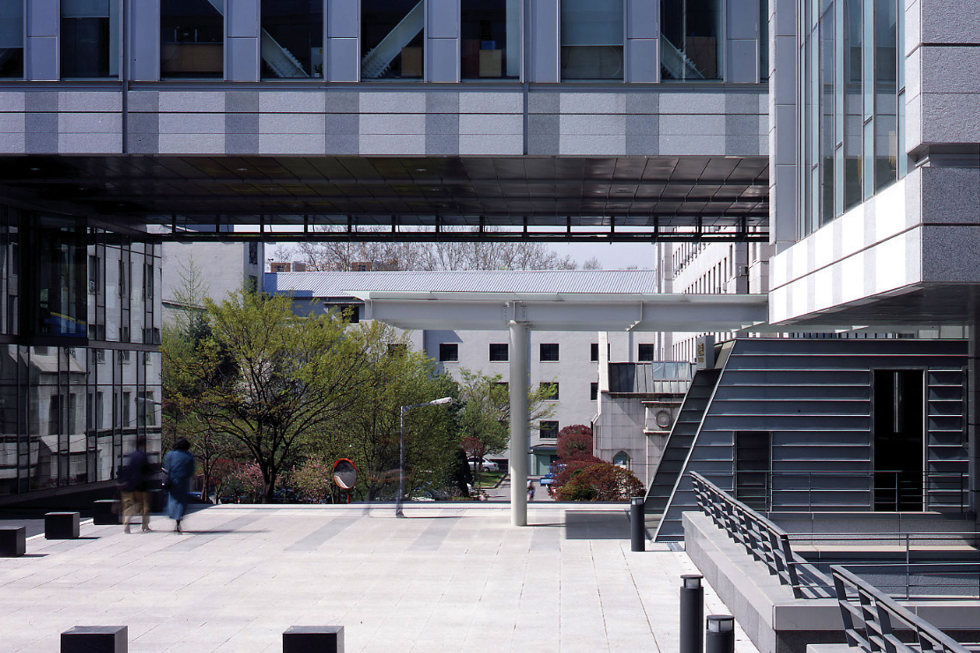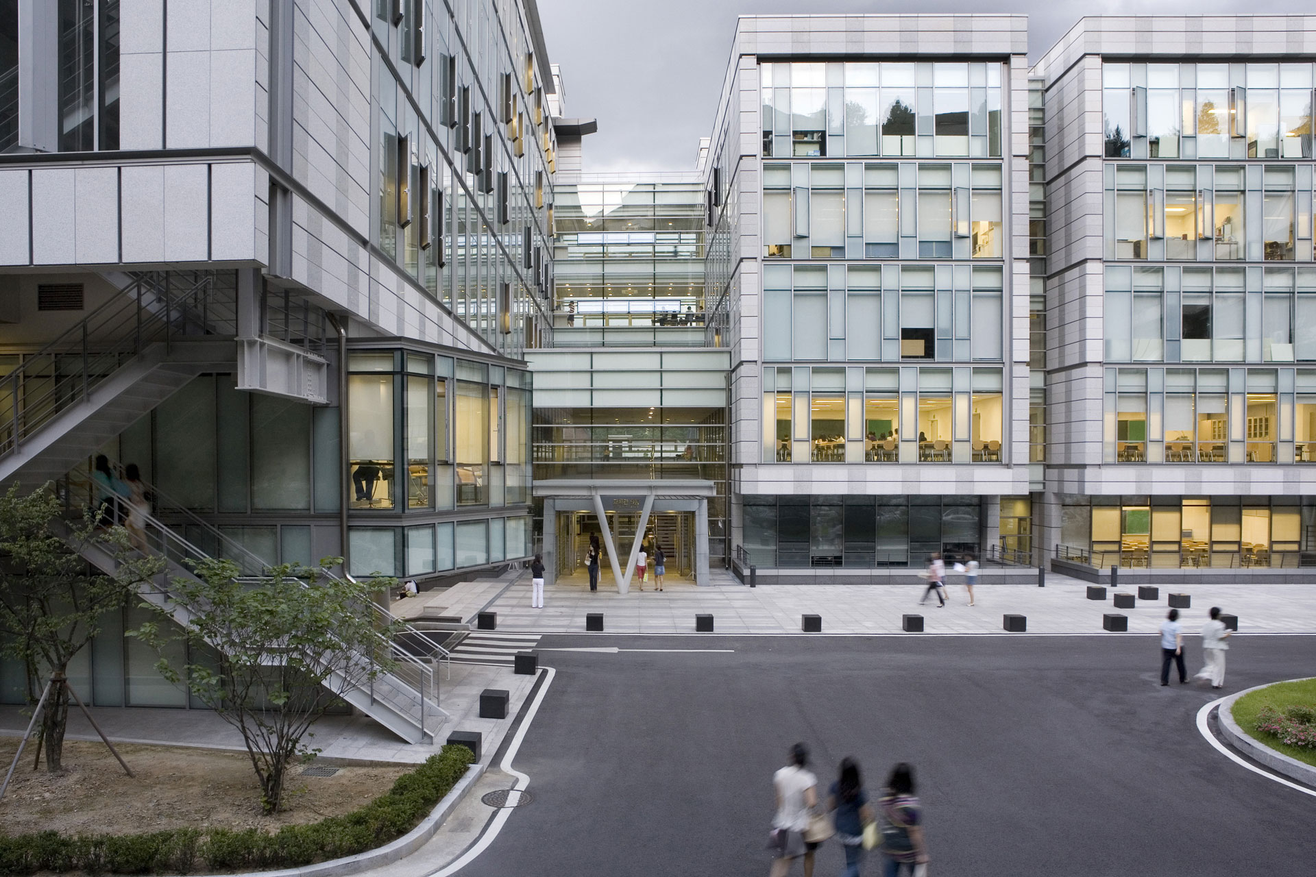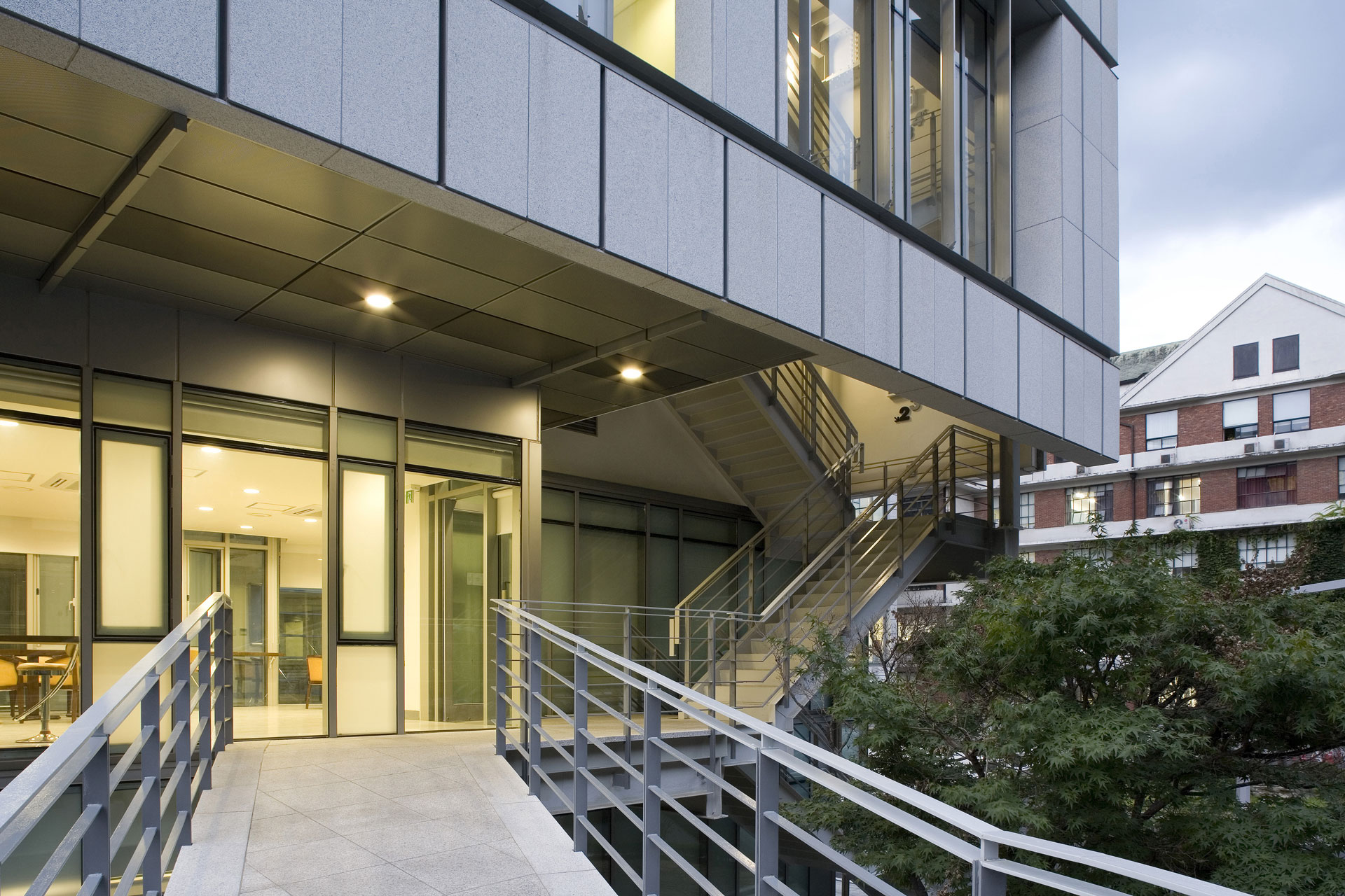 신축된 건물은 기존 구 교육관과 함께 ㄷ자 배치를 형성하는데, 이렇게 형성된 중정은 이용자들의 휴식과 행사 등의 다양한 기능을 수행하는 동시에 소음을 일정 수준 차단하고 서비스용 외에는 차량의 통행을 제한한다. 주 재료는 이화여대 기존 건물에 주로 사용되었던 화강석을 사용했다. 이 건축물에서는 화강석이 보다 특별하게 쓰이는 모습을 볼 수 있는데, 각 화강석 외장재가 알루미늄 프레임에 둘러싸여 콘크리트 벽면에 매달린다. 이렇게 조합된 알루미늄과 화강석은 빛의 변화에 따라 다양한 분위기와 빛깔을 연출해 낸다.