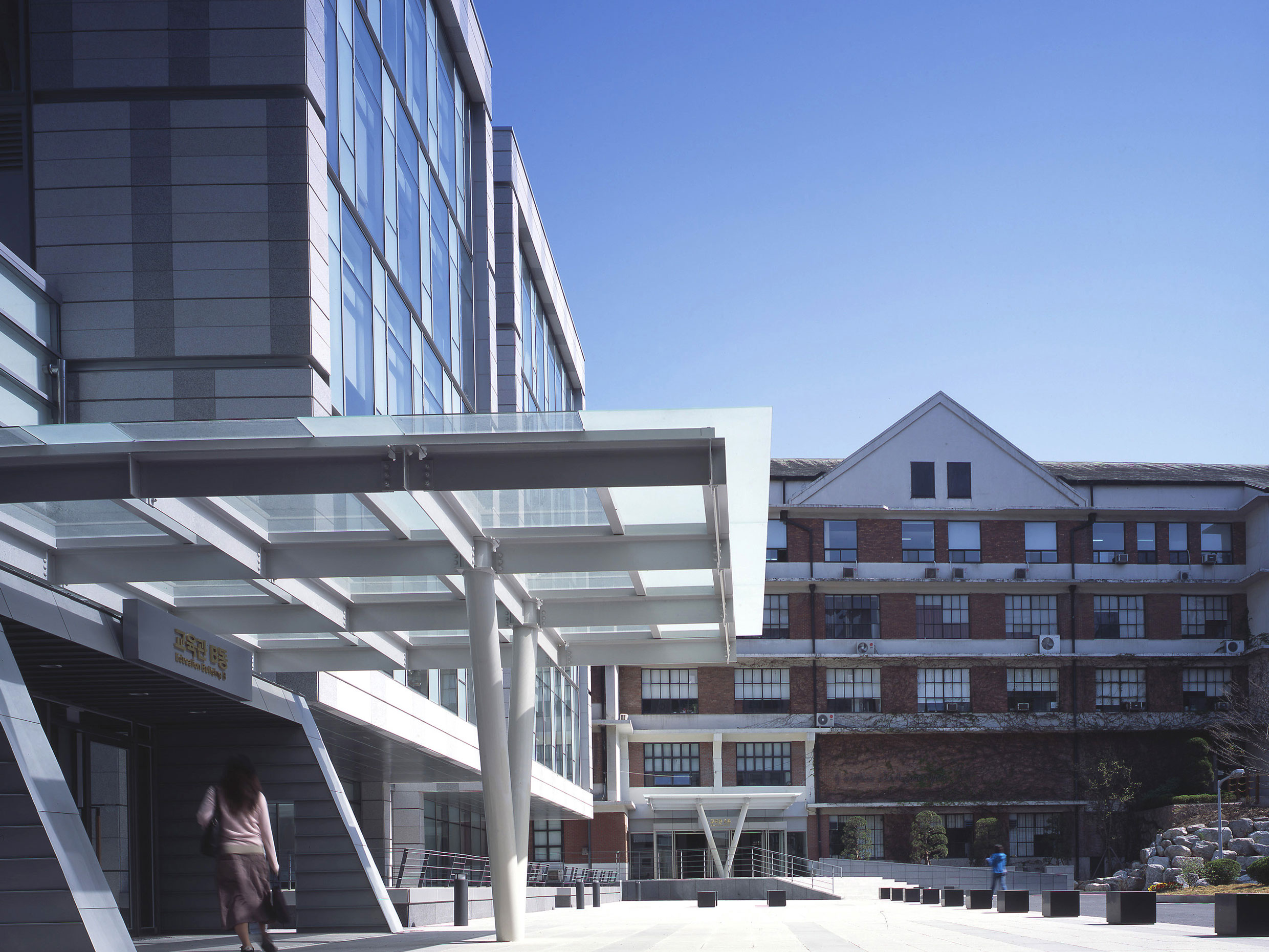 신축된 건물은 기존 구 교육관과 함께 ㄷ자 배치를 형성하는데, 이렇게 형성된 중정은 이용자들의 휴식과 행사 등의 다양한 기능을 수행하는 동시에 소음을 일정 수준 차단하고 서비스용 외에는 차량의 통행을 제한한다. 주 재료는 이화여대 기존 건물에 주로 사용되었던 화강석을 사용했다. 이 건축물에서는 화강석이 보다 특별하게 쓰이는 모습을 볼 수 있는데, 각 화강석 외장재가 알루미늄 프레임에 둘러싸여 콘크리트 벽면에 매달린다. 이렇게 조합된 알루미늄과 화강석은 빛의 변화에 따라 다양한 분위기와 빛깔을 연출해 낸다.