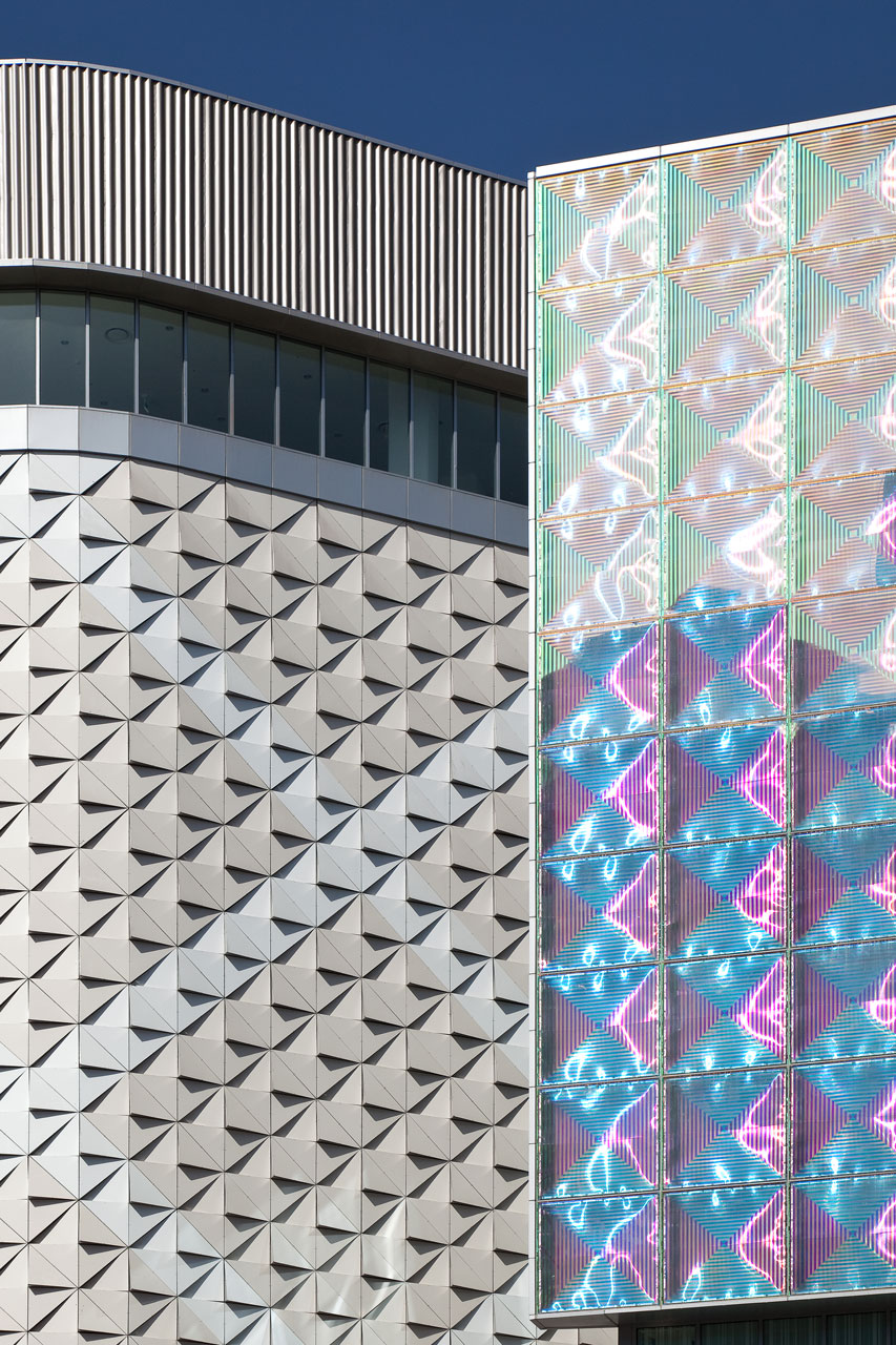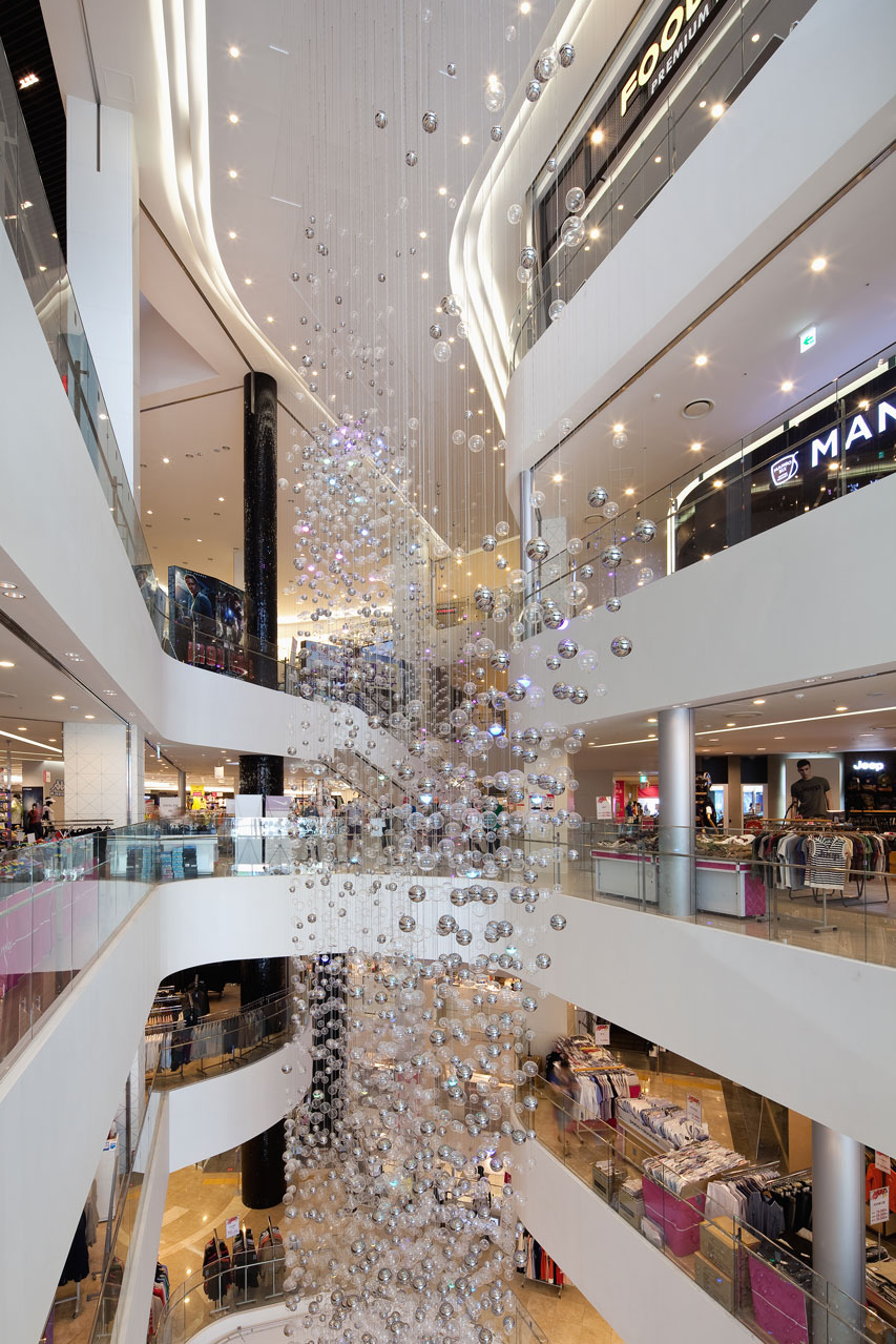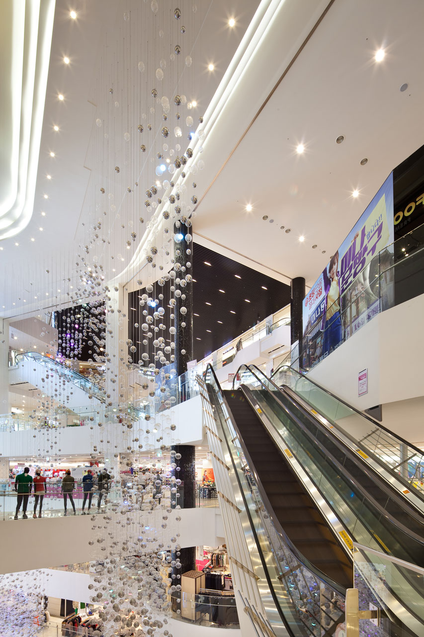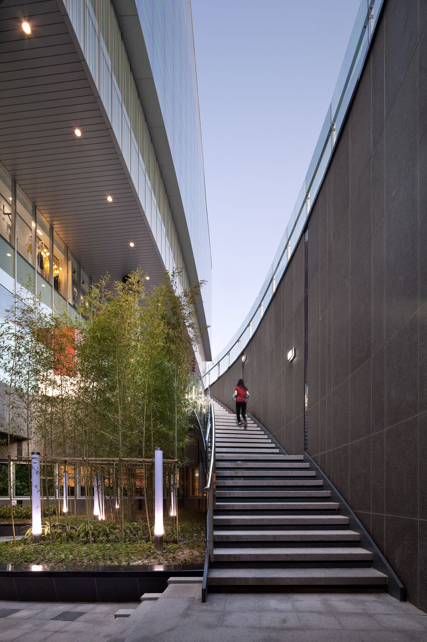 ‘하이힐’에는 대형 이벤트 홀을 중심으로 문화시설(Multiplex Cinema)과 전문 식음료 공간(F&B), 외부 휴게 공간이 연계된다. 그 위에 위치한 업무시설은 사람과 패션의 흐름을 부드럽게 끌어안는 곡면 디자인으로 주변 건물들의 경직된 이미지와 대비되는 열린 조망의 밝고 쾌적한 환경을 제공한다.