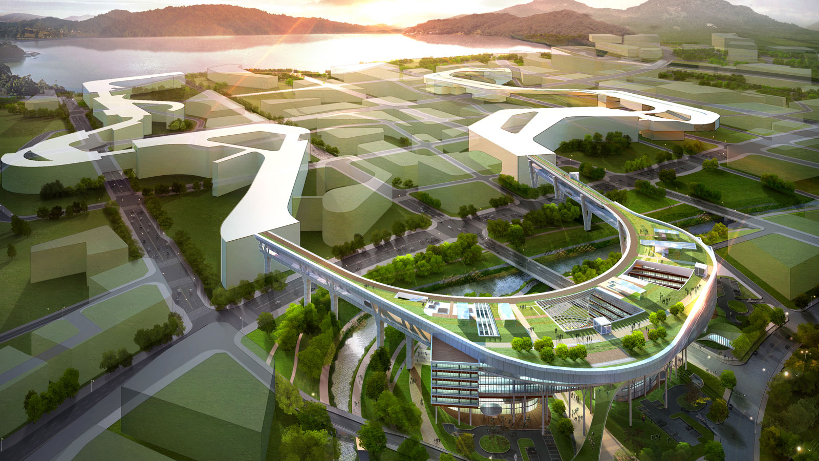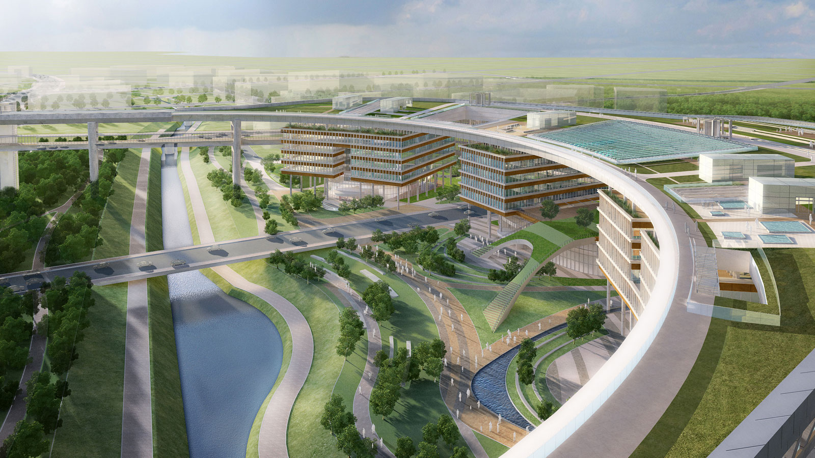 행정타운의 청사는 마스터플랜에 따라 필로티 구조와 브릿지를 통해 서로 연결되어 있다. 또한 지붕은 모두 하나의 지형으로 계획되어야 한다. 이러한 조건들을 모두 수용하면서 동시에 주변 자연을 연결할 수 있는 형태를 계획하였다. 남북으로 길게 위치한 대지의 조건을 극복하기 위해 모든 오피스를 남향으로 계획하였으며 저층부는 공공에게 열린 프로그램을 배치하였다. 또한 수변공원과 체육시설 그리고 녹지로 자연스럽게 이어질 수 있도록 계획하였다. 이는 청사의 경계가 명확히 있기보다는 주변의 환경과 자연스럽게 이어져 연속된 흐름 속에서 자리잡기를 원했기 때문이다.