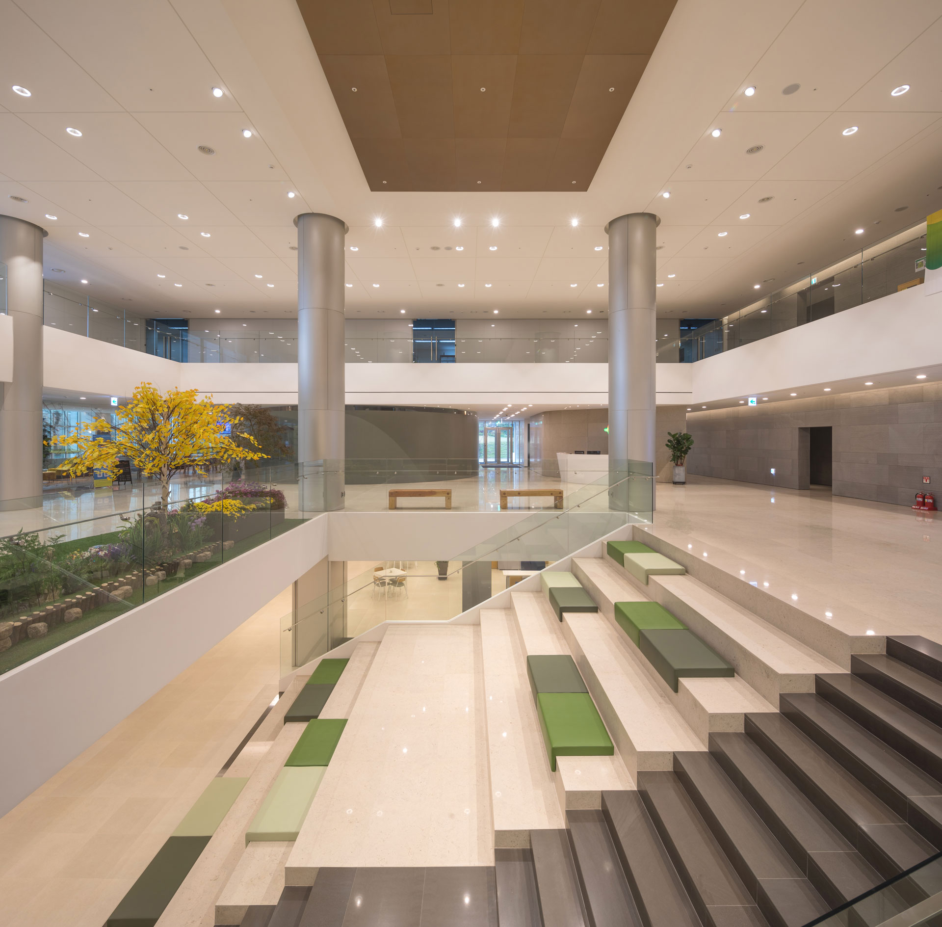 1967년 용인시 보정동에 설립된 (주)녹십자홀딩스의 본사는 R&D센터, GC랩, 연구소, 업무 공간으로 이루어져 있다.