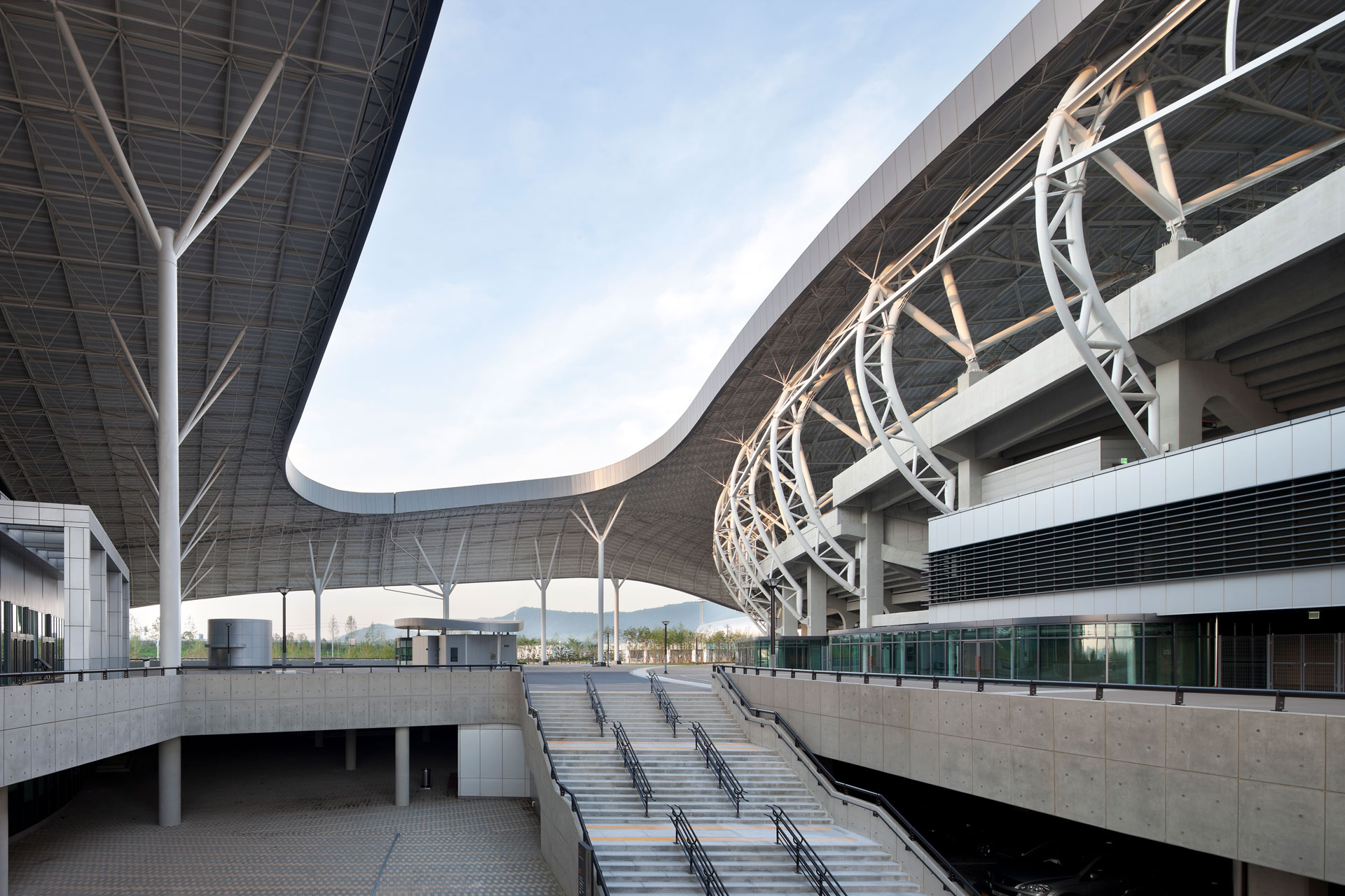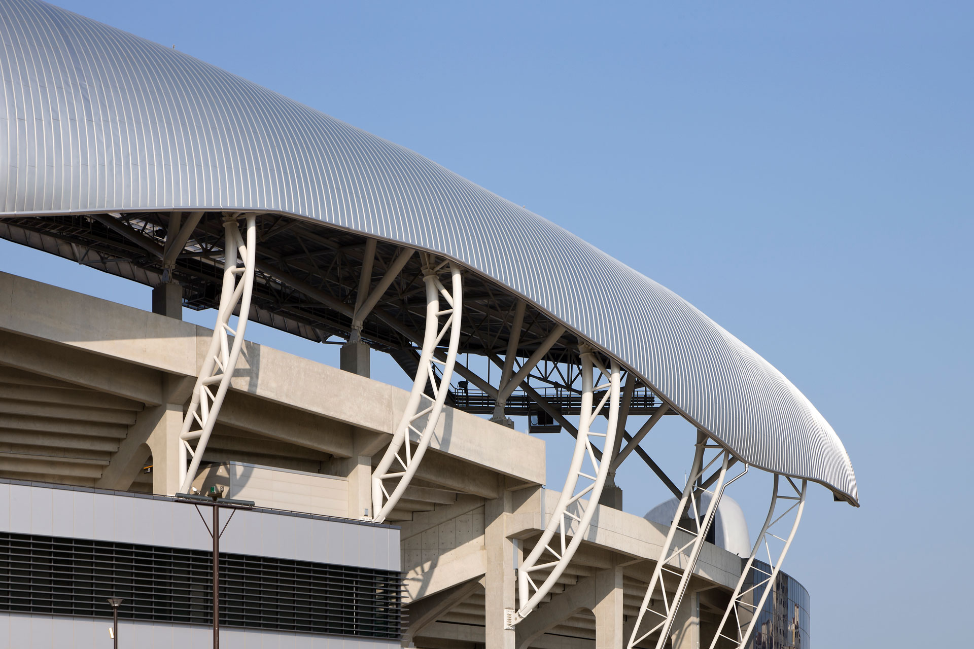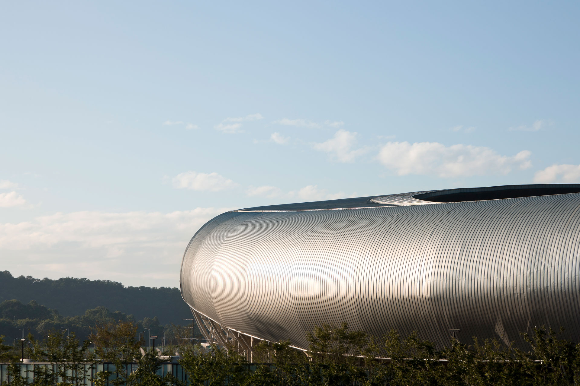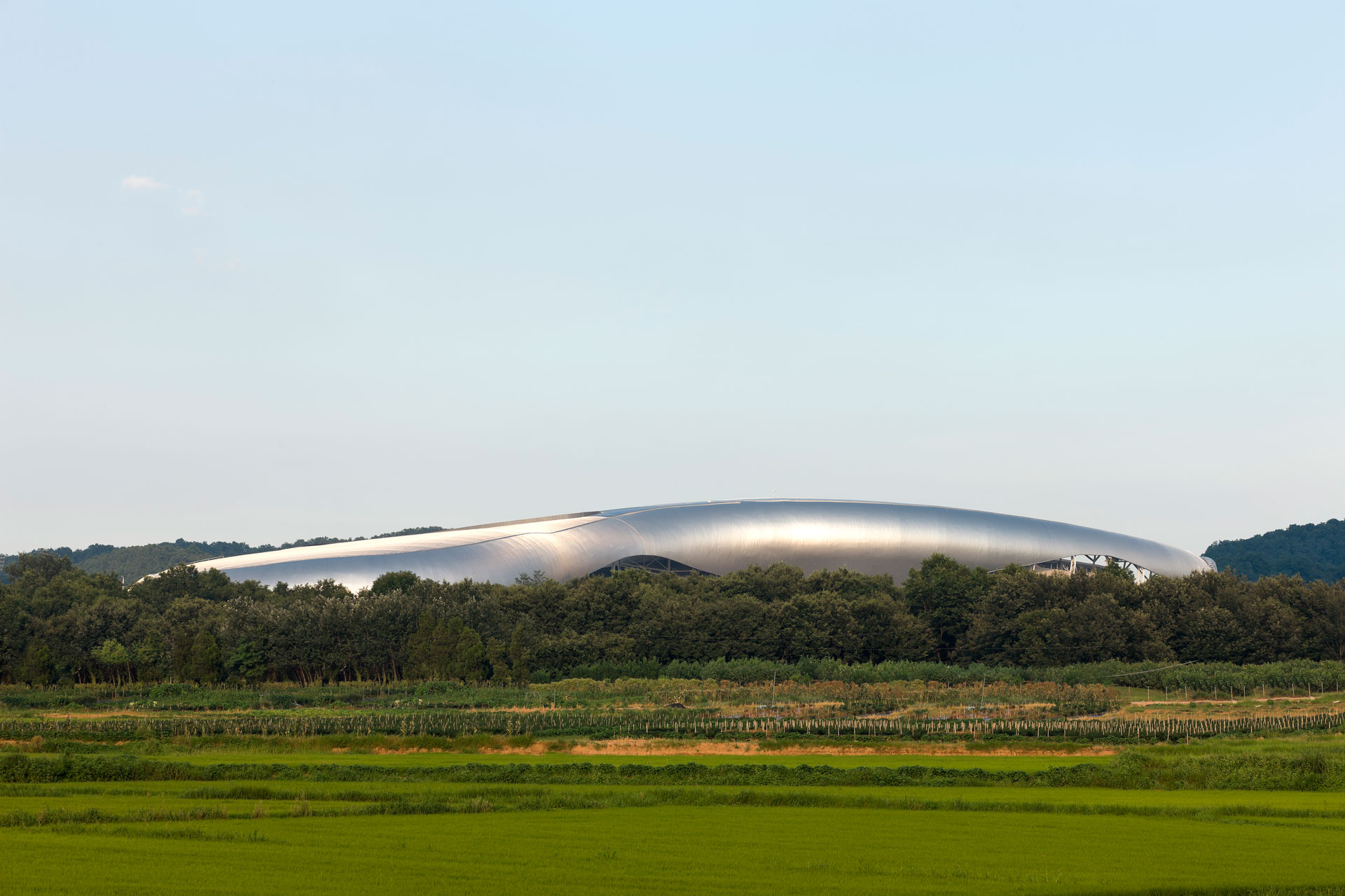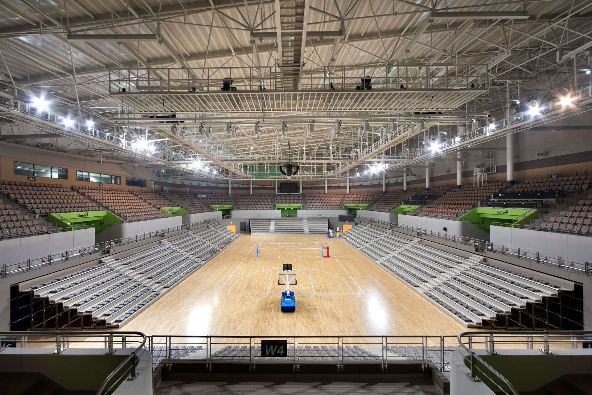 전국체전을 비롯해 각종 국제경기를 무리 없이 개최할 수 있는 경기타운의 기본 기능에 충실하기 위해 주 경기장의 관람석 배치는 선호도가 높은 동서측 스탠드에 60% 이상을 집중 배치했으며, 대지 전체가 하나의 큰 자연공원을 이루는 공원 속의 경기장으로 계획했다. 주경기장과 실내체육관은 지붕으로 연결되면서 두 건물이 단일 매스가 되는데, 둘은 각기 다른 높이와 방향성을 가지기 때문에 연결 지붕은 비정형의 형상이 된다. 평면과 단면의 합리적 규칙을 유지하면서 자연스러운 지붕 형태를 만들기 위해 3D 커브 디자인으로 여러 연결 방식을 검토했다.