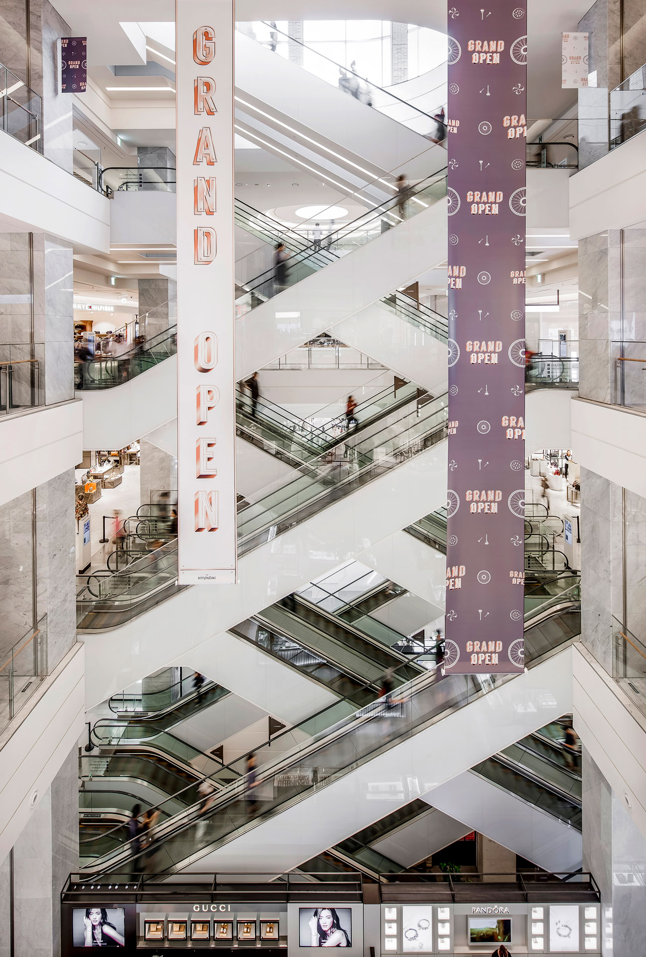 시설별 차별된 공간 디자인과 현대백화점의 웅장하고 당당함을 모티브로 도시의 상징적인 게이트를 제안하였다.