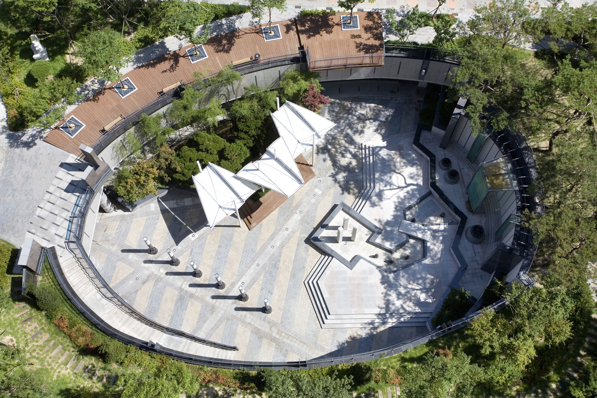 지형 – 대지북단과 남단의 3m 레벨차를 이용하여 굴토량을 최소화할 수 있는 레벨계획이 이루어져 그로 인한 선큰 및 부대시설의 개방감을 가지는 층고 확보가 가능해졌다.