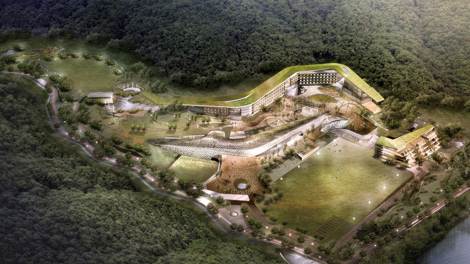 대지는 계곡을 메워 평지를 이룬 지형으로 좌우에 높은 산세와 전면에 호수를 바라보는 천혜의 경관을 지닌 곳이다. 이러한 자연지형의 흐름에 순응하여 I-Valley를 계획하였다. 대지 후면 부대산의 산자락 형세를 받아들여 숙박동의 부드럽게 굽이치는 형태를 만들었고, 충주호에 길게 면한 파노라마식 배치로 수려한 충주호의 경관을 최대한 확보하였다. 교육동과 숙박동 사이에 계곡형상의 I-Valley를 계획하고 Green mall 개념을 도입하여 시설 간 동선의 단축과 함께 자연과 어우러진 보행전용 공간을 제안하였다. 지붕을 친환경 데크로 제안하여 주변 환경과 조화됨과 동시에, 연속적 흐름을 갖는 공간과 동선을 제안하여 기존의 연수원과 차별되는 디자인과 드라마틱한 공간연출을 선보이며 프로그램간의 유기적인 연결을 통해 미래 지향적이면서도 주변 환경과 어우러진 연수원을 계획하고자 하였다.