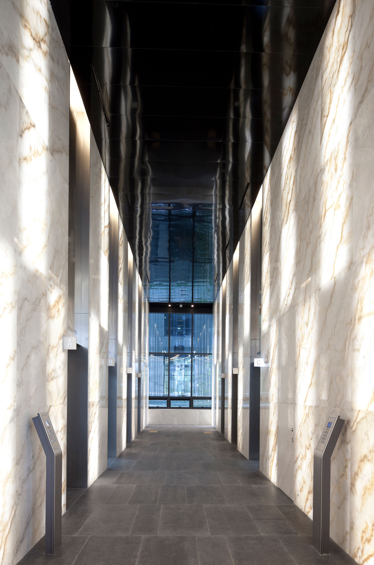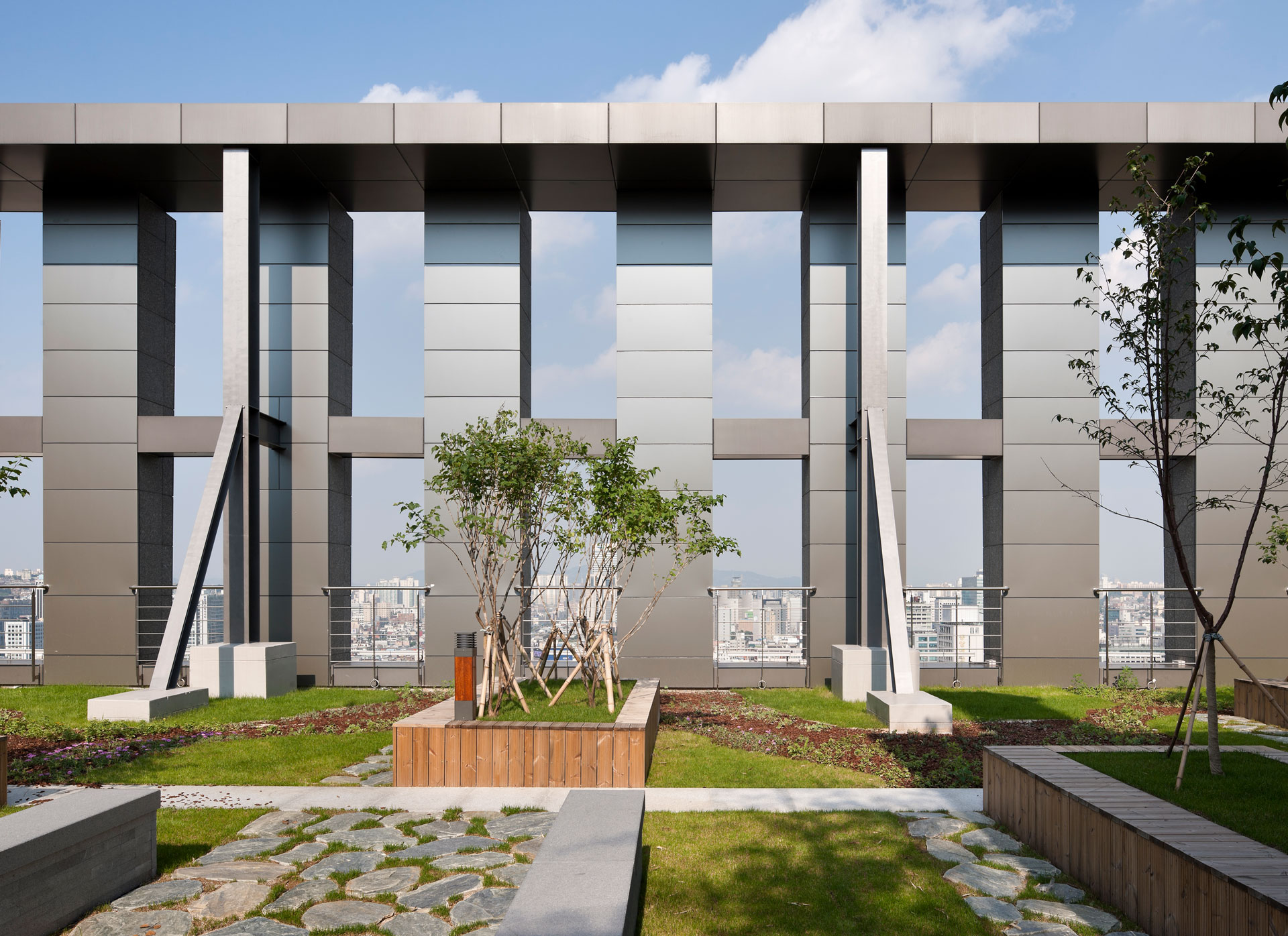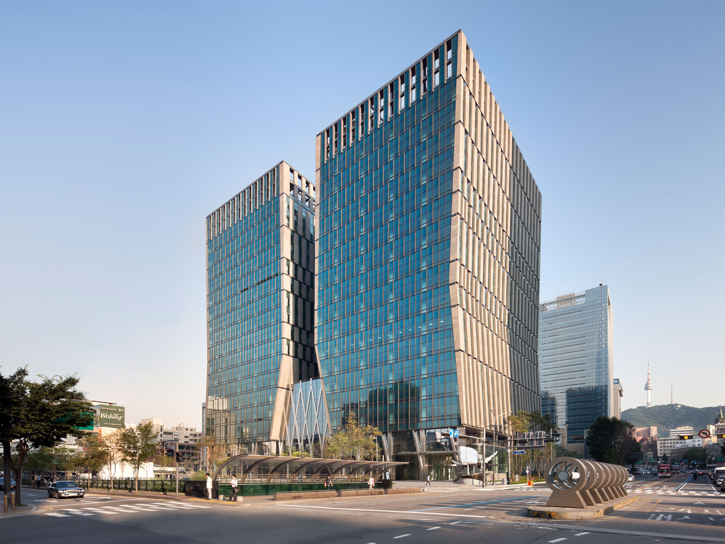 남산과 인왕산을 연결하는 광역적인 도시상황을 감안해 두 개의 타워 사이가 열리는 문의 형상을 따랐고, 동측과 서측의 입면을 석재로 마감해서 열손실을 줄이는 방안이 검토되었다.