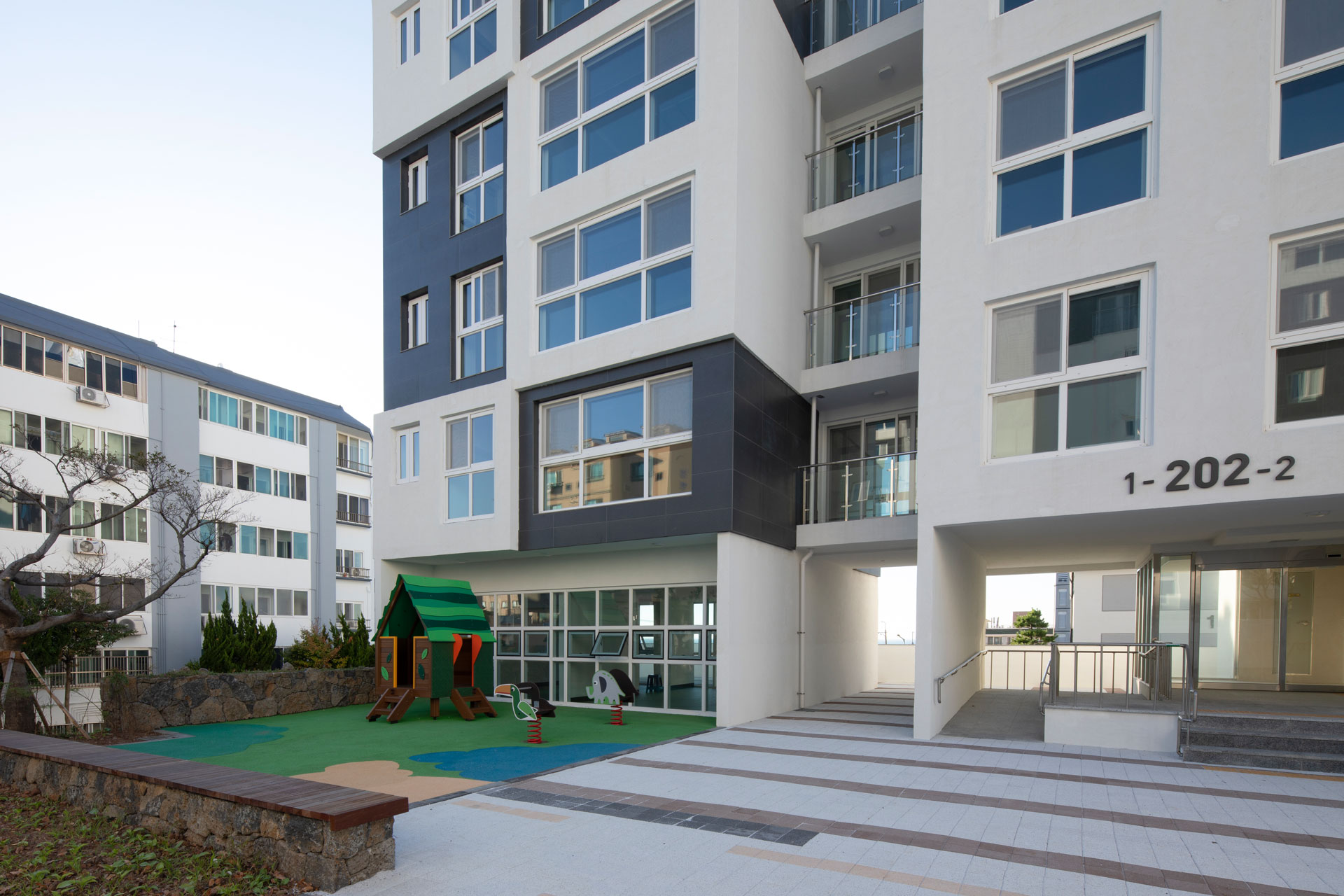 한국중부발전(KOMIPO, Korea Midland Power) 제주발전본부 사택아파트 제주행복마루는 직원의 일과 여가의 균형을 안정적인 주거와 재충전의 공간으로 구현하며, 지역 주민과 함께하는 제주발전본부의 유기적인 소통과 나눔을 통해 공기업으로서의 가치를 구현하고 실현하는 커뮤니티 공간으로 거듭난다. 주거 공간에 도입한 에너지 효율 시스템과 친환경 공간의 제안은 ‘청정 제주’의 환경에 걸맞은 제주발전본부를 상징한다.