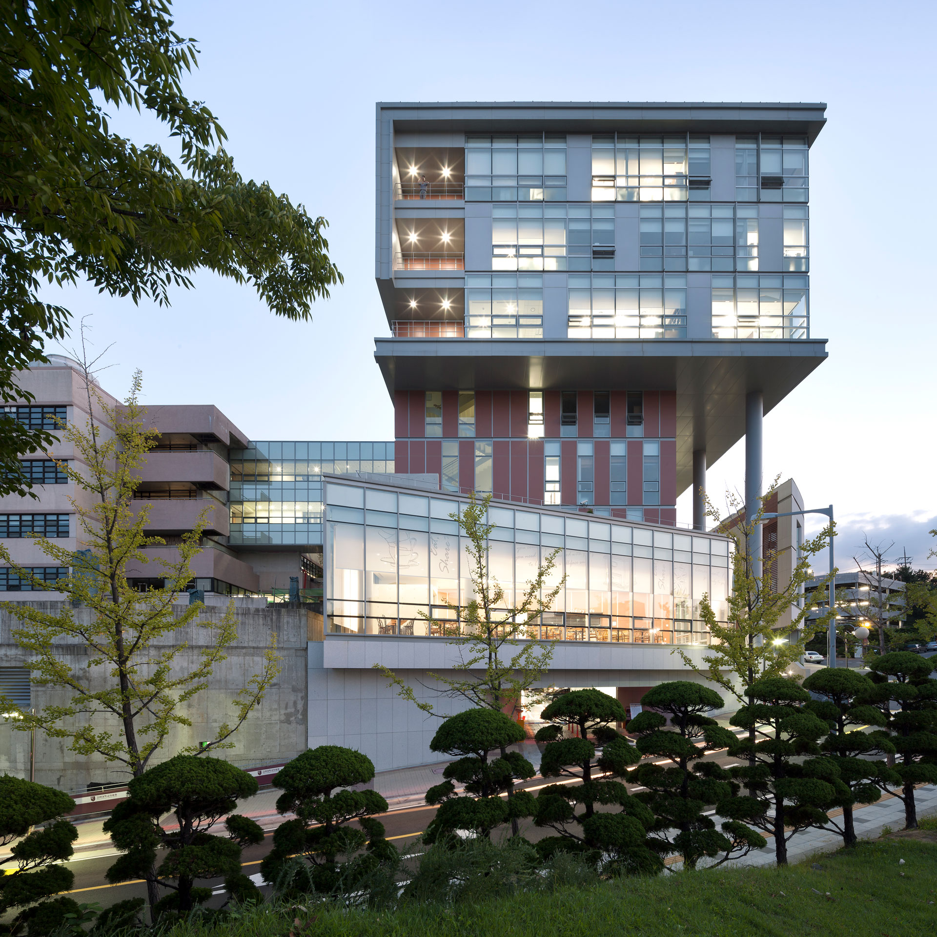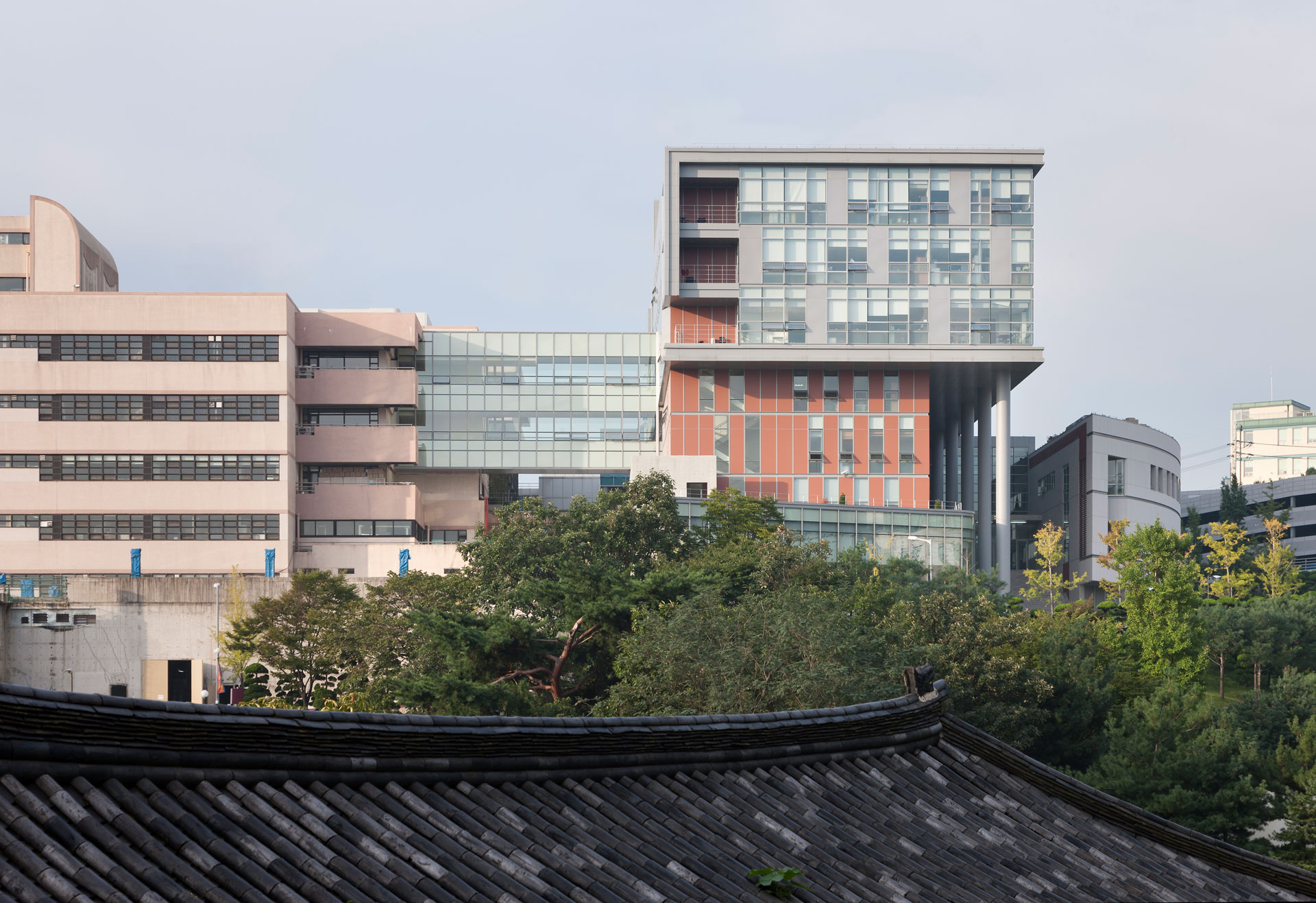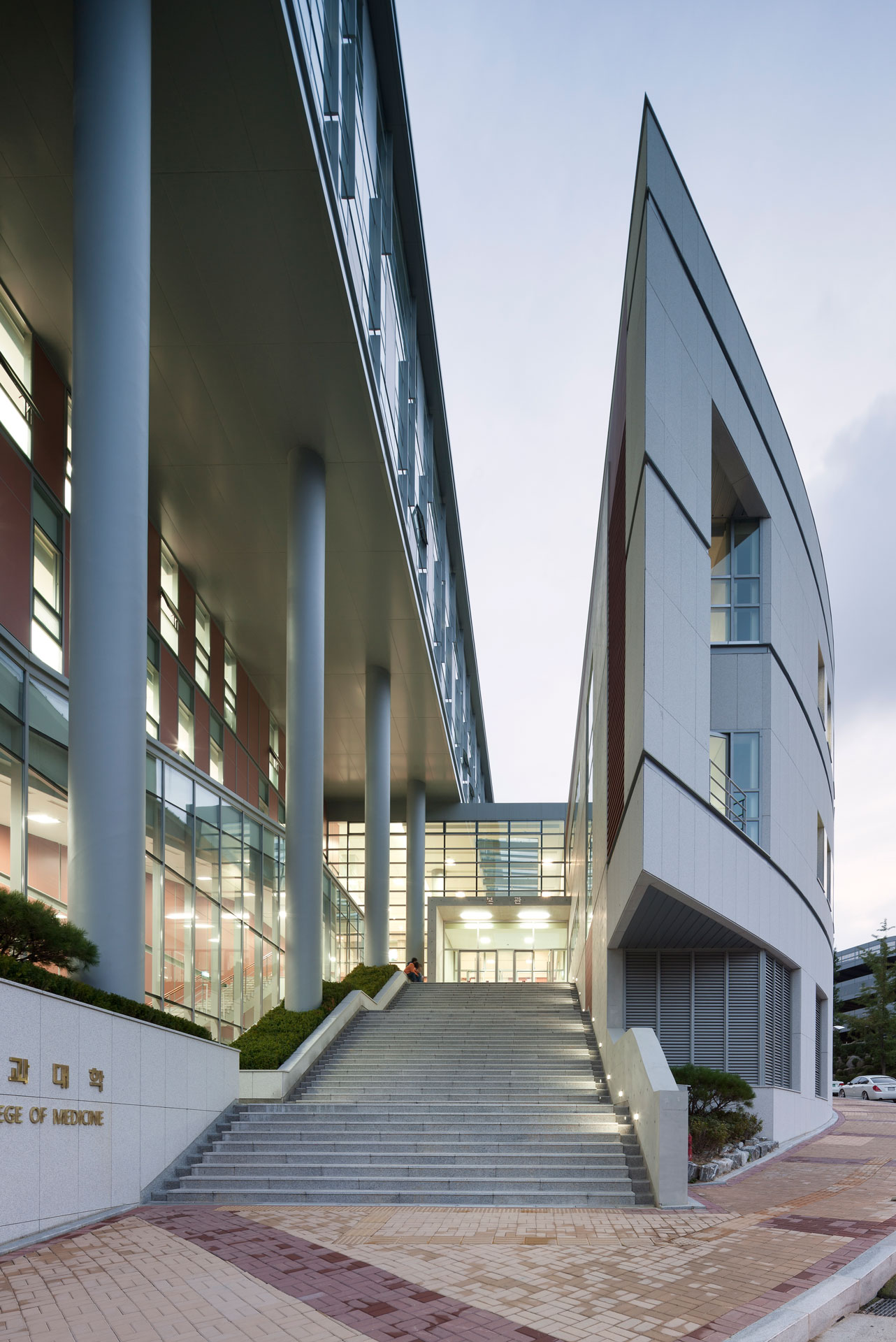 전체의과대학 건물 군 전체를 통합하고 연결하며, 향후 성장할 의과대학 마스터플랜의 중심에 위치해 새로운 코어로서 자리매김한다. 한정된 영역 안에 최대 점유를 위한, 즉 반원형의 대지 형태를 단단한 저층부에 그대로 반영하여 경사진 길의 흐름에 따른 시퀀스의 변화와 다양한 진입의 가능성이 연출된다. 기존 의과대학의 연결, 그리고 다양한 레벨에서의 진입은 본 건물이 갖는 새로운 대표성을 보여준다.
