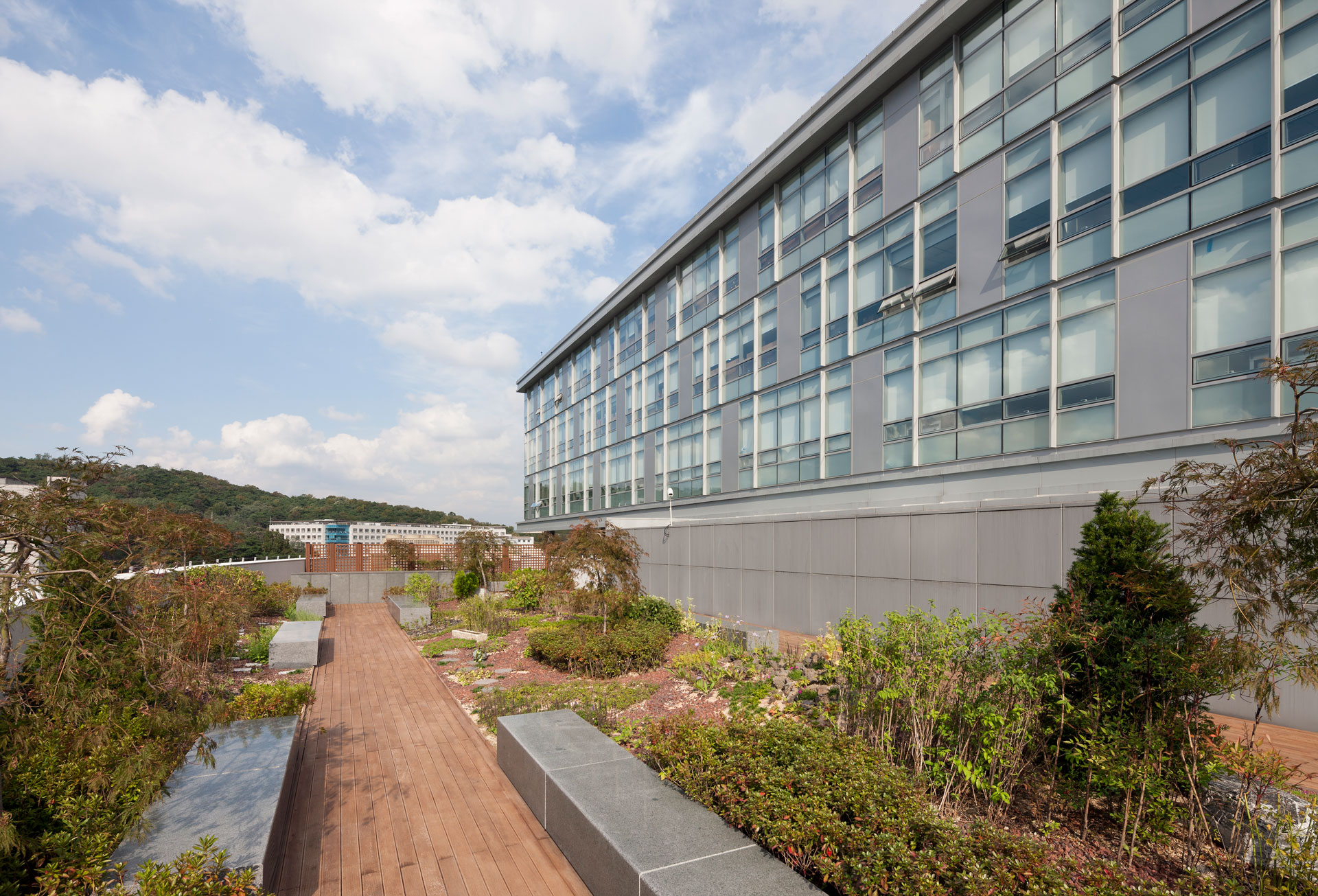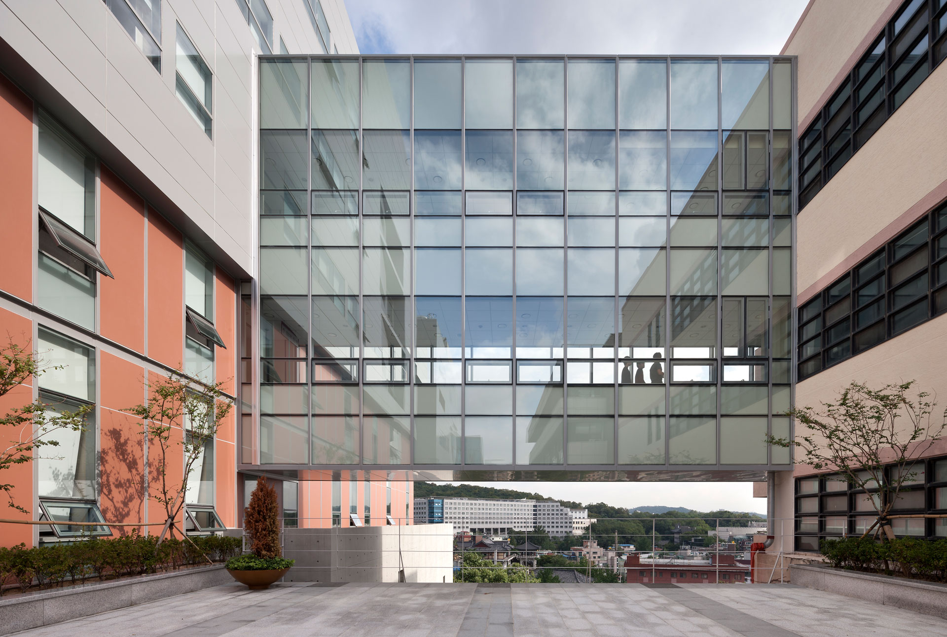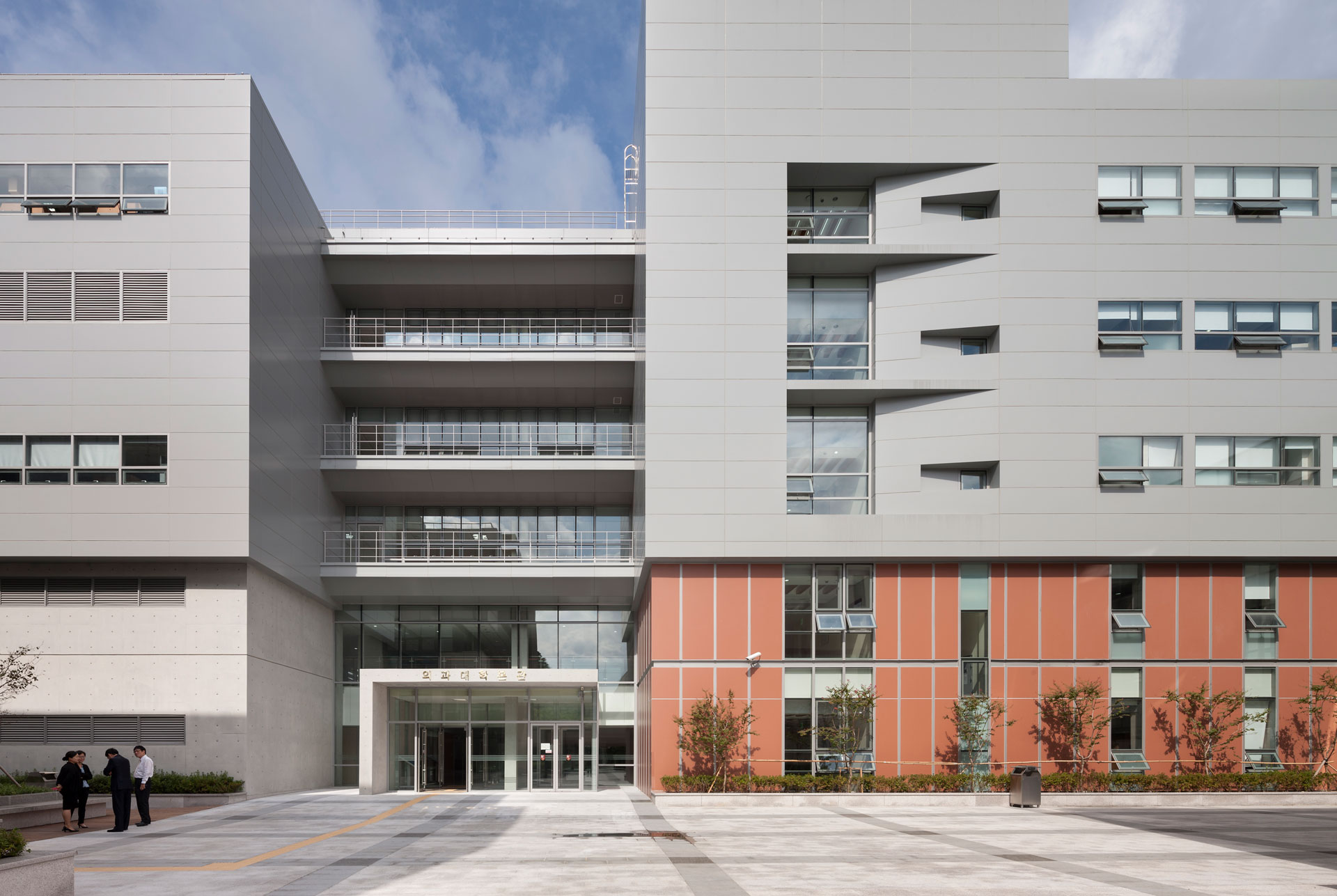 전체의과대학 건물 군 전체를 통합하고 연결하며, 향후 성장할 의과대학 마스터플랜의 중심에 위치해 새로운 코어로서 자리매김한다. 한정된 영역 안에 최대 점유를 위한, 즉 반원형의 대지 형태를 단단한 저층부에 그대로 반영하여 경사진 길의 흐름에 따른 시퀀스의 변화와 다양한 진입의 가능성이 연출된다. 기존 의과대학의 연결, 그리고 다양한 레벨에서의 진입은 본 건물이 갖는 새로운 대표성을 보여준다.