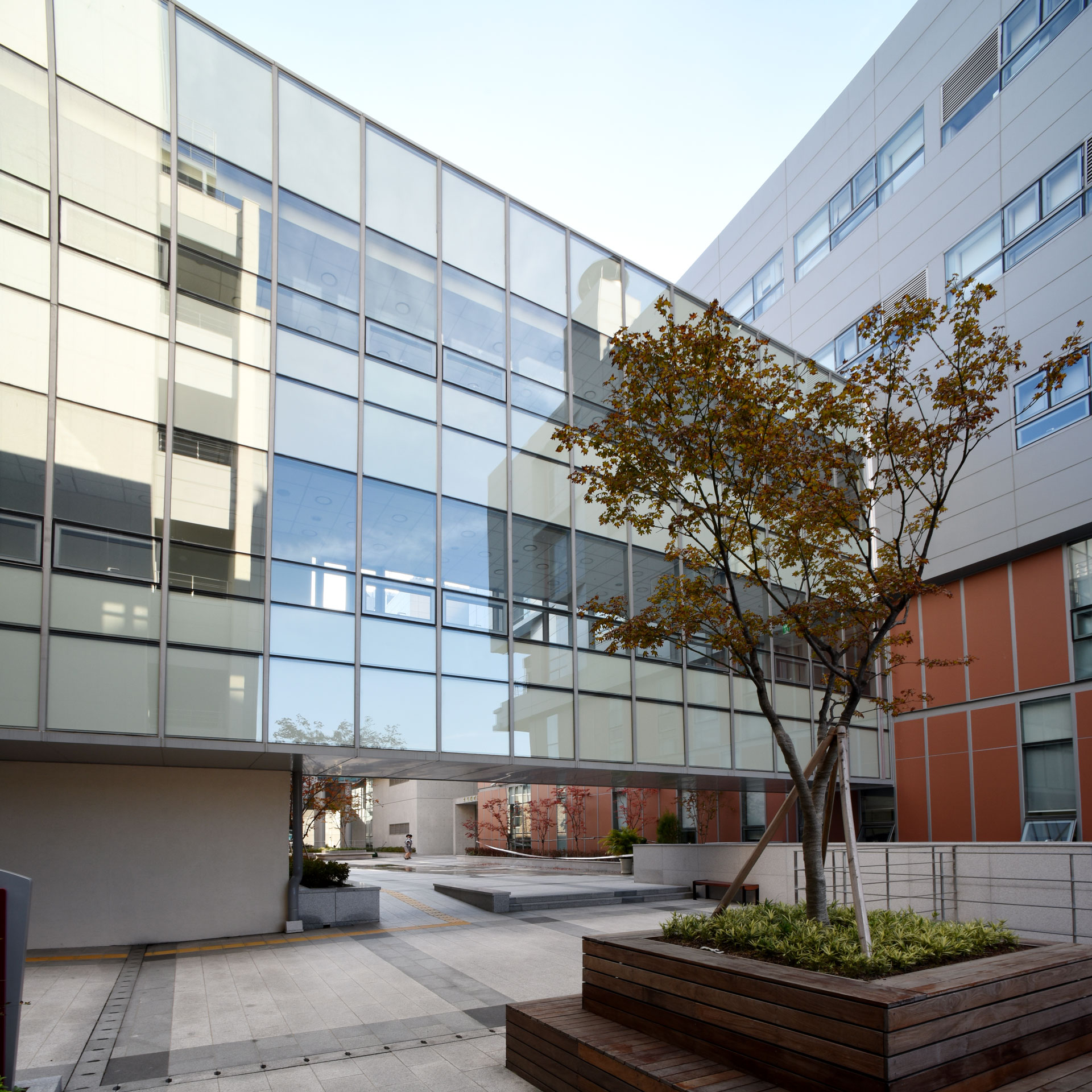 기초의학 연구동은 본관, 제1의학관, 의학도서관과 층별 프로그램과 동선이 연계하며, 집적화된 볼륨에 재료가 만나는 구간에는 연구진의 휴게공간을 제공함과 동시에 형태적인 변화감을 만들고자 했다.