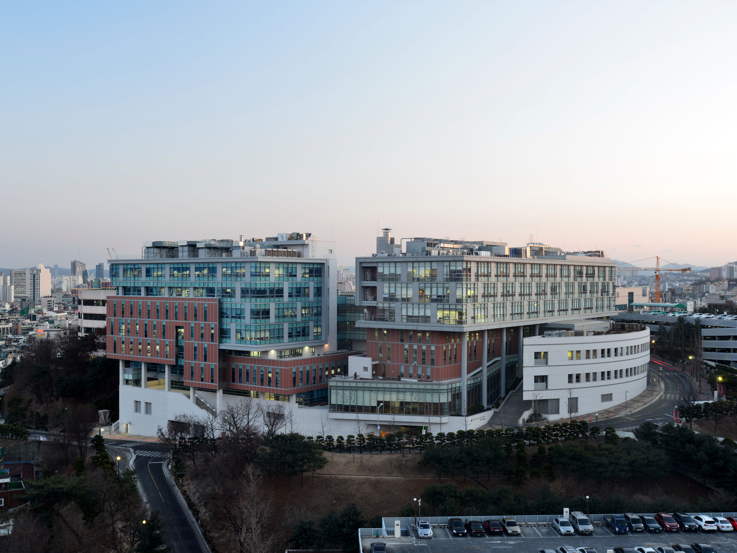 의대 본관의 파워플랜트 상부에 증축되는 기초의학연구동은 본관과 재료적인 통일감을 갖고자 하였으며, 볼륨과 입면은 변화감을 주어 연구동만의 정체성을 갖고자하였다.
