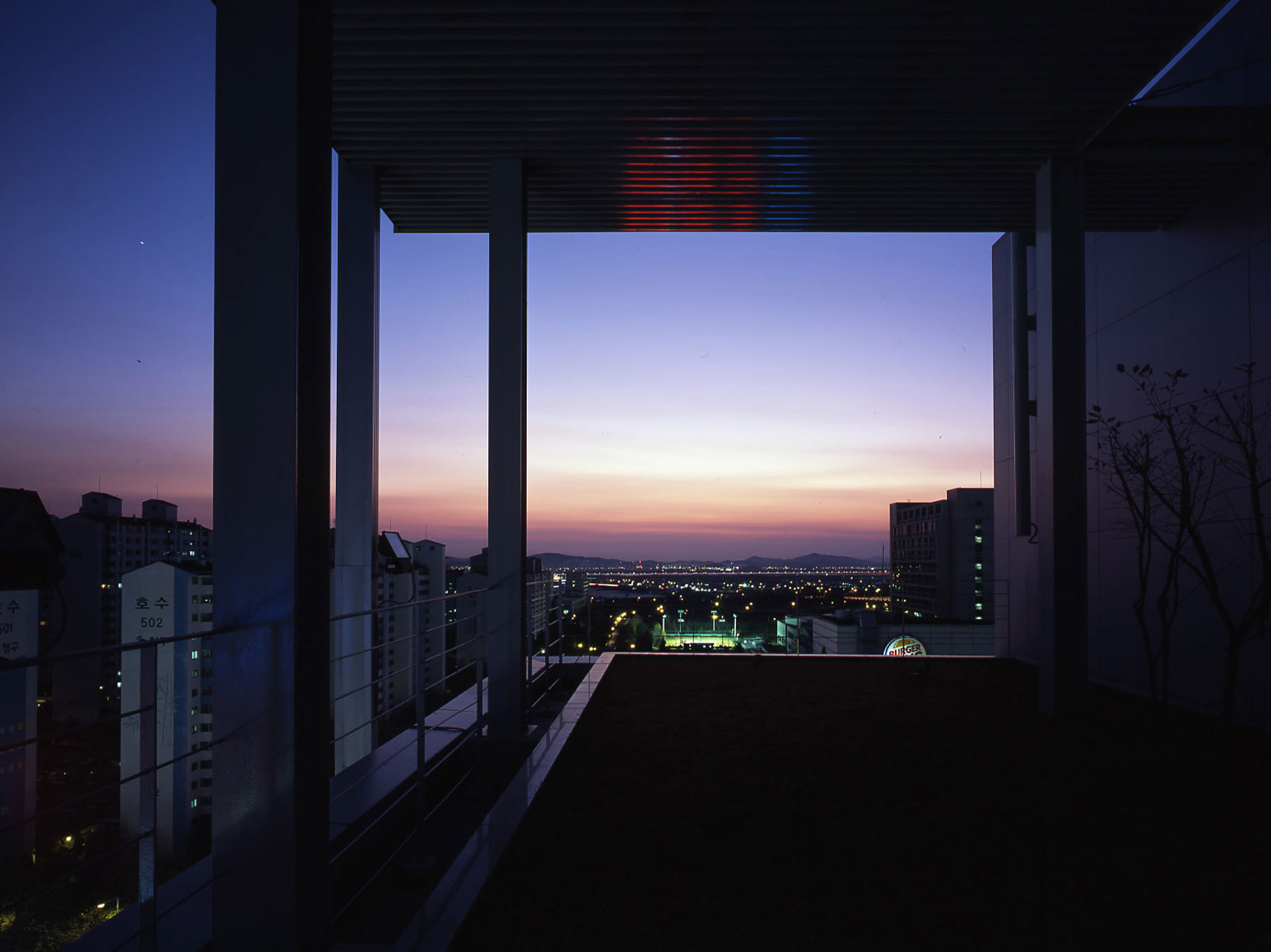 일산에 짧은 시간 동안 난립한 중앙로변 건물들은 어지러운 풍경을 보인다. 단순하게 침묵하는 검은색 화강석 저층부, 섬세하게 빛나는 유리 커튼월 고층부를 분리하고 조화시킨 모습은 개념, 기능, 재료, 동선, 형태, 공간 등의 요소를 한데 아우르며 건물이 도시의 풍경이 되도록 할 것이다. 건물 상층부 2개 층 높이의 격자 프레임은 장식의 잃어버린 의미를 현대인에게 회복시킨다. 이 격자는 보다 인간적인 스케일을 형성하며 건물과 도시를 만나게 한다.