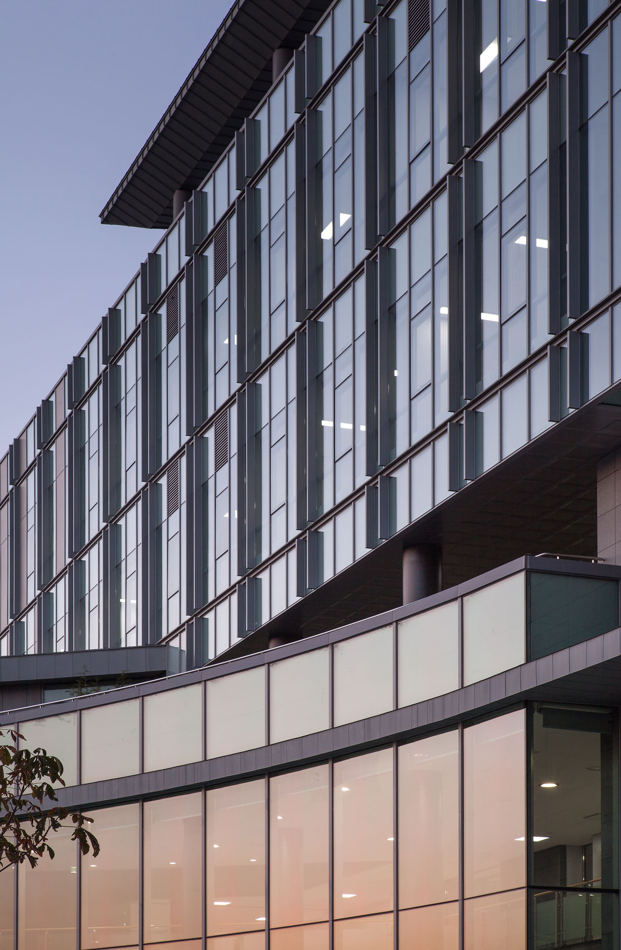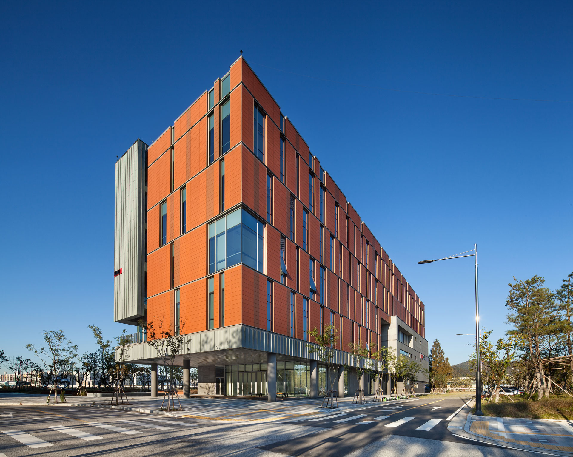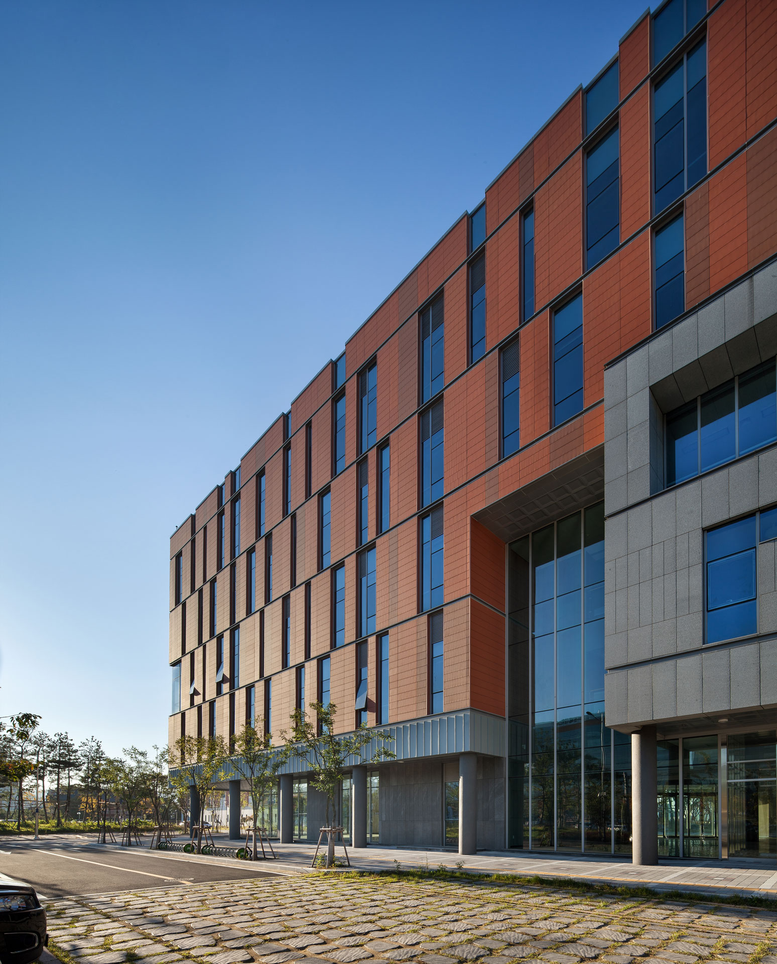 먼저 테라코타로 마감된 폭 12m짜리 매스에는 단위 면적이 크게 필요한 세미나실, 임상 실험실이 배치됐다. 전면의 커튼월로 마감된 폭 6.6m짜리 매스에는 사무실과 교수 연구실, 휴게실, 모니터링실 등이 배치됐다. 이 커튼월 입면은 특히 캠퍼스를 향해 열려 있다는 투명성을 전달하며, 상층부 주요 평면 개념인 중복도 시스템에서 느껴지는 답답함을 해소하는 역할도 한다. 메인 로비에는 보이드 공간을 만들어 햇빛이 담길 수 있도록 했다.