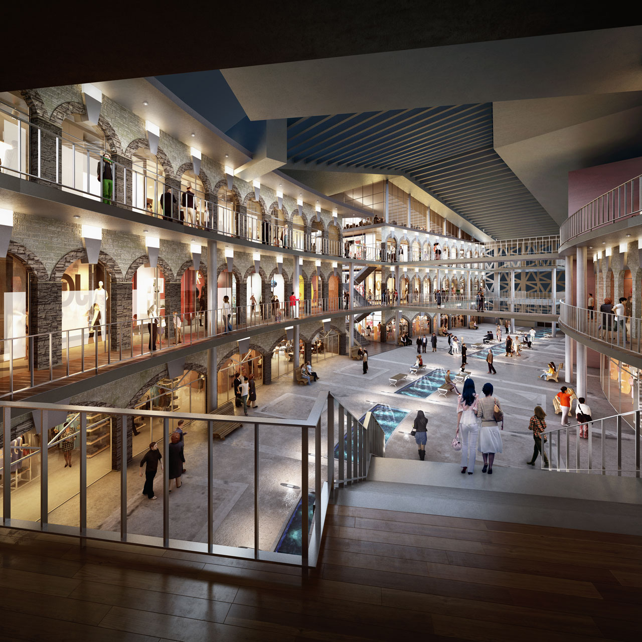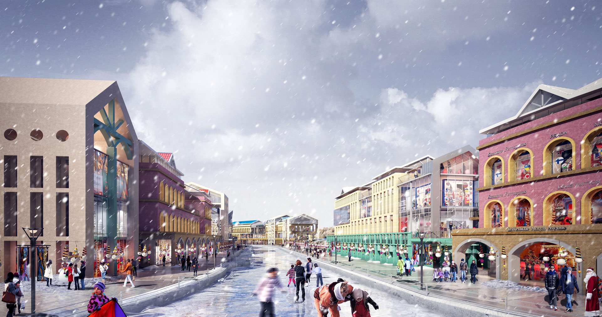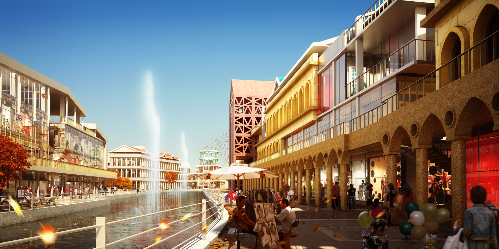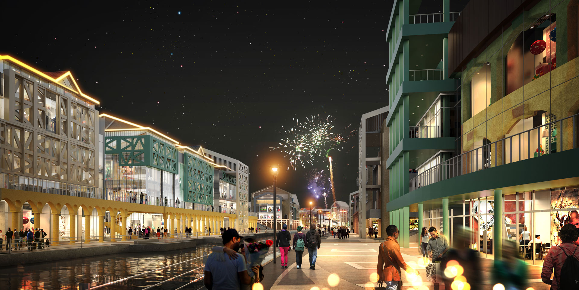 계획안은 길게 늘어진 건물 사이에 적절히 녹지 공간을 계획하고, 상업 공간을 블록별로 묶고 있다. 수로 변과 블록 뒤편의 도시를 잇는 흐름을 고려해 공간을 일부 비워내기도 했다. 건물과 수변 데크 등 보행로 레벨을 입체적으로 계획하고, 수로 변에는 테라스형 상업 공간을 확보하면서 리듬 있는 공간 배치로 흥미로운 가로환경을 연출했다. 대지 후면에는 선큰가든을 두어 수로변으로 보행자 접근이 원활하도록 유도했다. 계획 대지 중앙부에는 특화된 프로그램의 상업시설을 계획하여 전체 블록에서 앵커 역할을 할 수 있도록 계획했다. 향후 한국의 베니스로 불리면서 한강신도시 랜드마크 상권을 형성하면서 테마가 있는 명소로 자리매김을 하고 있다.