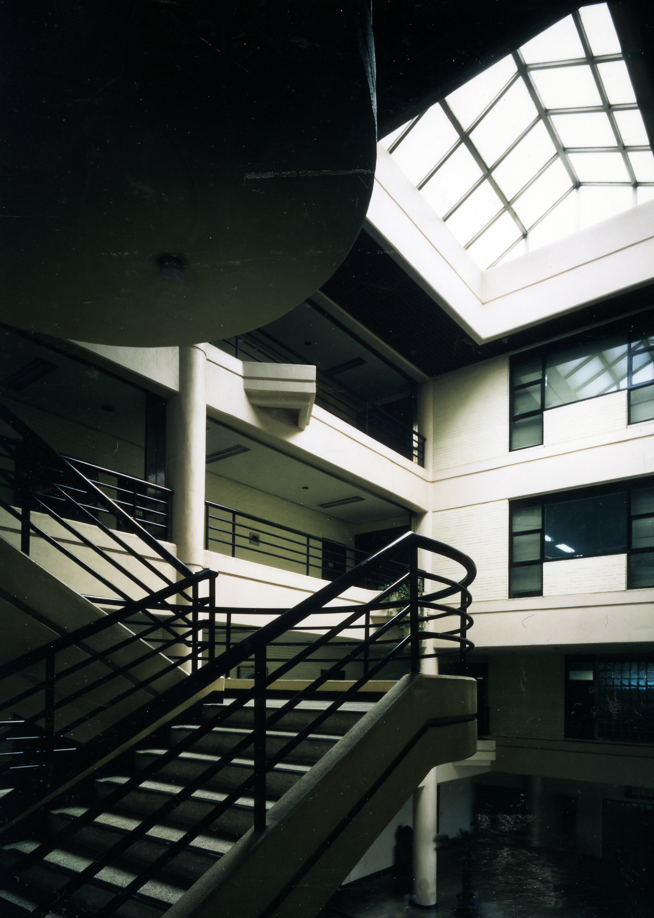 1층 주출입구에 들어서면 이 건물의 주공간은 네개 층이 오픈된 아트리움에 천장과 주계단의 경쾌한 구조미와 어우러지면서 명랑한 공간을 연출하고 있음을 발견하게 된다.