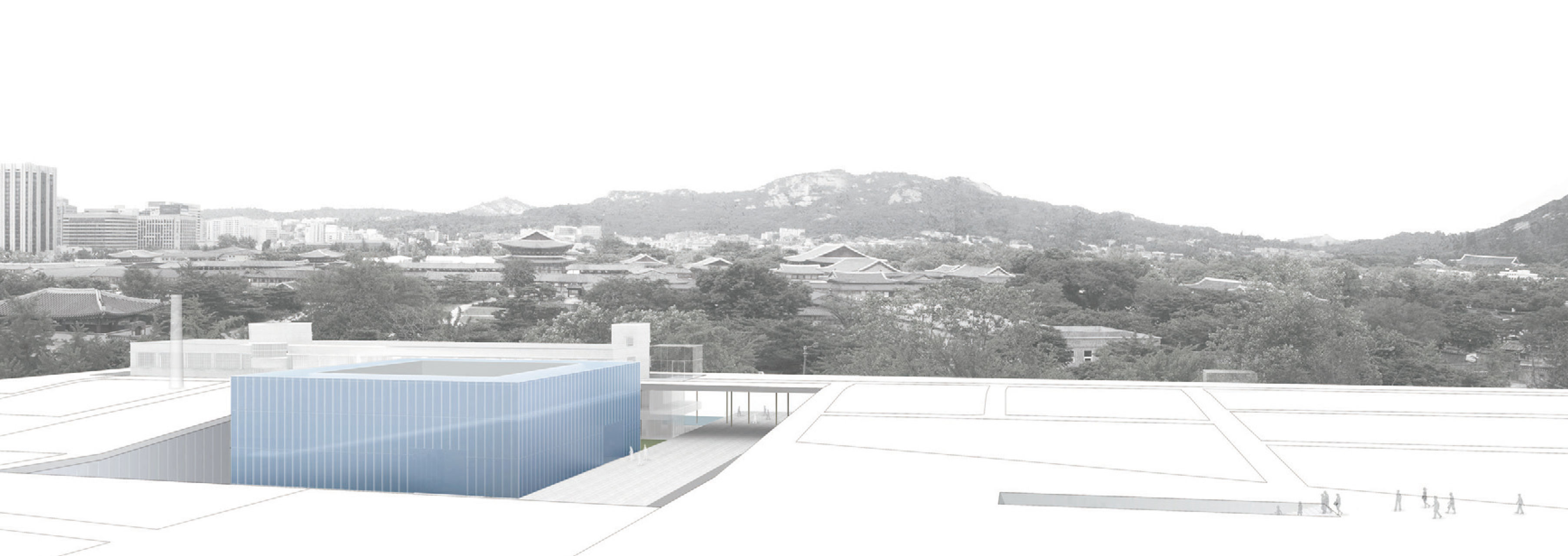 계획의 출발점은 비워내는 것이다. ‘북촌’이라는 이곳 도시 밀도에 대한 해석, 단절의 역사를 간직한 ‘땅’의 도시적 재생을 고민했기 때문이다. 새로 드러나는 미술관은 북촌의 낮은 도시 흐름이 연장된 ‘판’으로 형성되어 경복궁과 멀리 인왕산을 향해 낮게 드리운다. 이렇게 규정된 플랫폼(Museum Platform)은 ‘열린 대지’를 형성하고, 다양한 프로그램과 예술적 활동을 담아내는 기반(base)이 된다. 곧 ‘도시 미술관’으로서 오픈 스페이스(open space)를 제공하고, 다양한 행위(activity)를 유발시킨다.