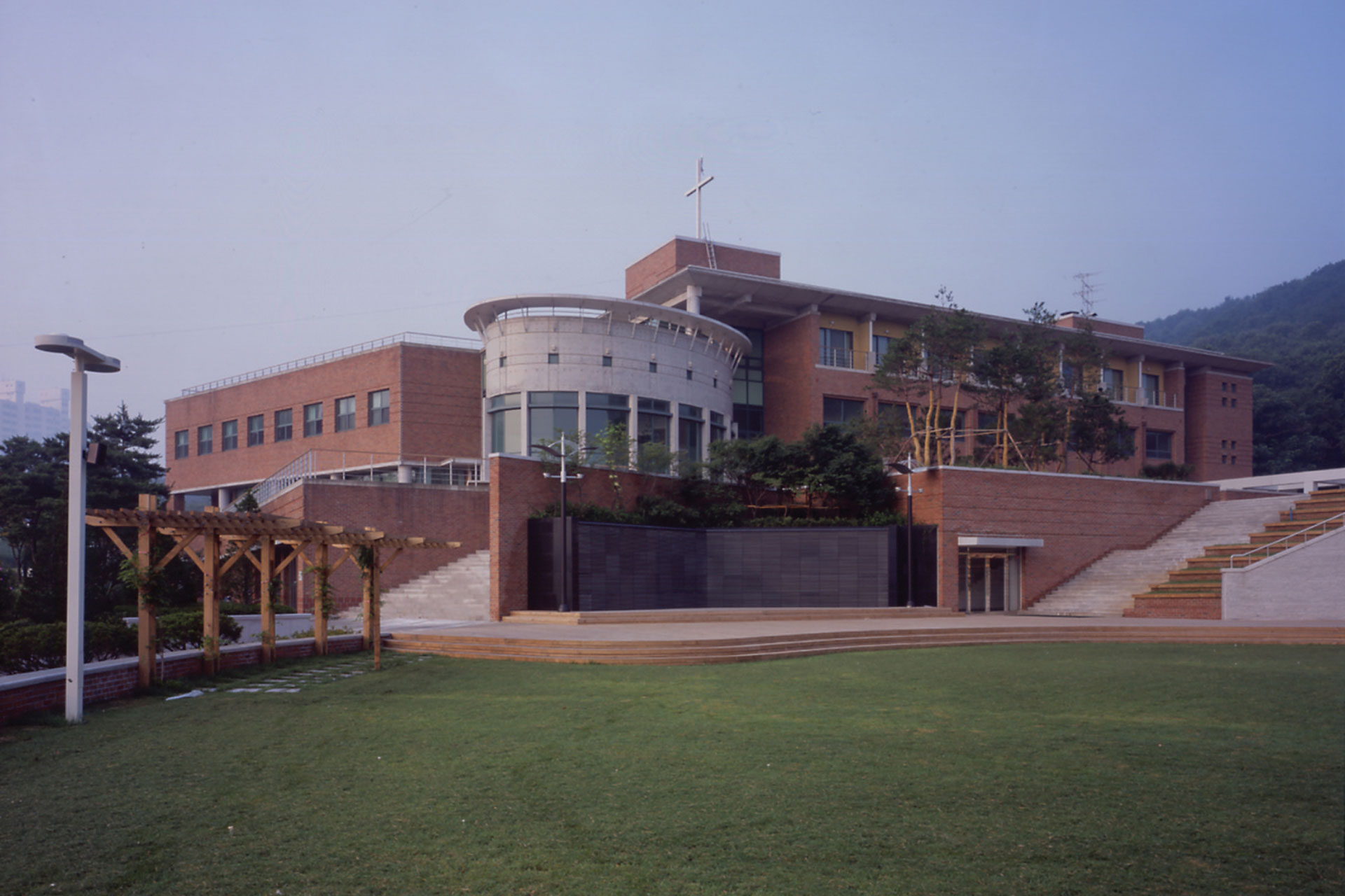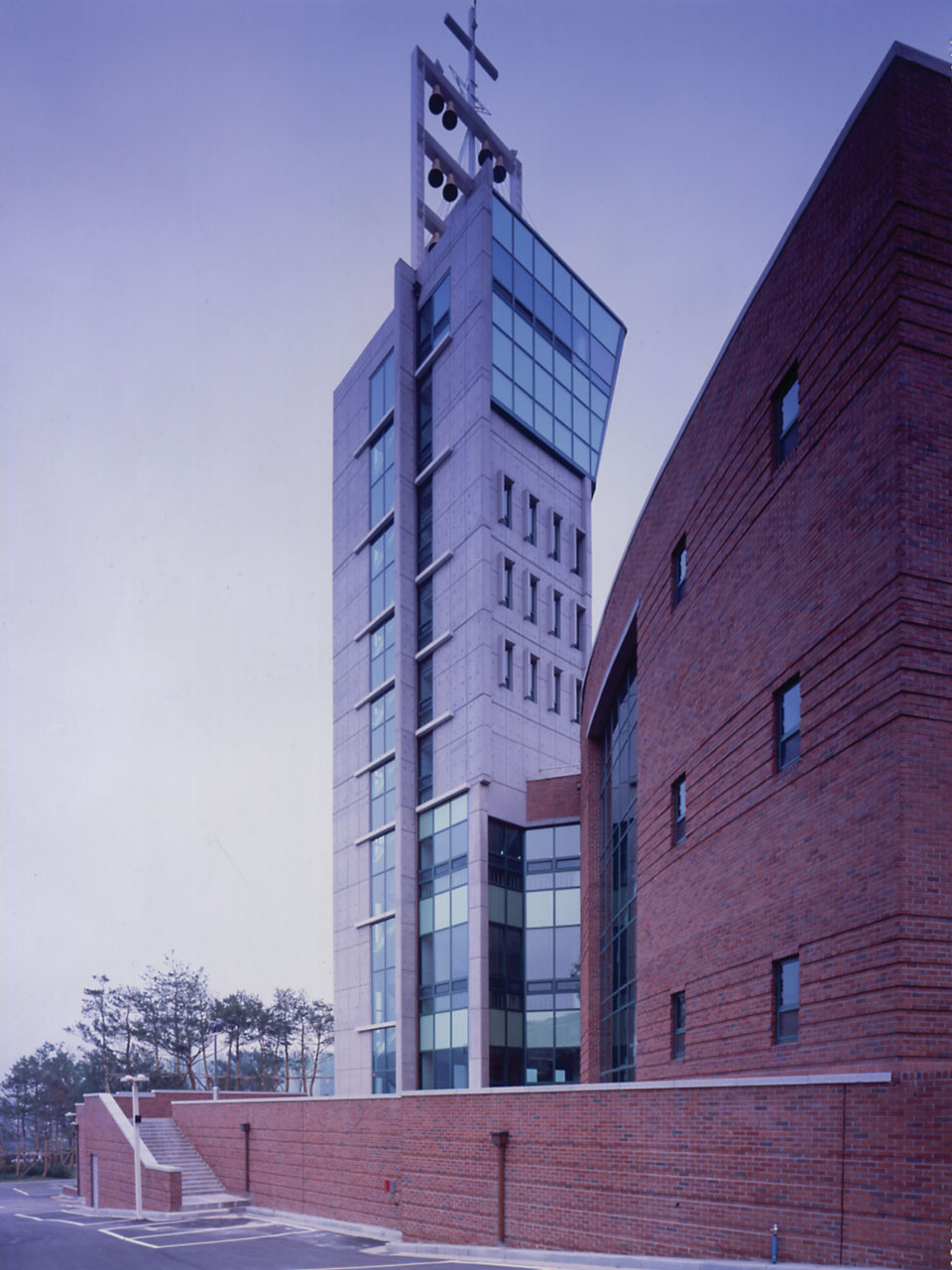 교회 부지는 대지 단면 고저차가 8.0m 가량 되는 완만한 동남향 구릉지에 위치하고 있으며, 전형적인 배산임수의 형세로 전면으로 탁 트이는 시야에 동막천이 흐르고 배면으로는 광교산이 자리잡고 있다. 도심이 아니라 자연 속에 자리잡을 부지에서 주요하게 고심한 부분은 광장을 교회 배치 정점에 두고서 본당과 교육관을 배치하는 것이었다. 먼저 대지를 재해석해 조경축과 건물축을 설정했다. 조경축은 경사진 대지에서 보이는 레벨차를 따라 몇 개의 ‘켜’(Layer)를 설정해 영역을 구분했으며, 교회 기능을 담는 형태는 매스 하나만이 아닌 여러 켜로 구성되도록 최대한 분절해 매스가 주는 위압감을 감소시키고자 했다. 조형적으로 소박하고 편안한 이미지를 주며 경제성을 고려한 건물로 우리의 얼이 담긴 교회가 될 수 있도록 노력했다.