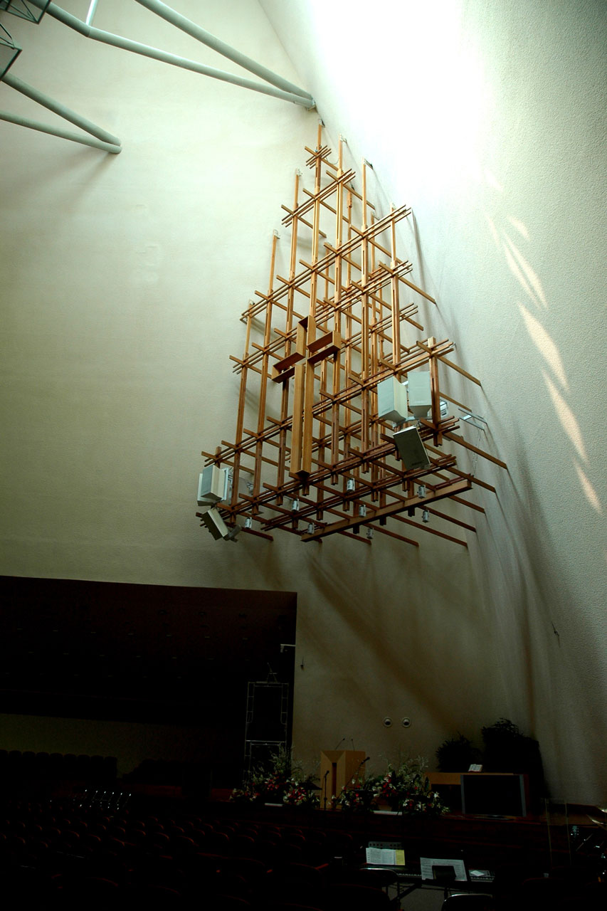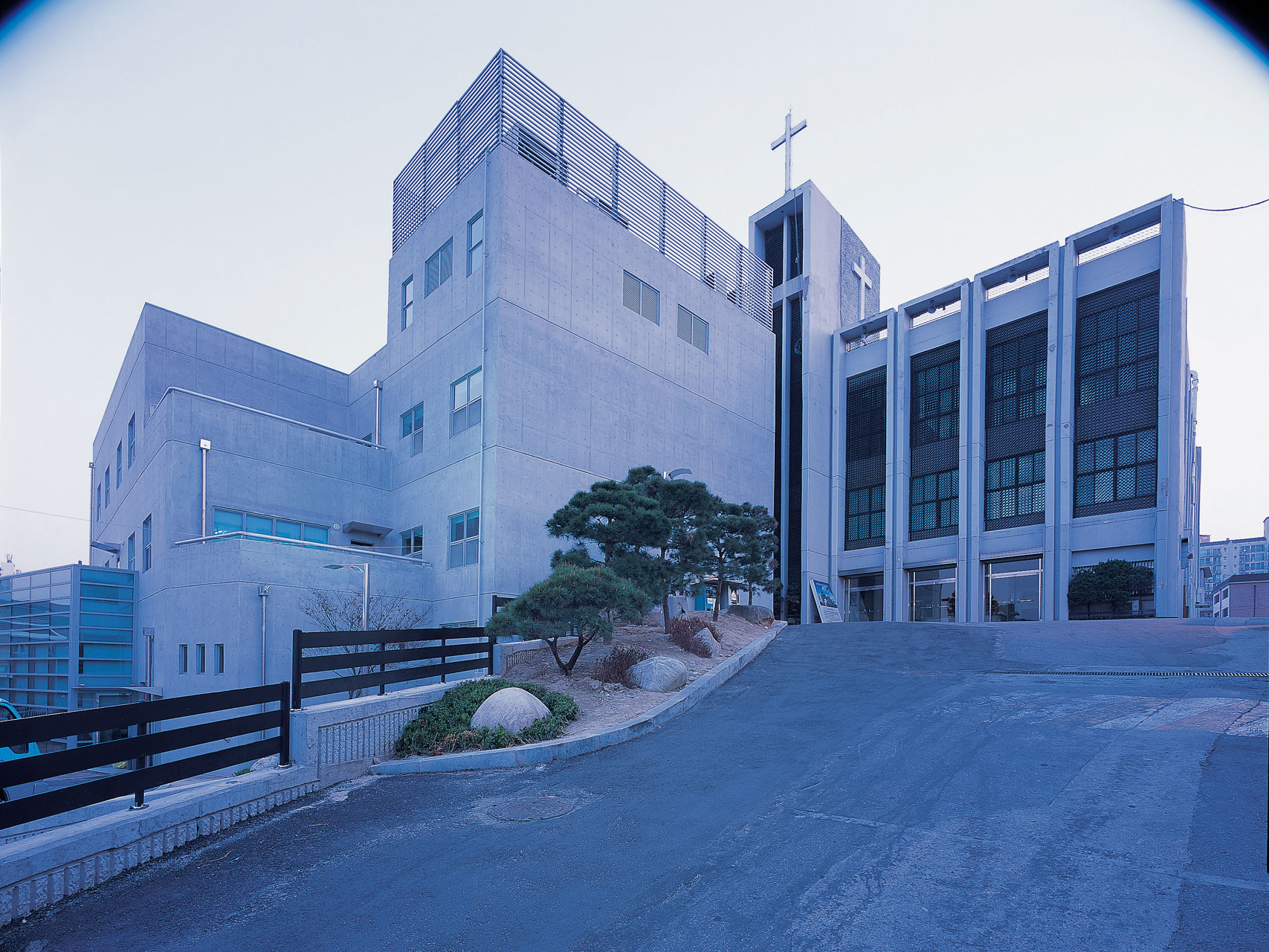 남북으로 발생하는 8m의 높이차는 직선으로 앞뒤 도로를 연결, 관통해 간결한 동선으로 해결했으며, 이 통로 한편에는 예배 공간과 집회 공간을, 다른 한편에는 식당과 사무실 및 오픈카페 등을 배치해 공간을 분리한다. 중앙의 계단과 엘리베이터는 8m 고저차를 연결하고 3개층 높이의 대형 아트리움은 천창을 통해 밝은 분위기를 창출하고, 유리 십자가는 3층 내부에도 파고들어와서 내부 공간에 은은한 빛을 도입해 공간에 멋을 느끼도록 배려했다.