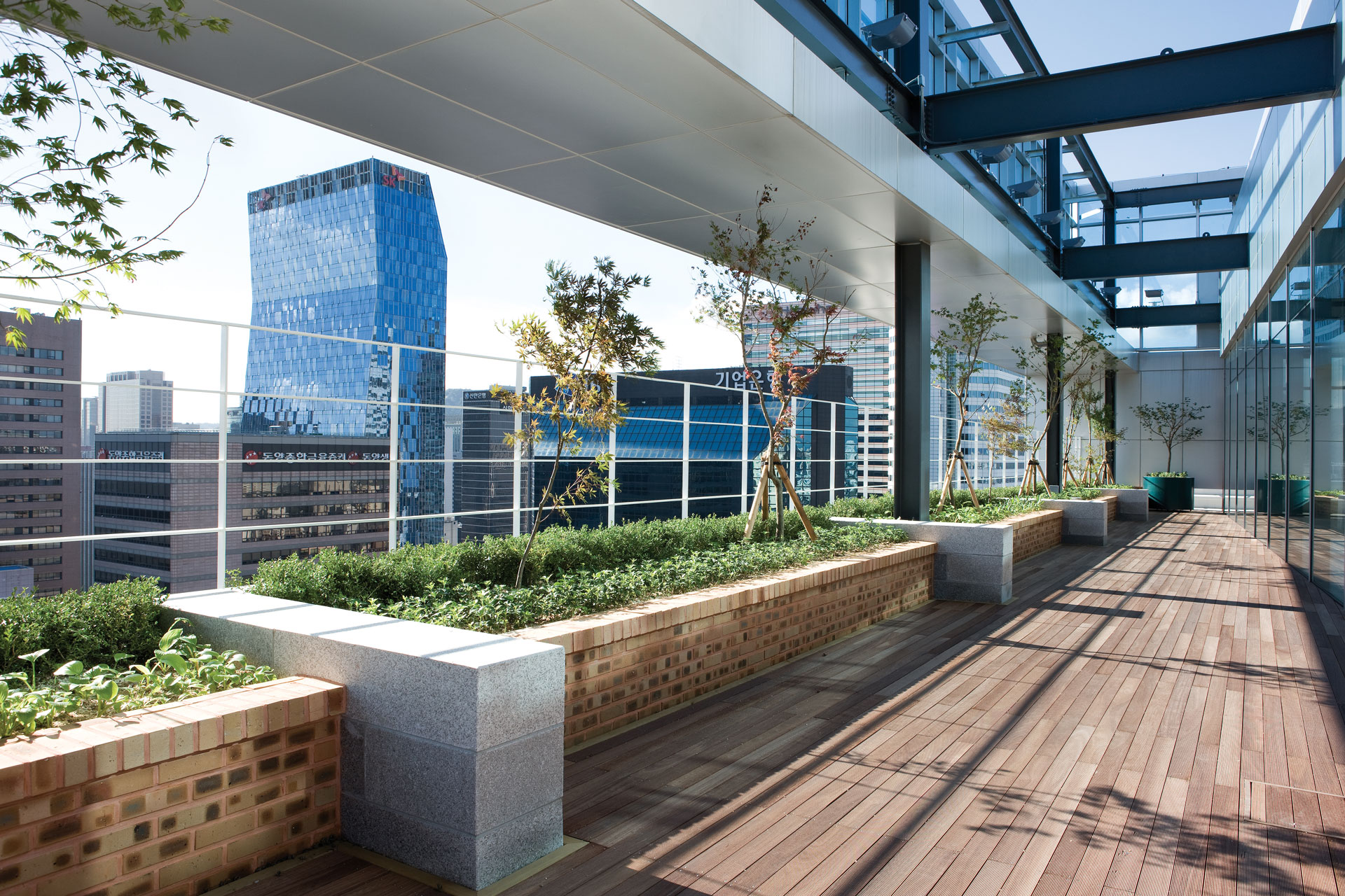자연과 에너지를 생각하는 친환경 건물의 구현은 필수불가결한 사안으로 녹지 생태축의 수직, 수평적 확대를 통해 모든 층에 녹지공간을 적극적으로 계획하였다. 공원에서부터 시작하는 ‘green zone’은 각각의 큐브를 잇는 사이공간과 최상부 공중정원에 이르기까지 연계되어 있어 자연과 도시가 하나의 유기체가 되는 도심 속의 작은 휴식처로서의 역할을 하고 있다.